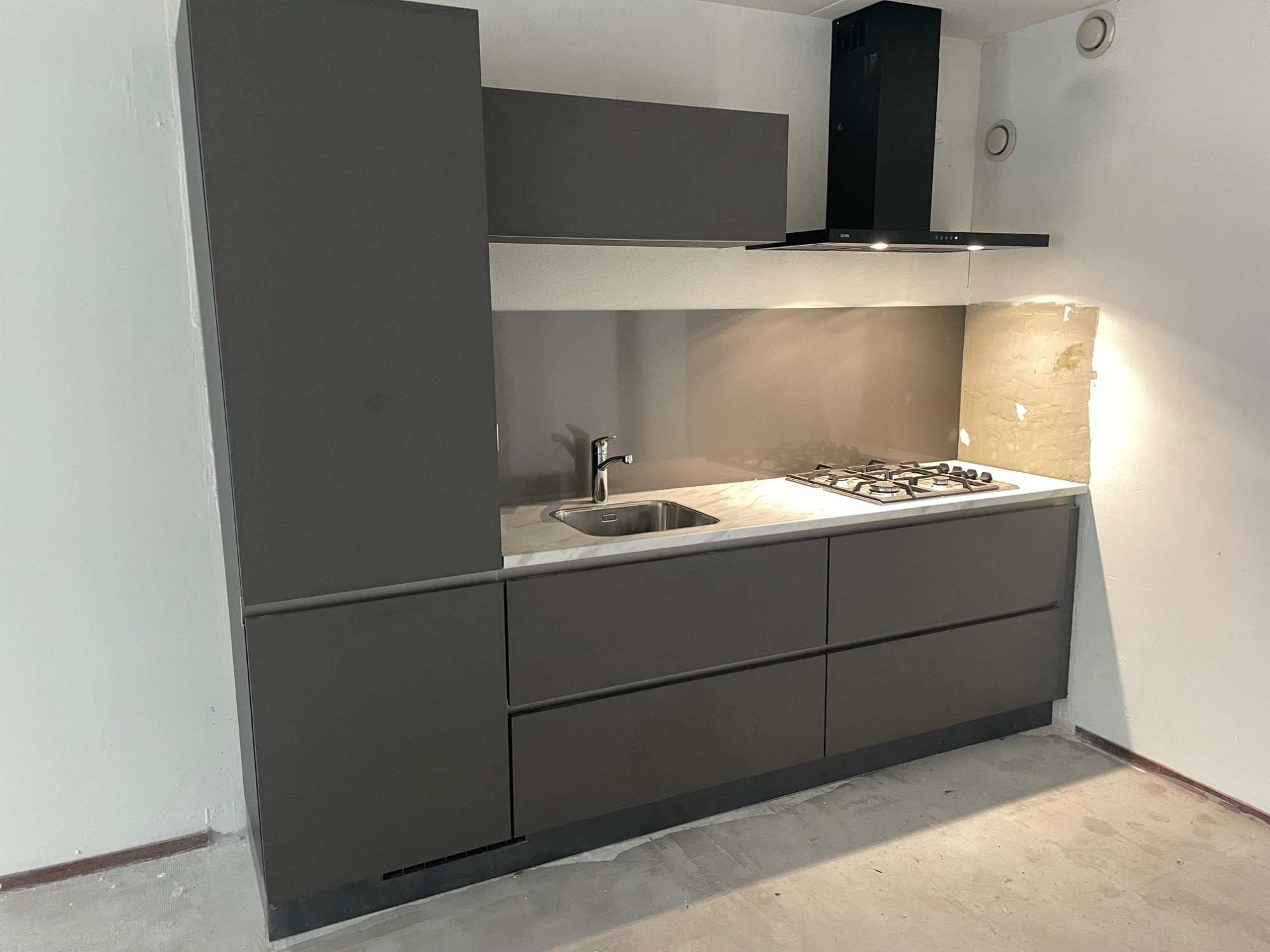 Entree met toegang tot de hal, ruime lichte woonkamer (7.88 x 4.45/2.99 m totaal circa 32 m²) met open keuken voorzien van moderne keukeninstallatie met diverse onder- en bovenkasten, inbouw apparatuur te weten: 4-pits gascomfort, afzuigkap en koelkast; vanuit de woonkamer toegang tot het balkon (2.55 x 1.30 m) aan de voorzijde.