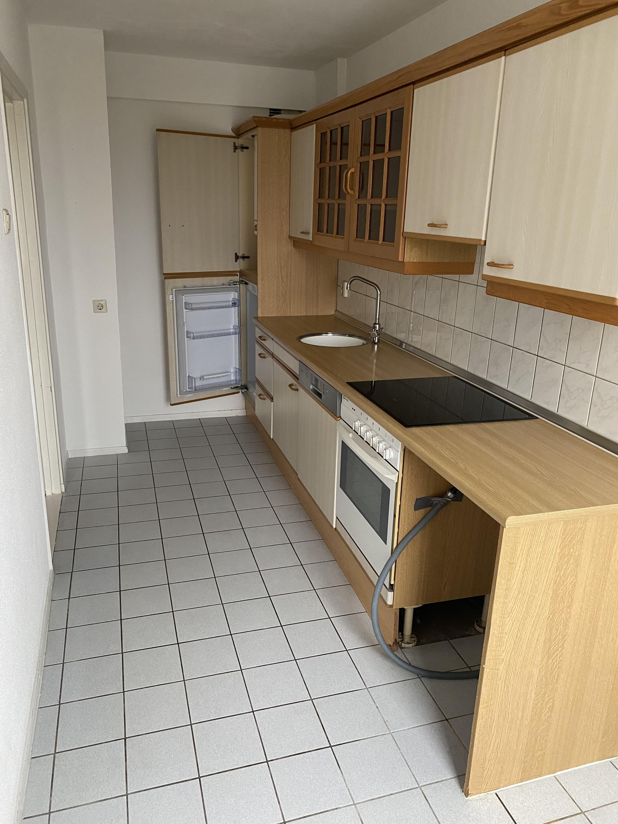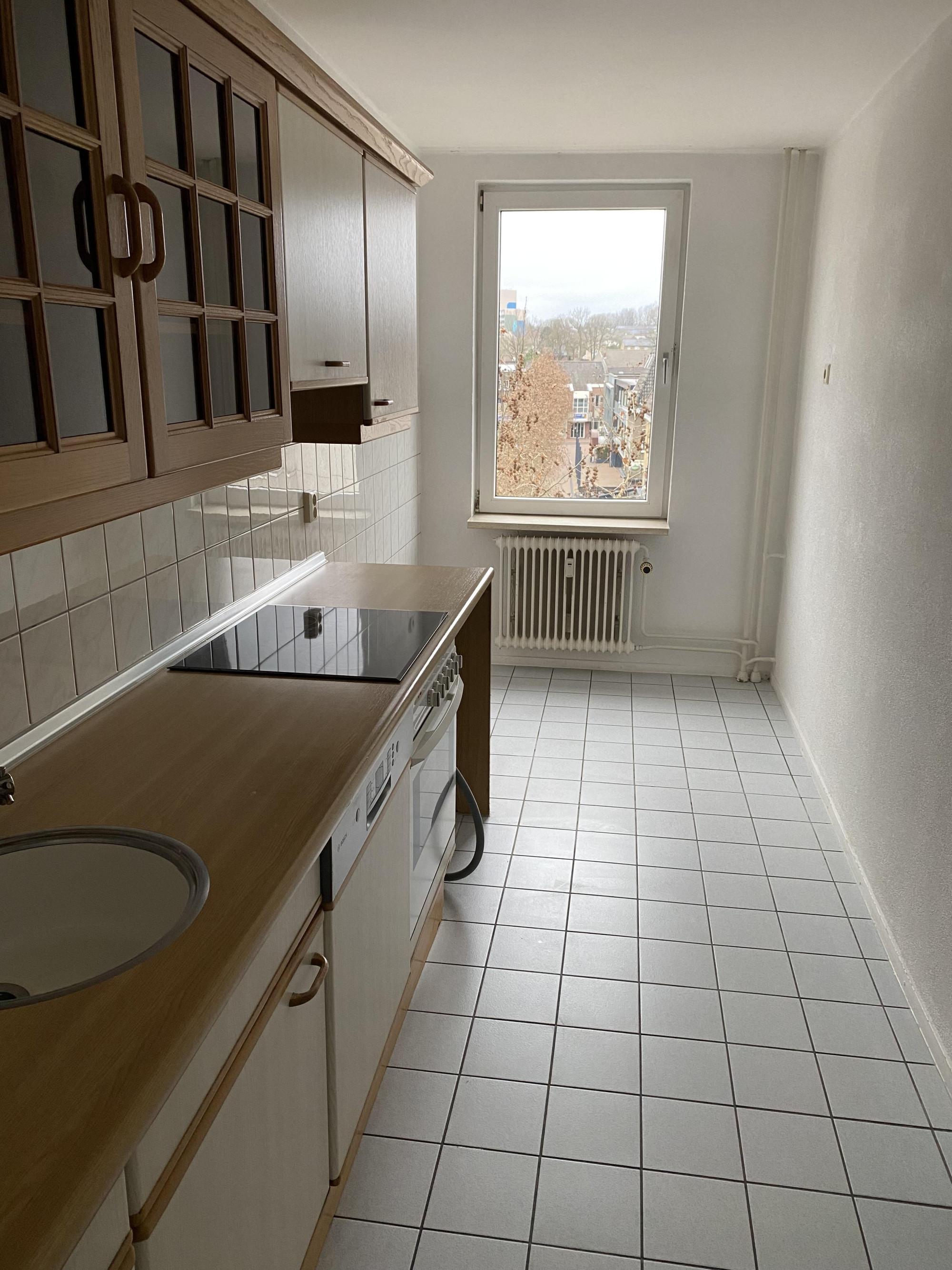 Te Huur: Ruim appartement, woonkamer, keuken met keukeninstallatie incl. inbouwapparatuur (o.a. oven, keramische kookplaat, afzuigkap, kraan, koelkast). Badkamer met douchecabine en toilet, 2 slaapkamers. Gunstig gelegen met uitzicht over de markt in Hoensbroek.