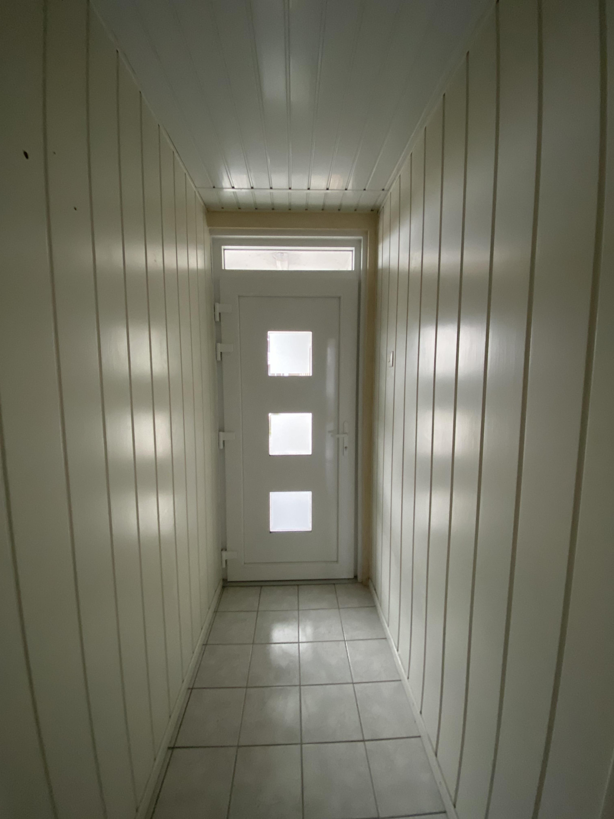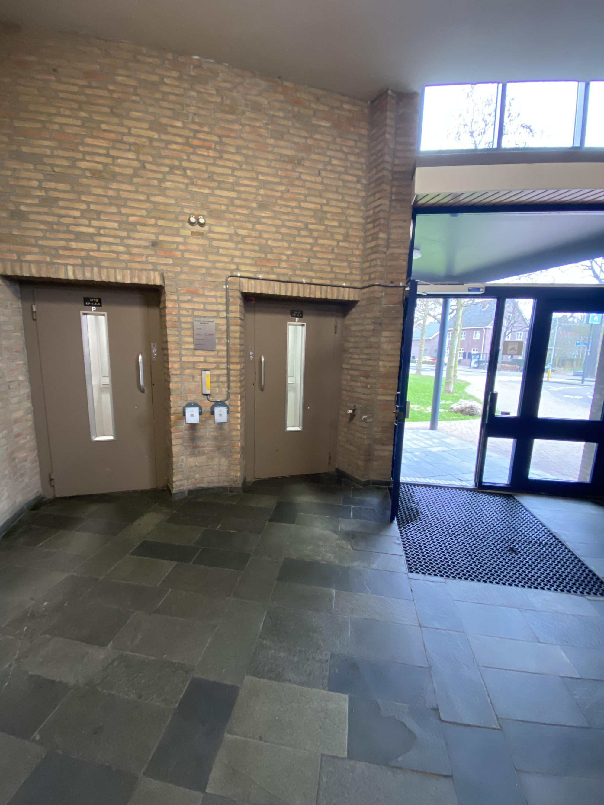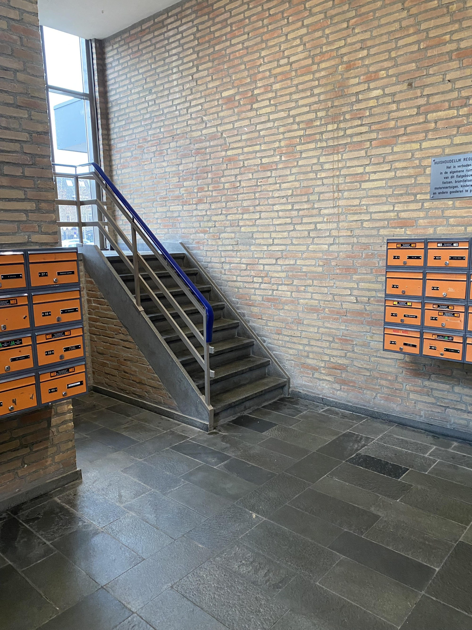 Ruime entree/hal met bellentableau en brievenbussen;