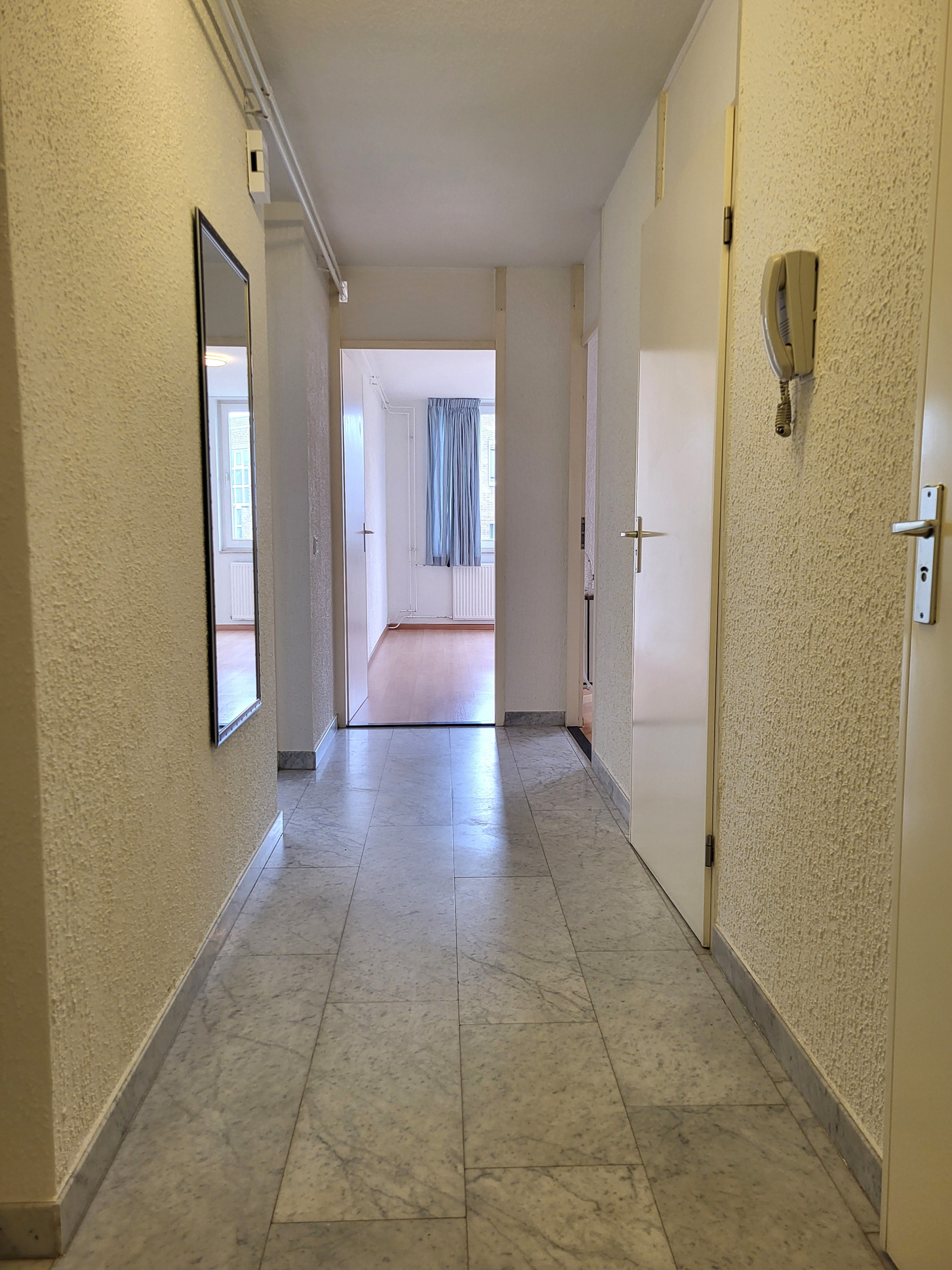 Entrance/hall with wardrobe providing access to all rooms. The spacious living room with open kitchen features a neat new laminate floor. The new kitchen with synthetic countertop includes a fridge/freezer, oven, dishwasher, 4-burner stove, and extractor hood. From the living room, there is access to the large balcony of approximately 6 m2, perfect for relaxation. The balcony is east-facing, allowing you to enjoy the morning sun.