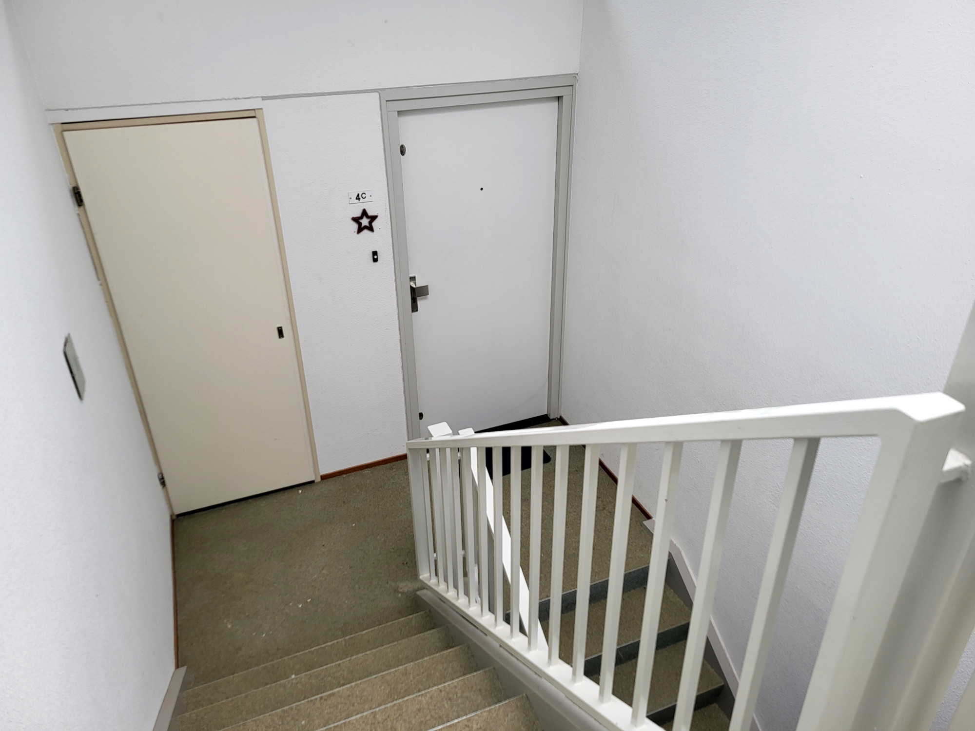 Furthermore, there is access to the storage room from the hallway, housing the central heating system and the washing machine that comes with the apartment.
