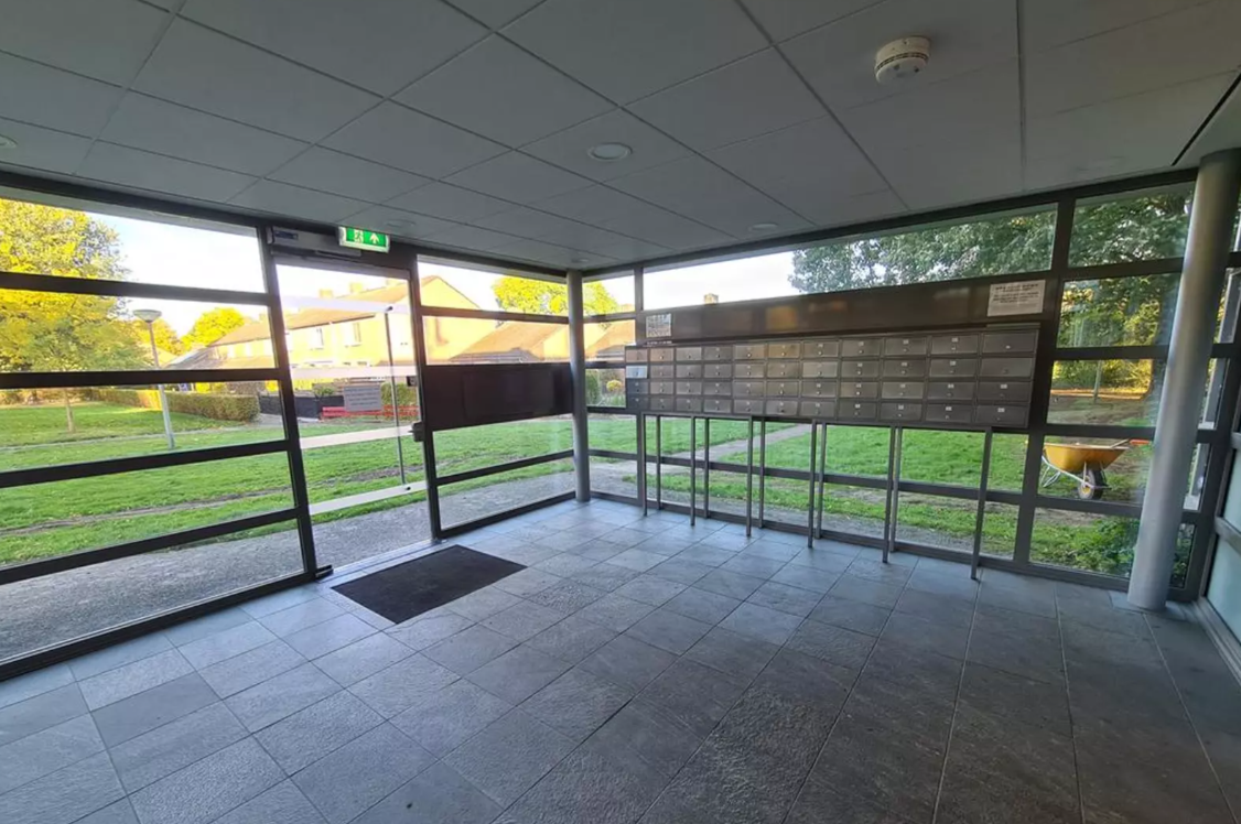 - Centrale hal met bellentableau, brievenbussen en lift.