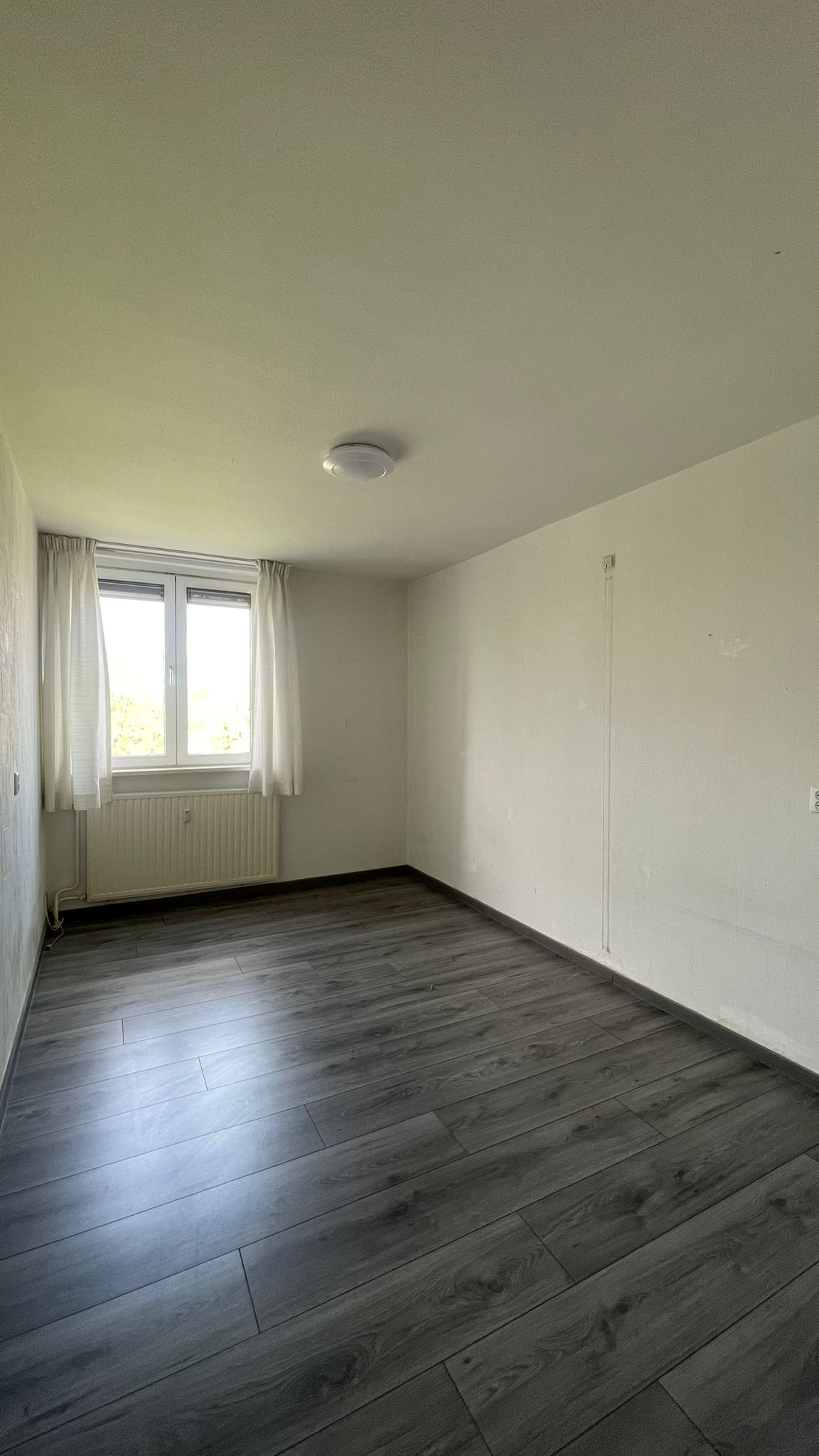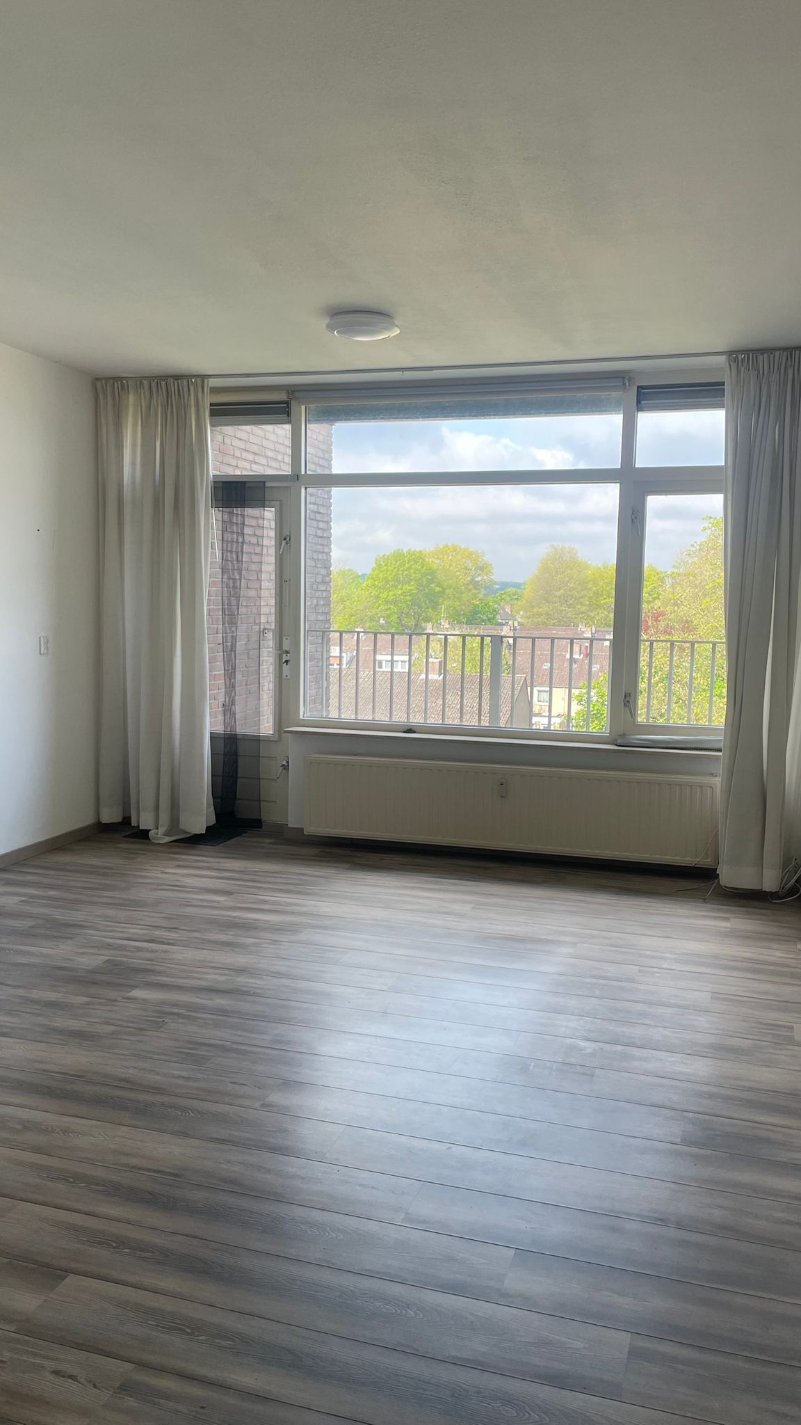 - Ruime woonkamer, voorzien van nieuwe laminaatvloer en toegang tot het balkon.