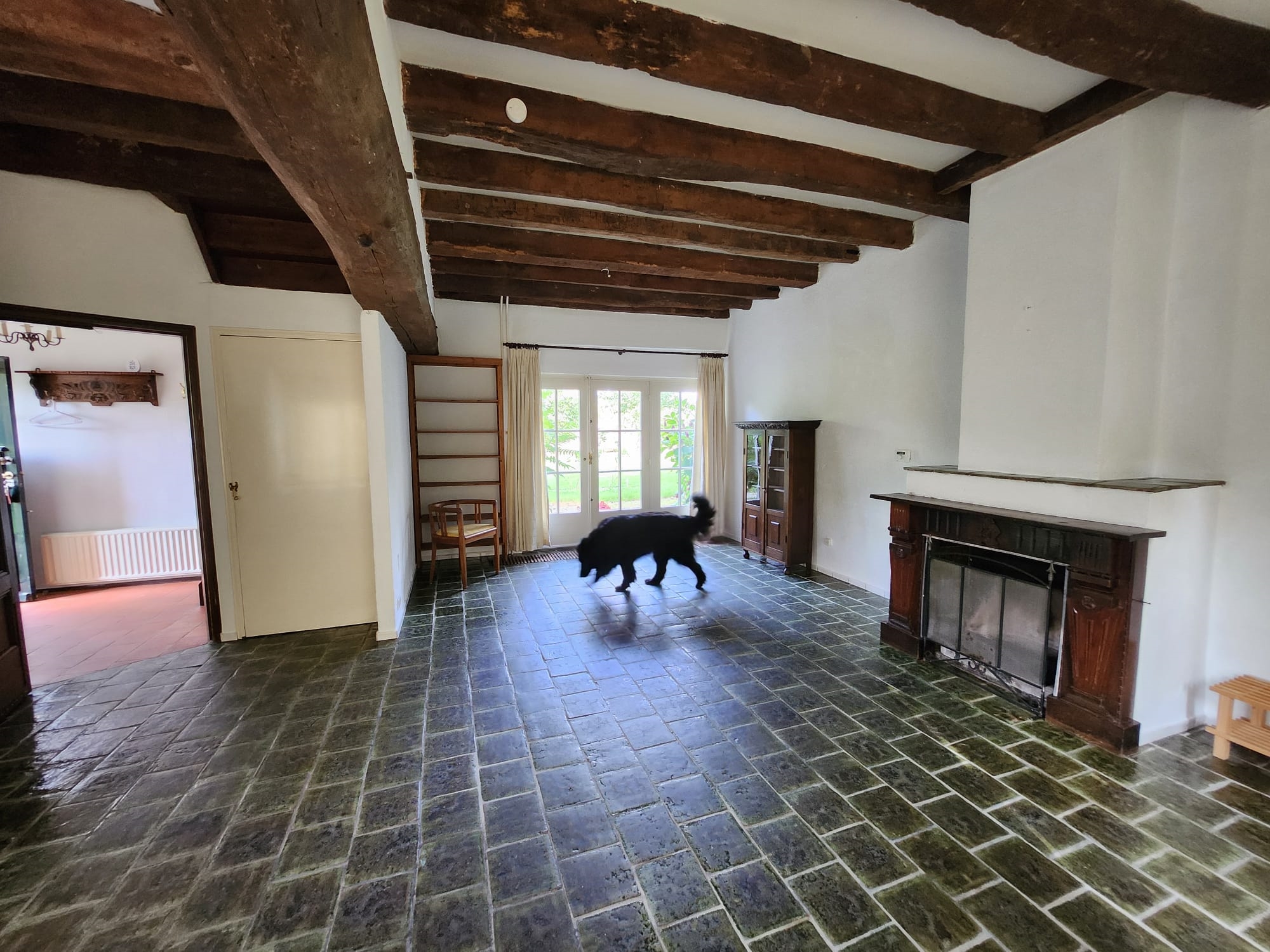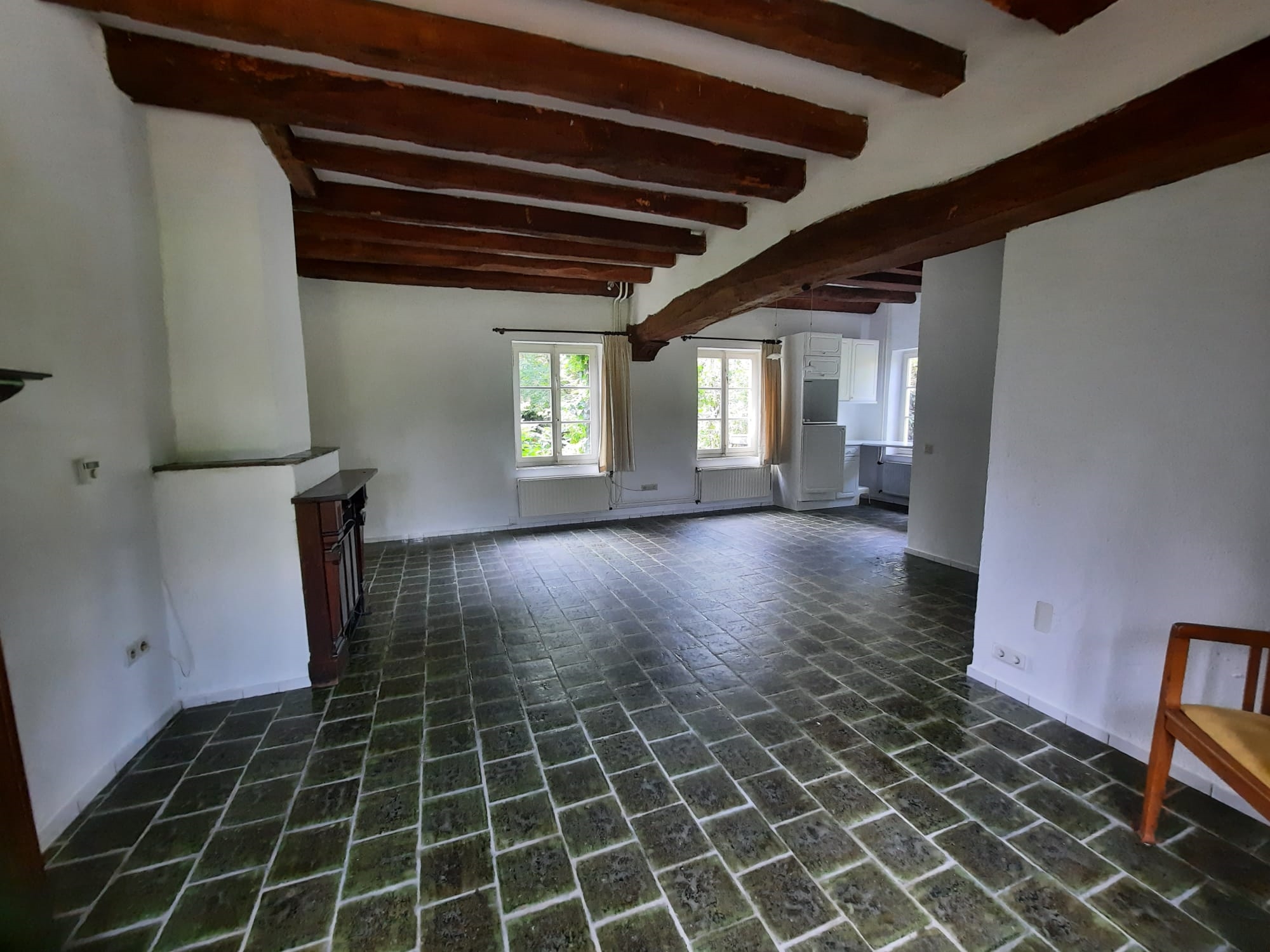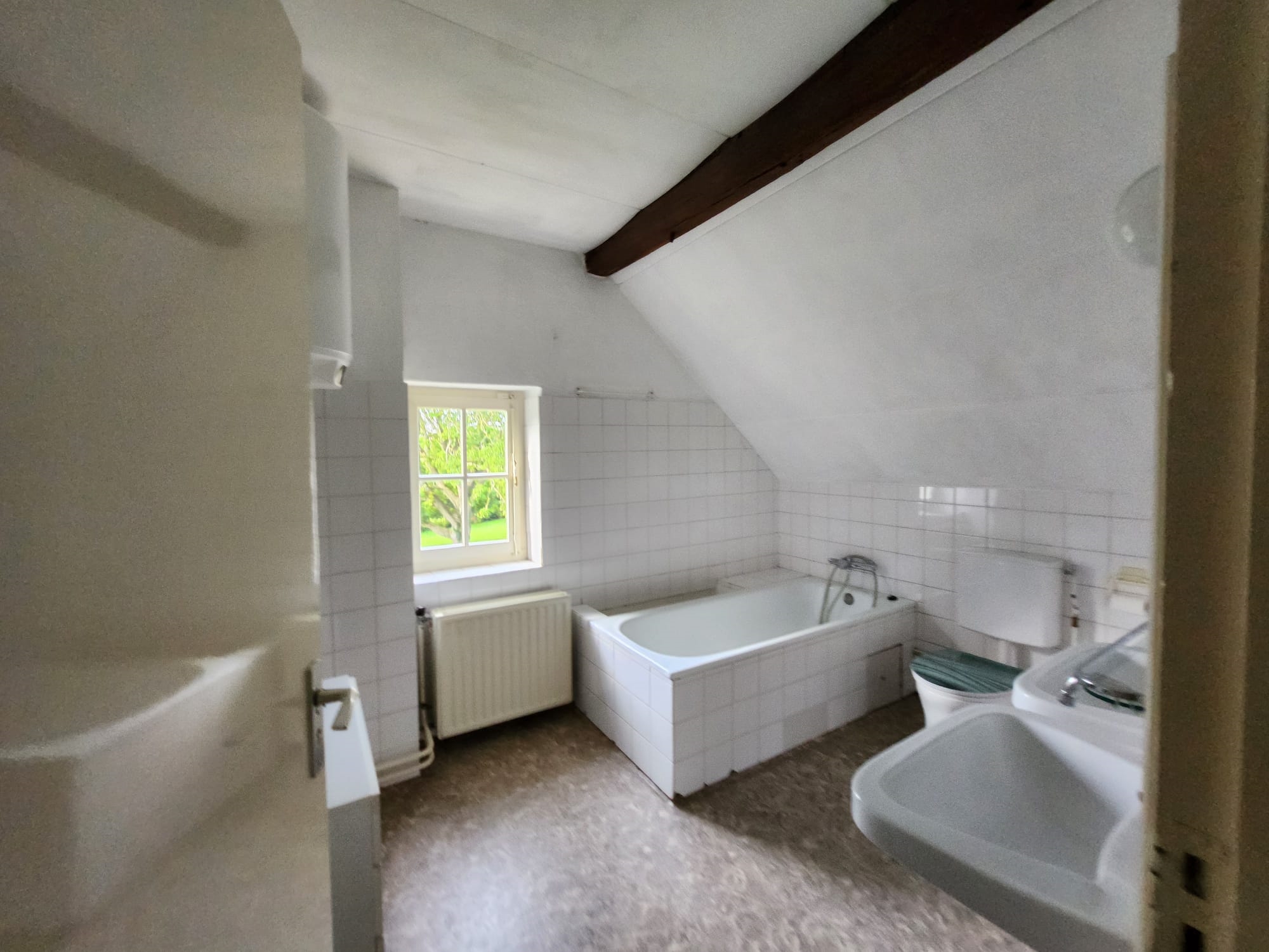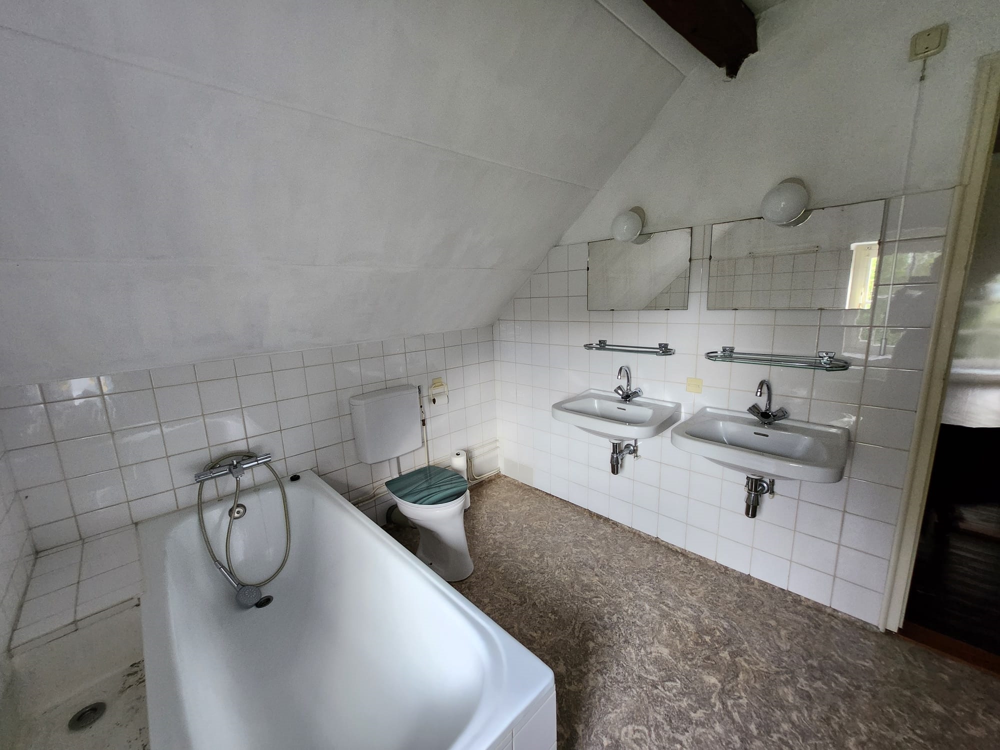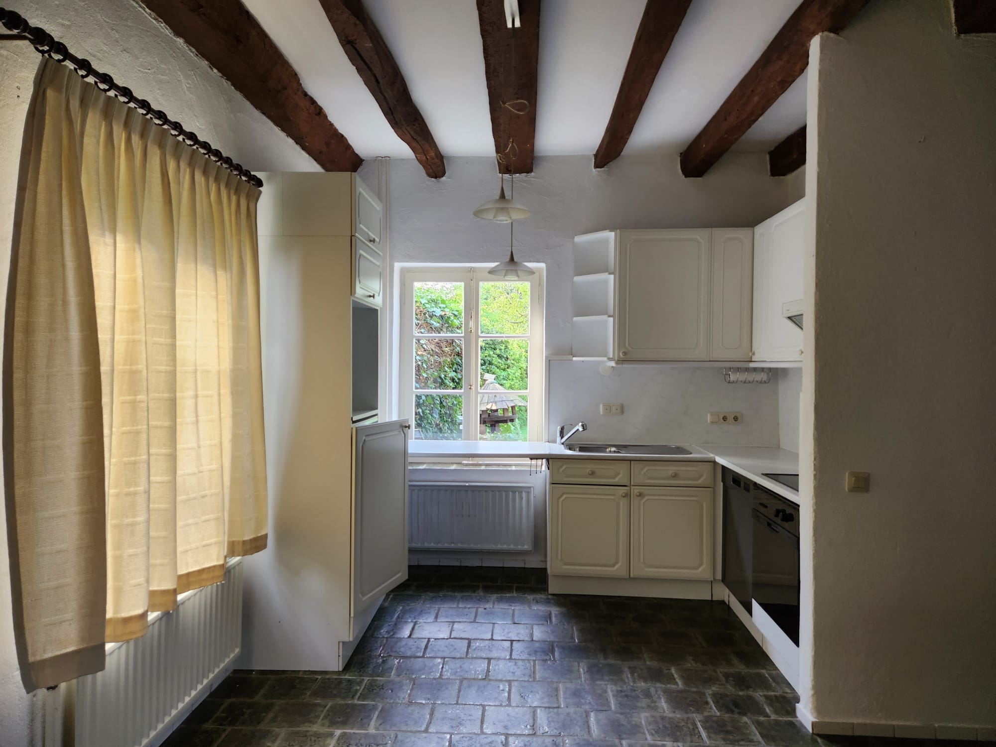 The kitchen is equipped with a built-in refrigerator, 4-burner stove, extractor hood, oven and dishwasher. From the kitchen as well as from the living room you have a beautiful view of the greenery of the spacious plot where this half-timbered house is located.