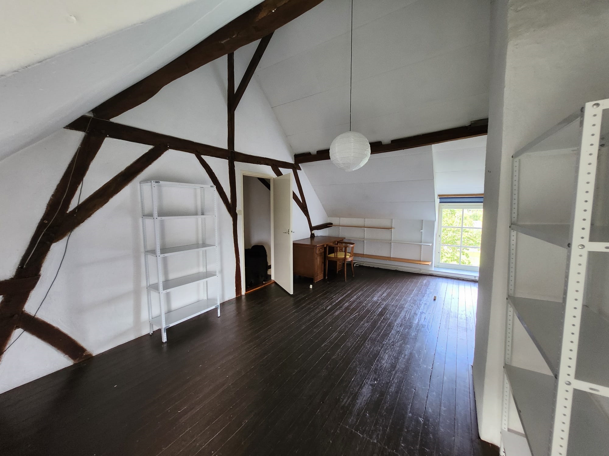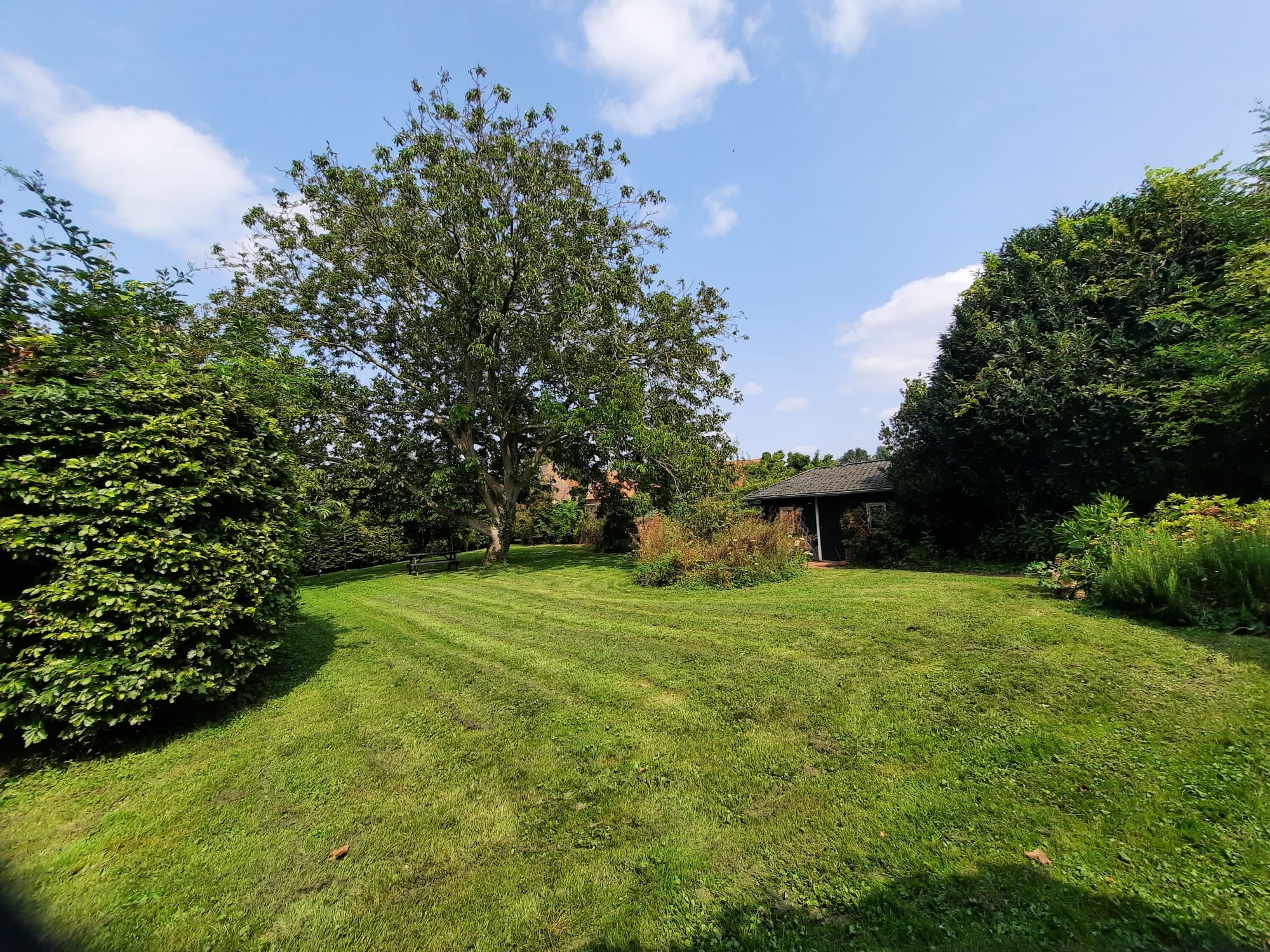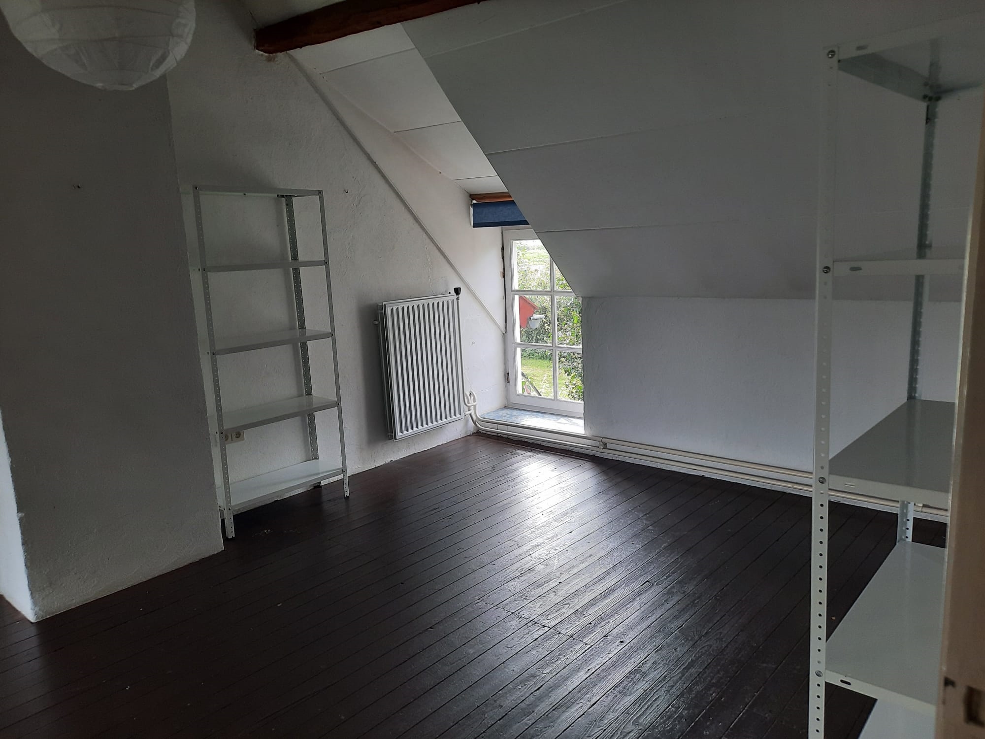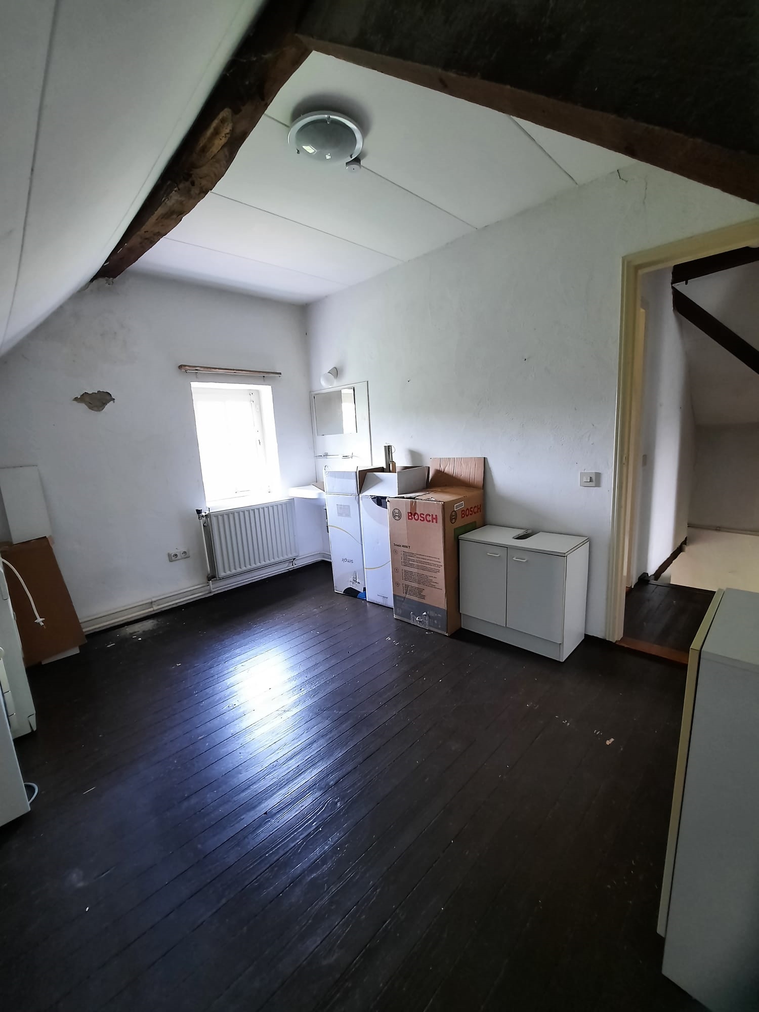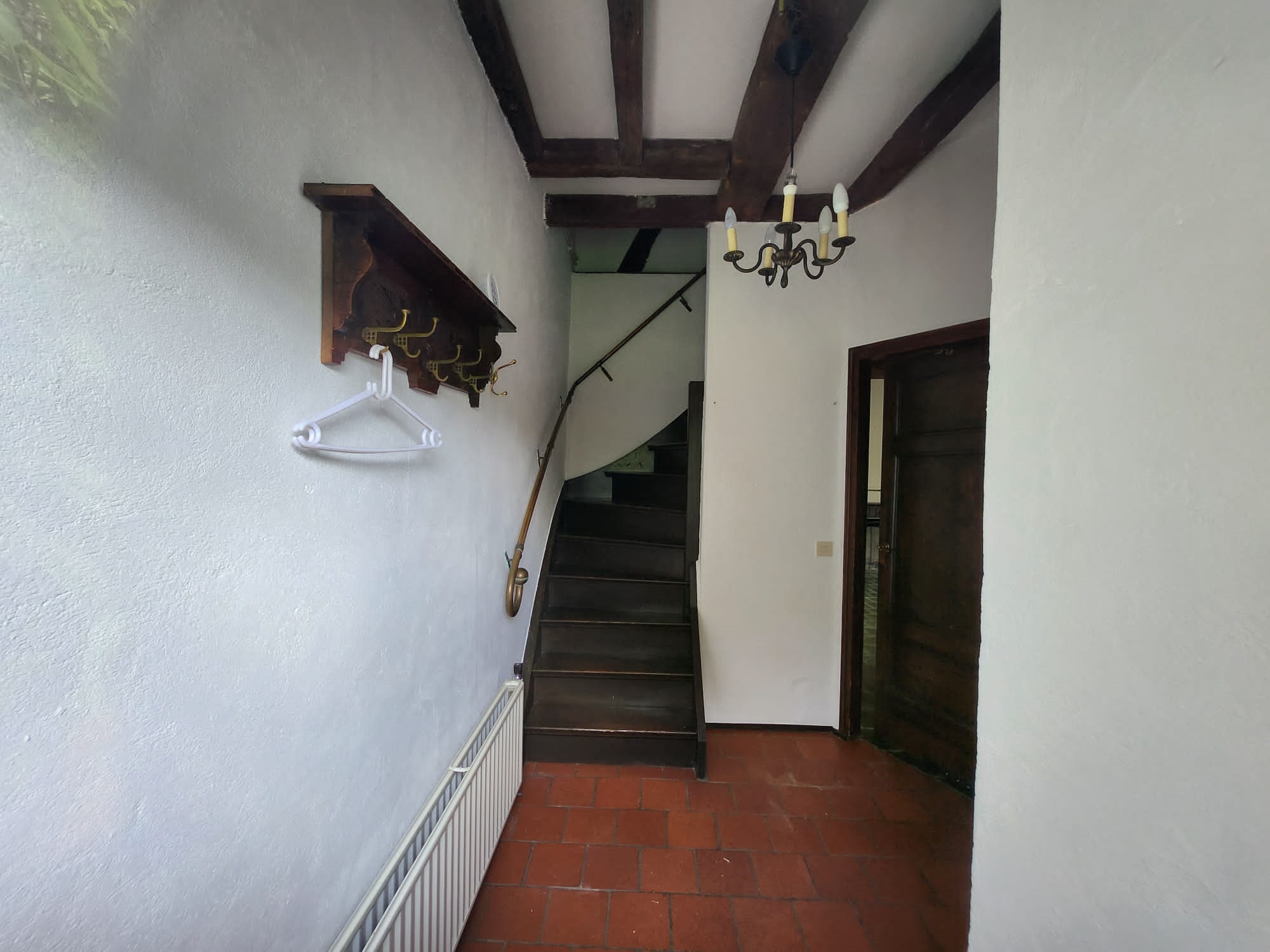 The kitchen is equipped with a built-in refrigerator, 4-burner stove, extractor hood, oven and dishwasher. From the kitchen as well as from the living room you have a beautiful view of the greenery of the spacious plot where this half-timbered house is located.