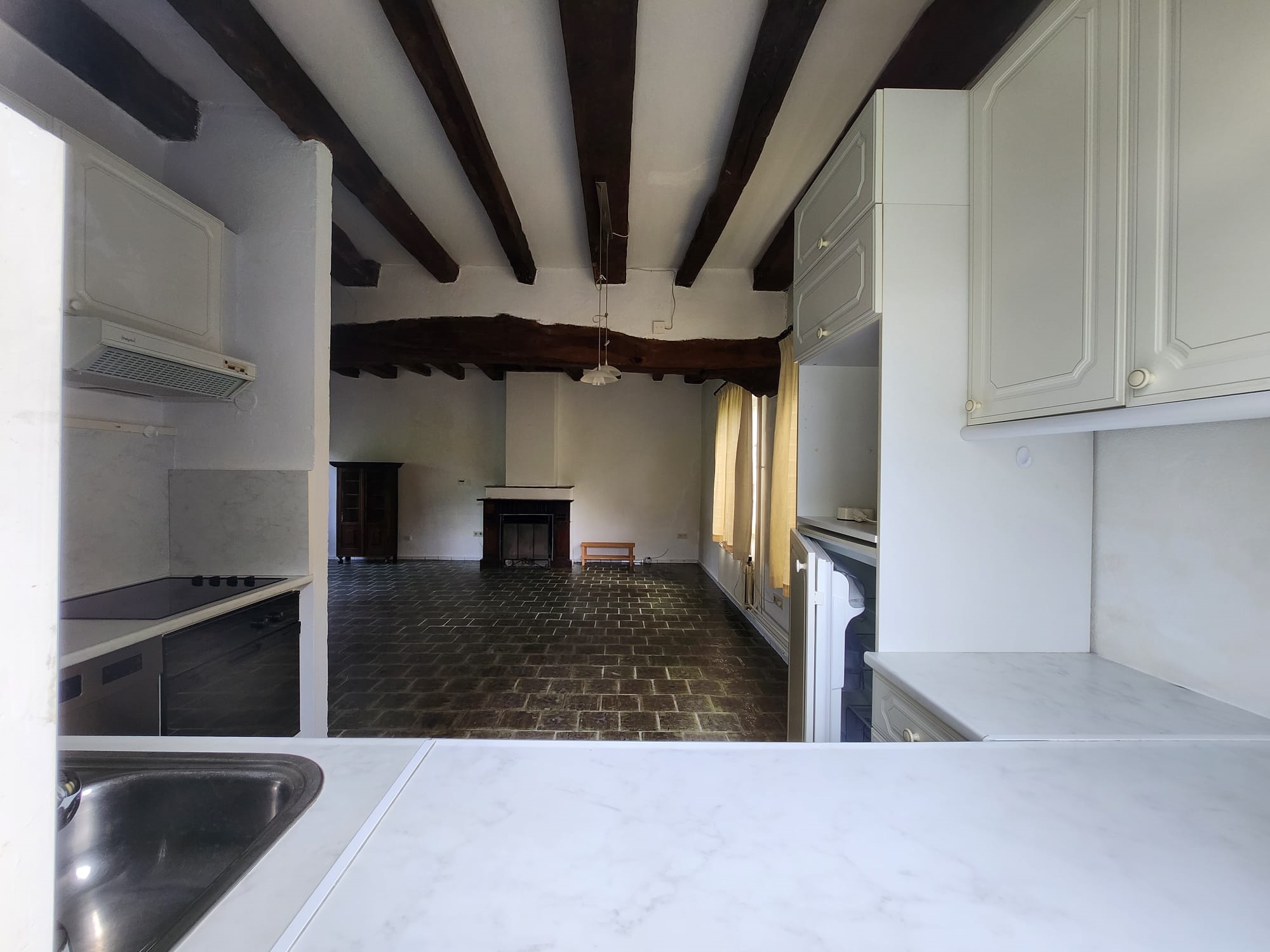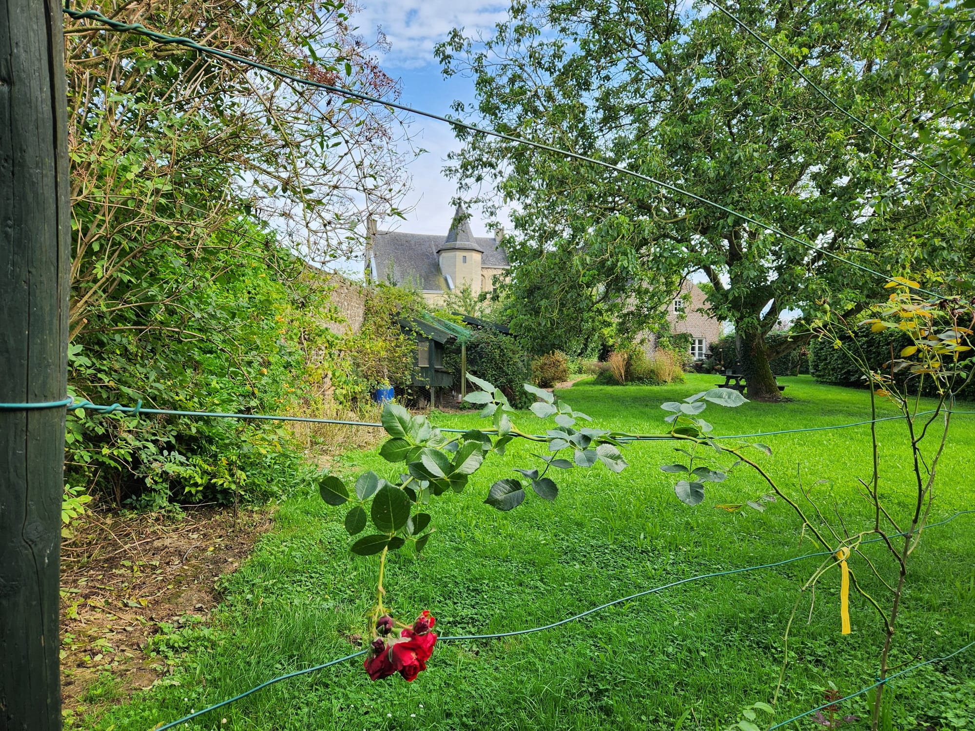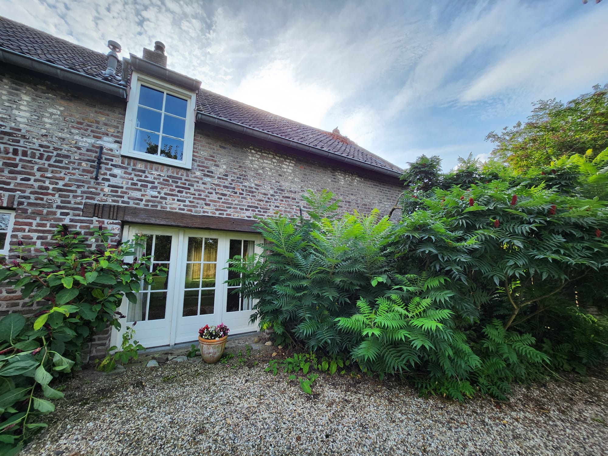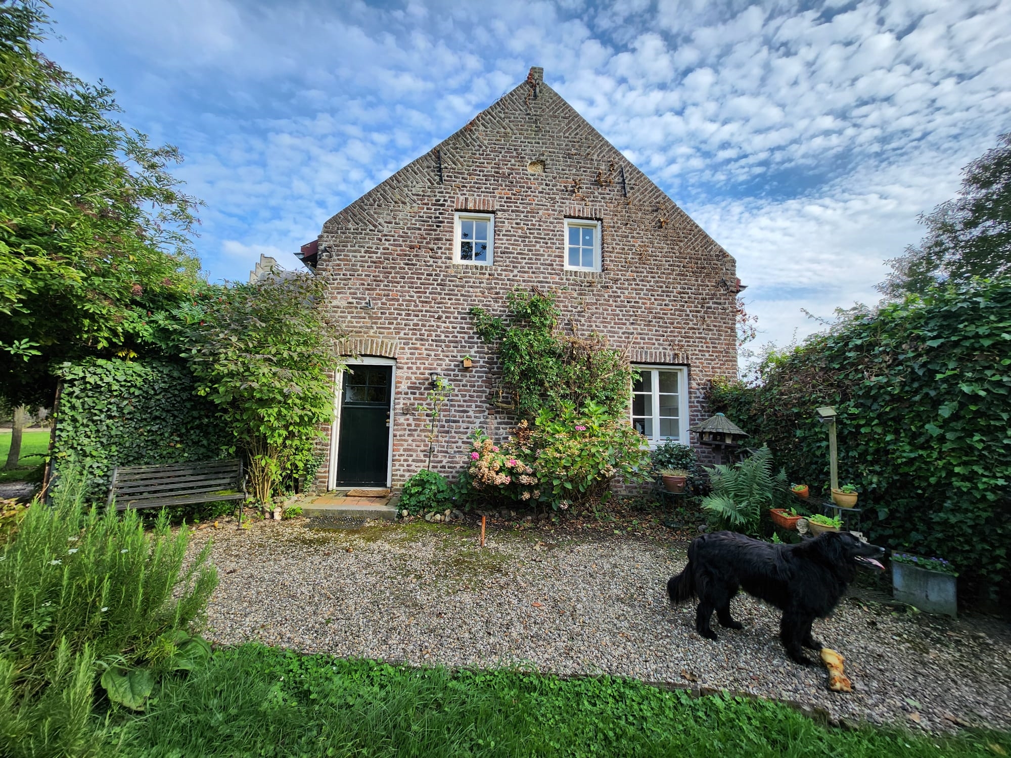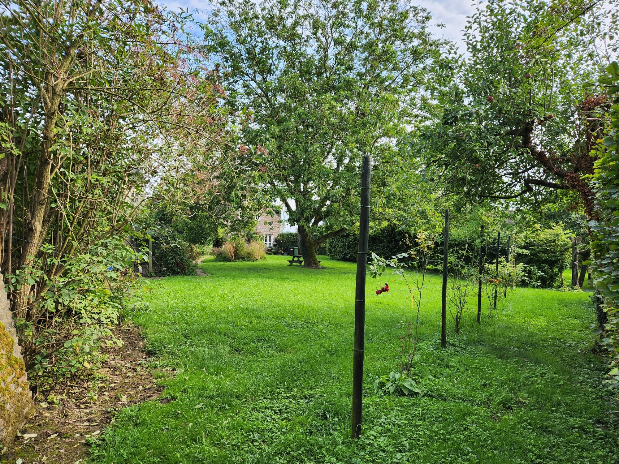 The kitchen is equipped with a built-in refrigerator, 4-burner stove, extractor hood, oven and dishwasher. From the kitchen as well as from the living room you have a beautiful view of the greenery of the spacious plot where this half-timbered house is located.