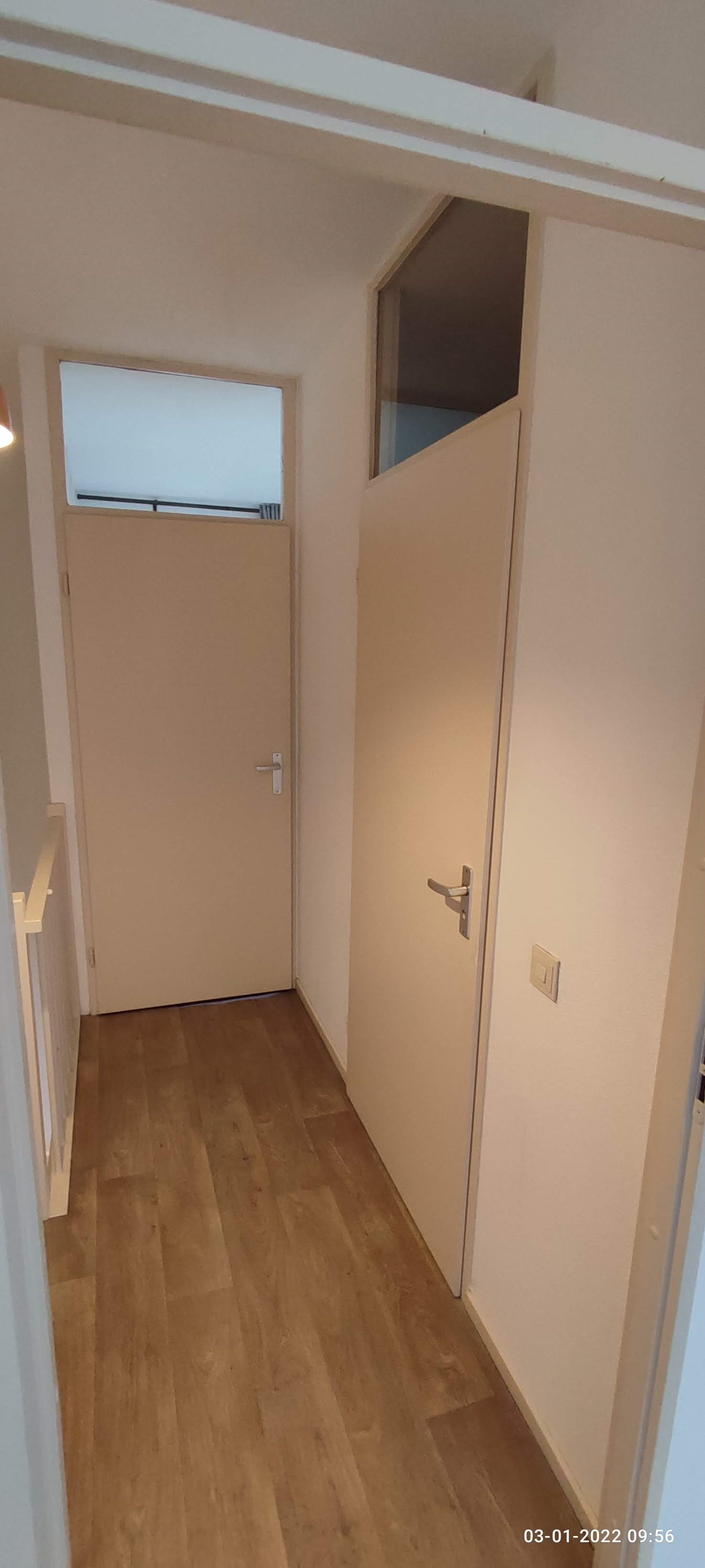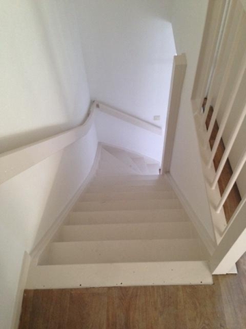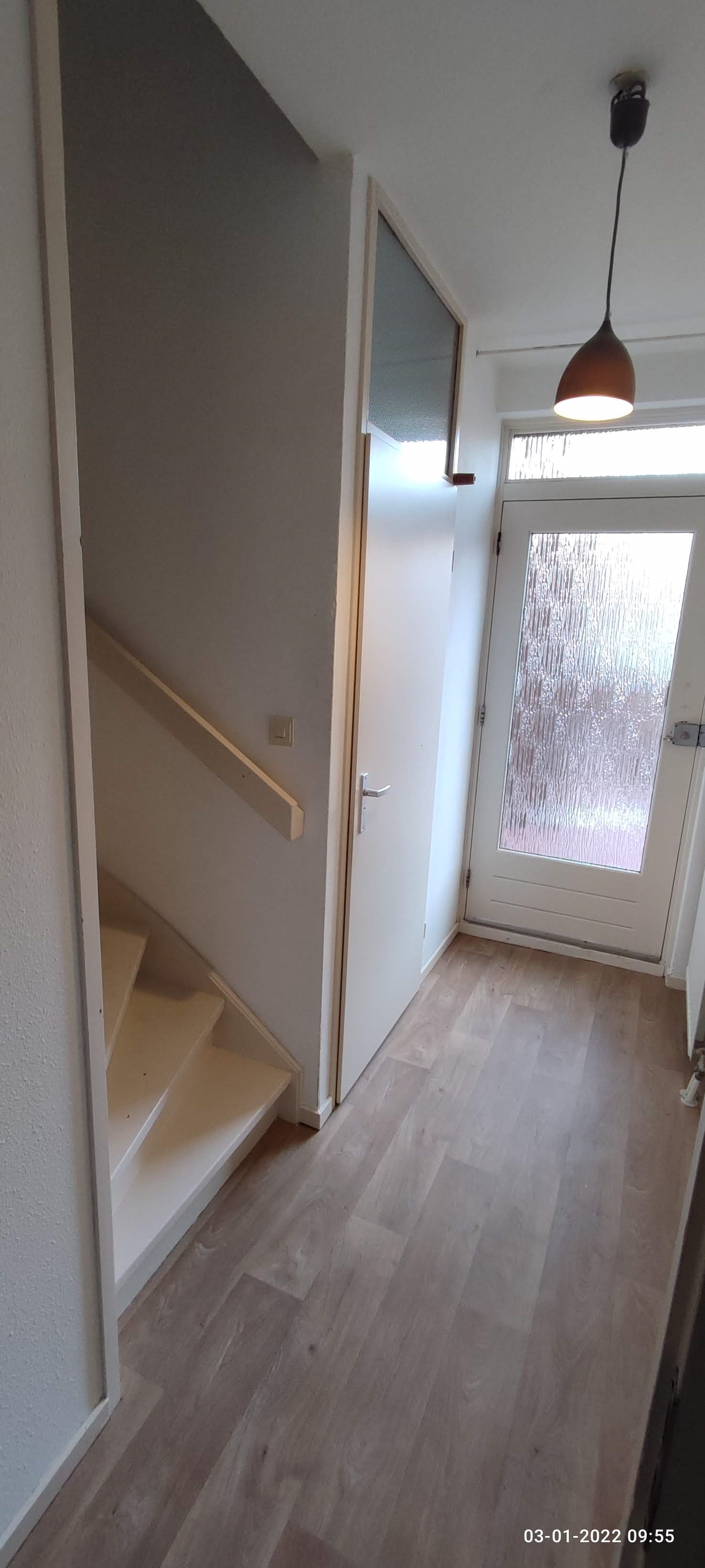 You enter the house in the hall, from where you have access to the toilet, the living room and also the staircase to the upper floor. The apartment has a spacious living room (approx. 30m²) with an adjacent semi-open kitchen. The living room enjoys a lot of light through the large windows at the front. This house is equipped with a neat kitchen layout which is equipped with a built-in fridge and freezer combination and extractor hood.