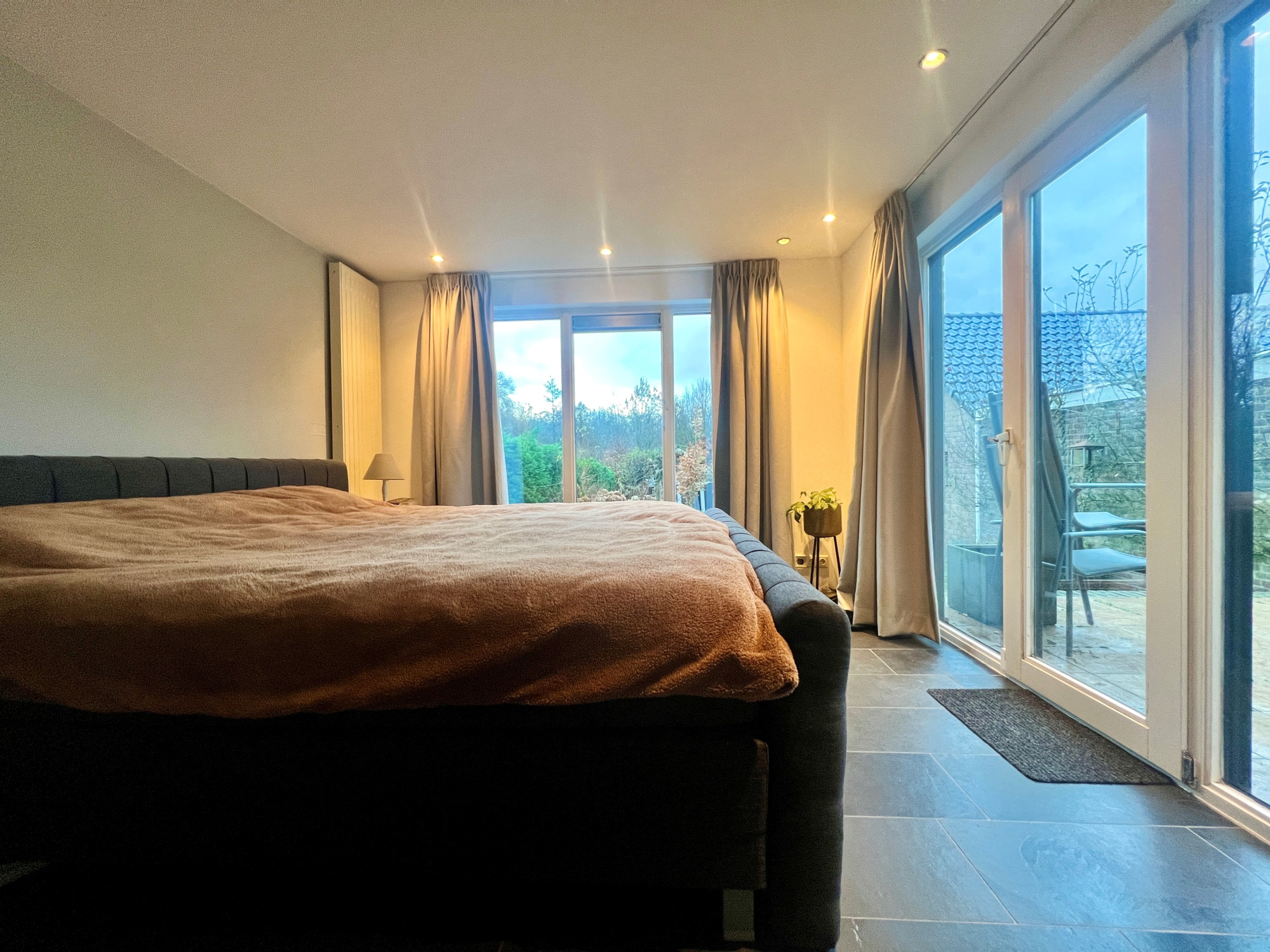 The open kitchen is equipped with; hob, extractor hood, refrigerator, oven, microwave and dishwasher.