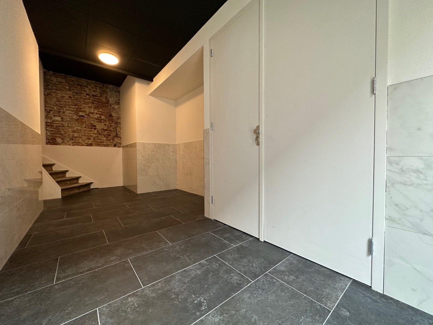Tweede verdieping gelegen appartement: entree met PVC-vloer, garderobe en meterkast. Zwevend toilet met fonteintje en mechanische afzuiging. Lichte woonkamer met PVC-vloer, intercom met display, erker, voorbereiding voor airco en diverse raampartijen met zicht op de Vleesstraat. L-vormige open keuken met spoelbak en inbouwapparatuur zoals: koel/vriescombinatie, combimagnetron, inductiekookplaat, afzuigkap en vaatwasser. Slaapkamer met PVC-vloer, technische ruimte voor de warmtepomp. Aangrenzend aan de slaapkamer bevindt zich de badkamer met Grohe kranen, inloopstortdouche met handdouche, wastafel met meubel, mechanische afzuiging en witgoedaansluiting.