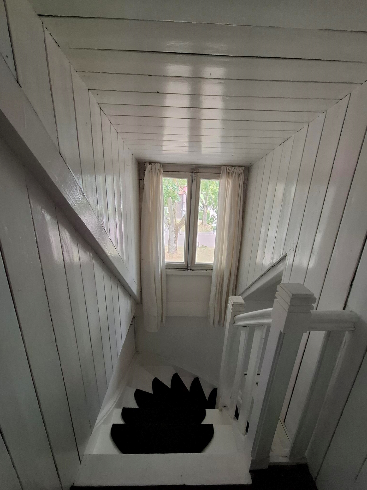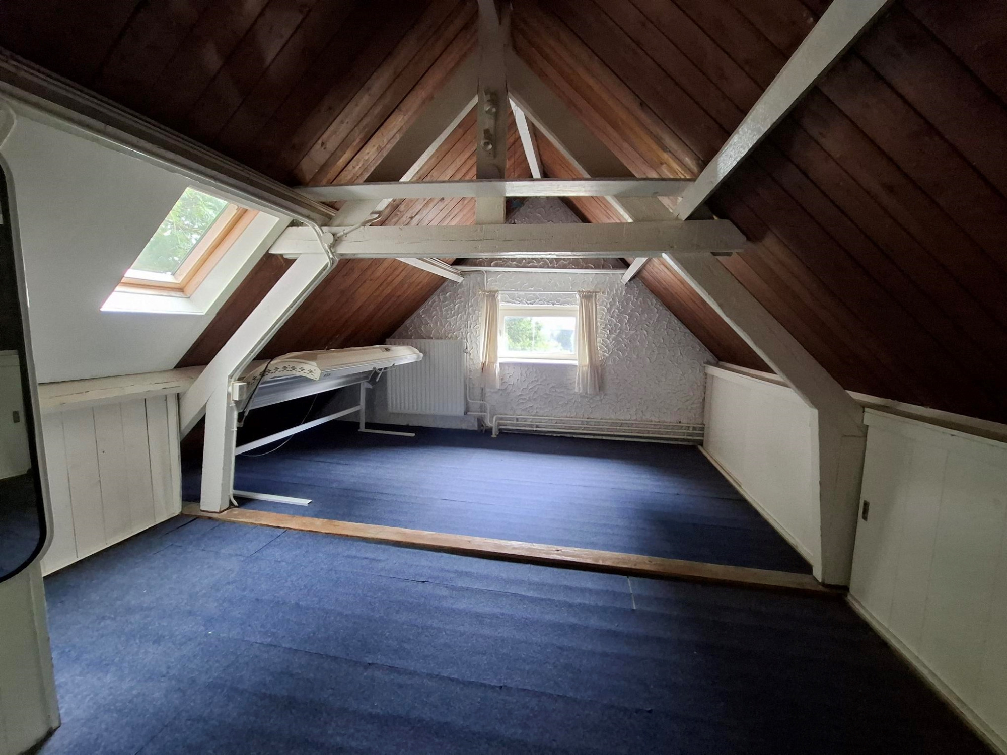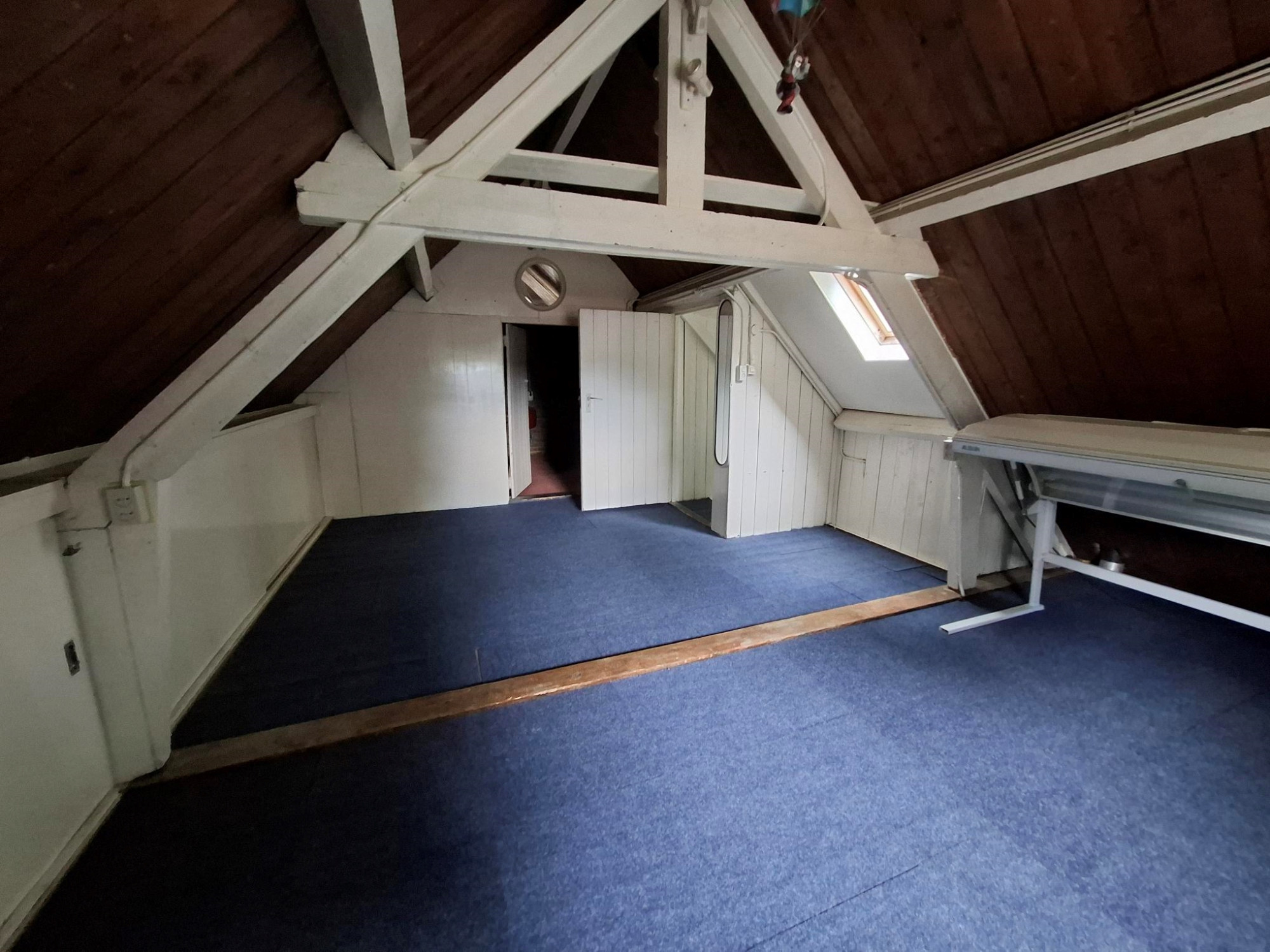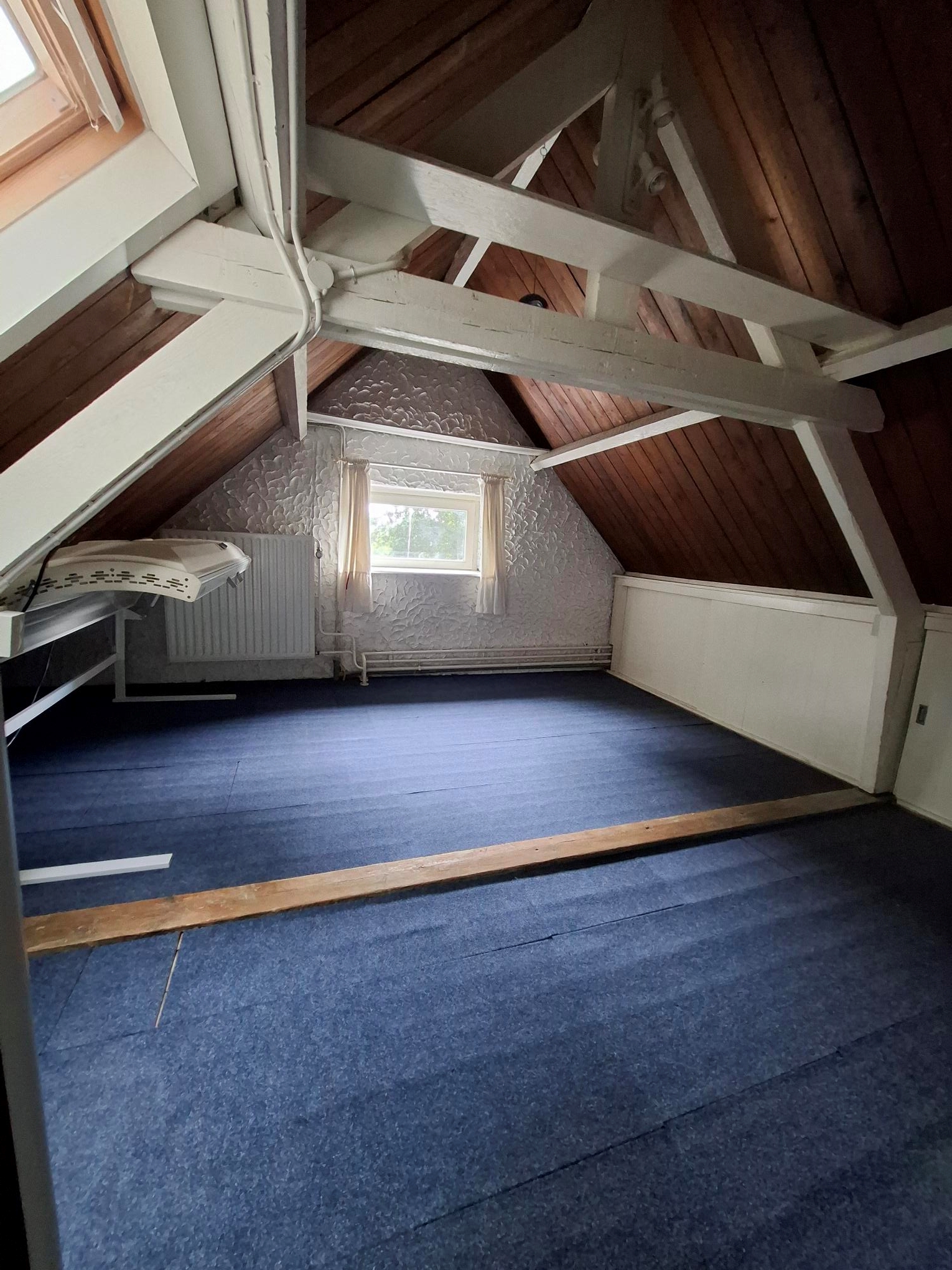 Vaste trap naar zolder. Bergruimte. Grote werkkamer.