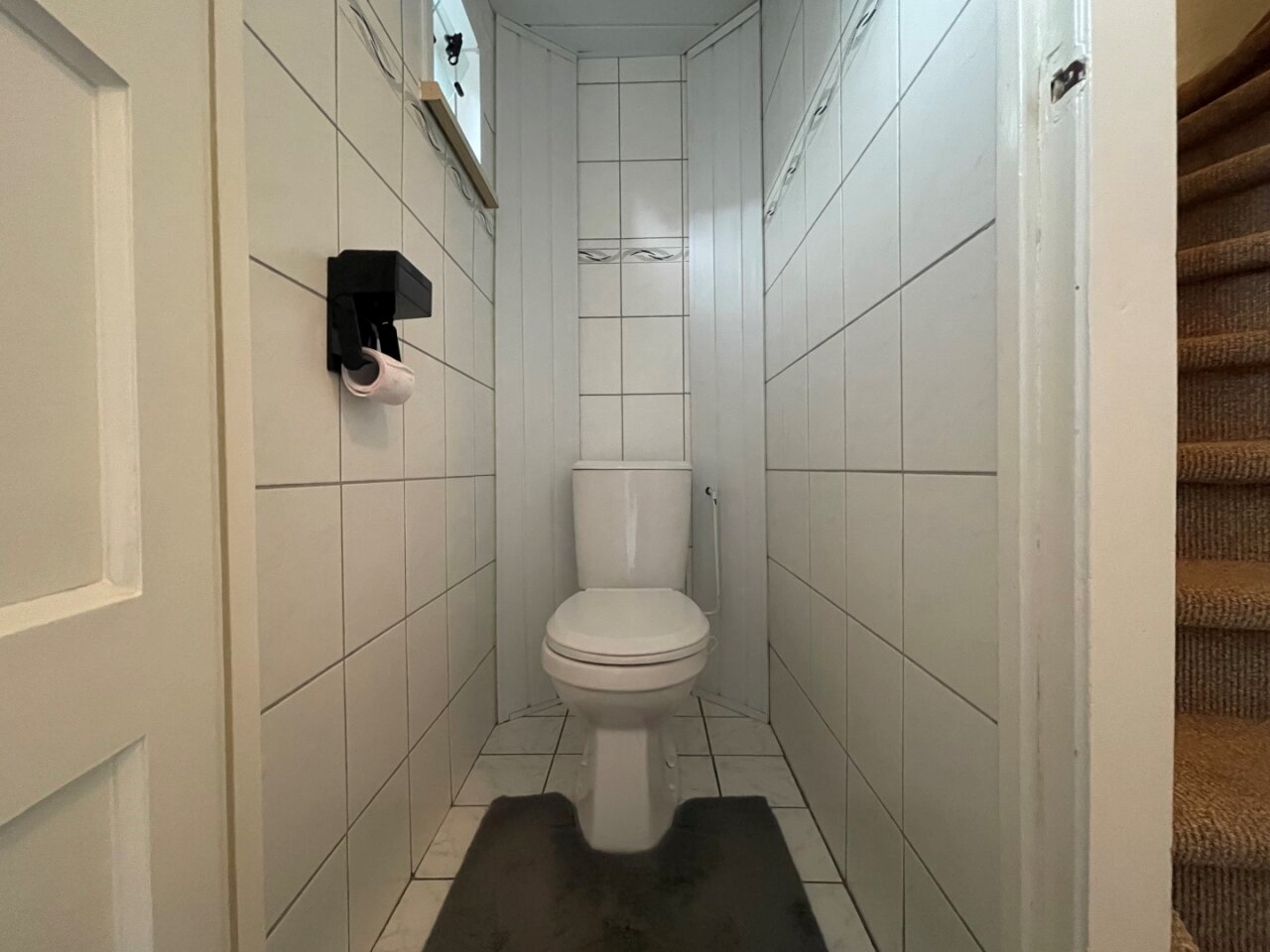 Entrance/hall (2.75 x 1.55 m) with tiled flooring, providing access to the basement and stairs to the first floor. Fully tiled toilet (1.20 x 0.80 m).