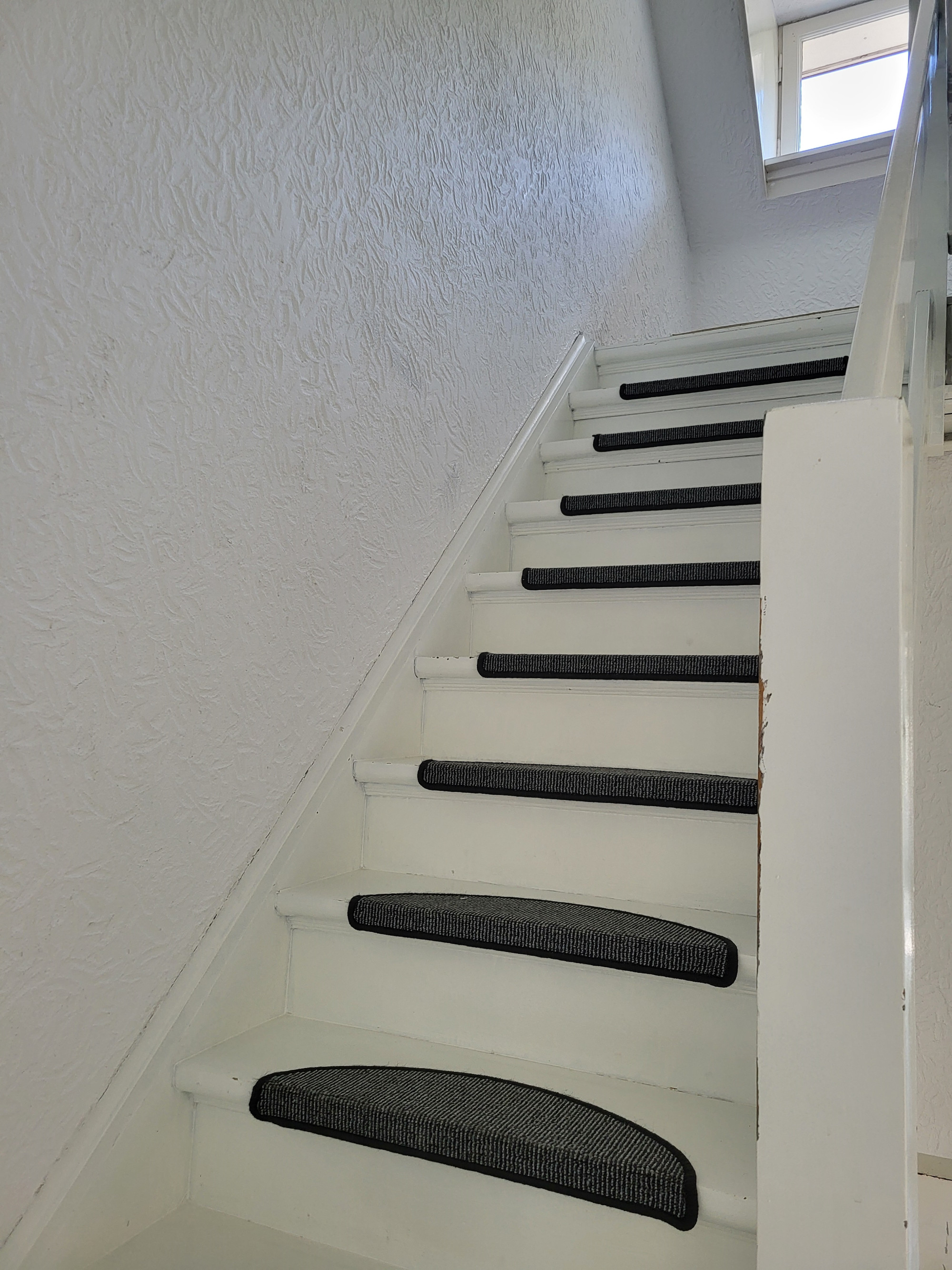 In the hall you will find the separate toilet with washbasin and access to the basement.