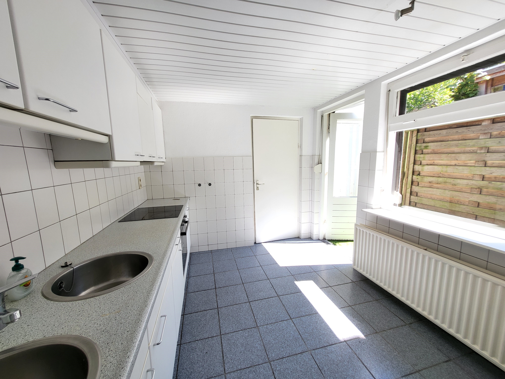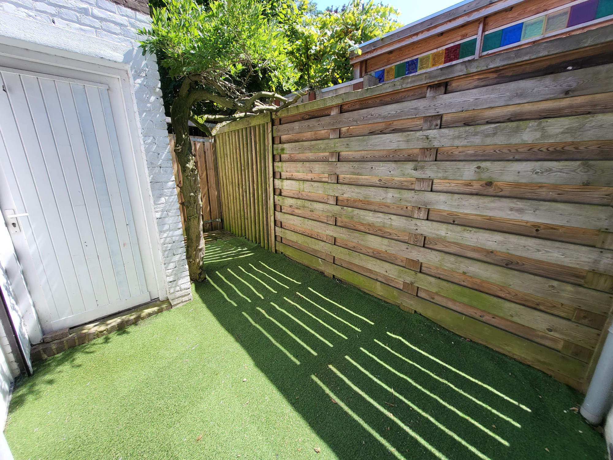 From the kitchen and the living room you have access to the first part of the garden. Behind the garden gate runs a path with right of way for the 2 neighbors. Behind this path is the 2nd part of the garden belonging to this house.