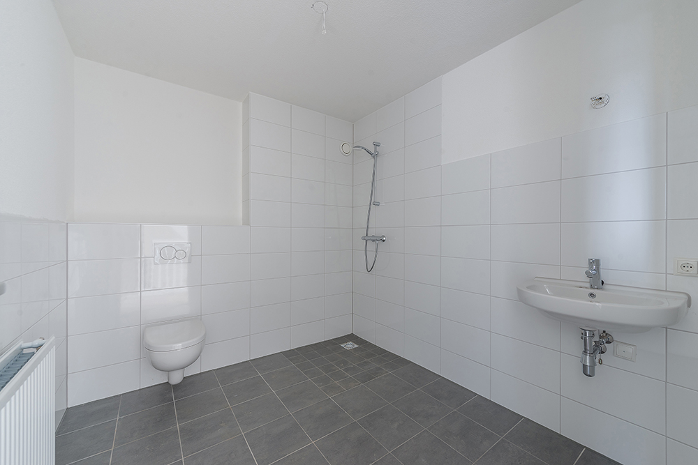 Deels betegelde luxe badkamer (2.90 x 2.40 m) voorzien van inloopdouche, 2e wand closet en vaste wastafel.