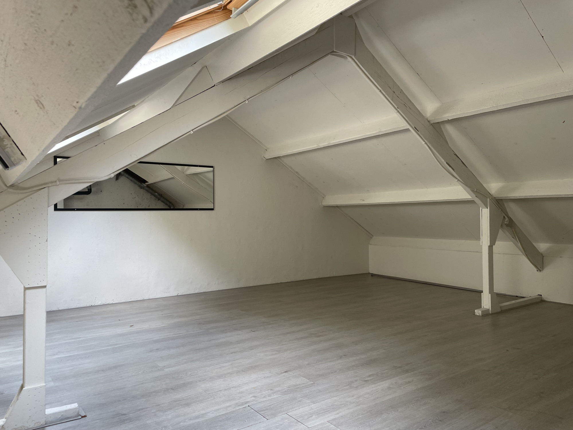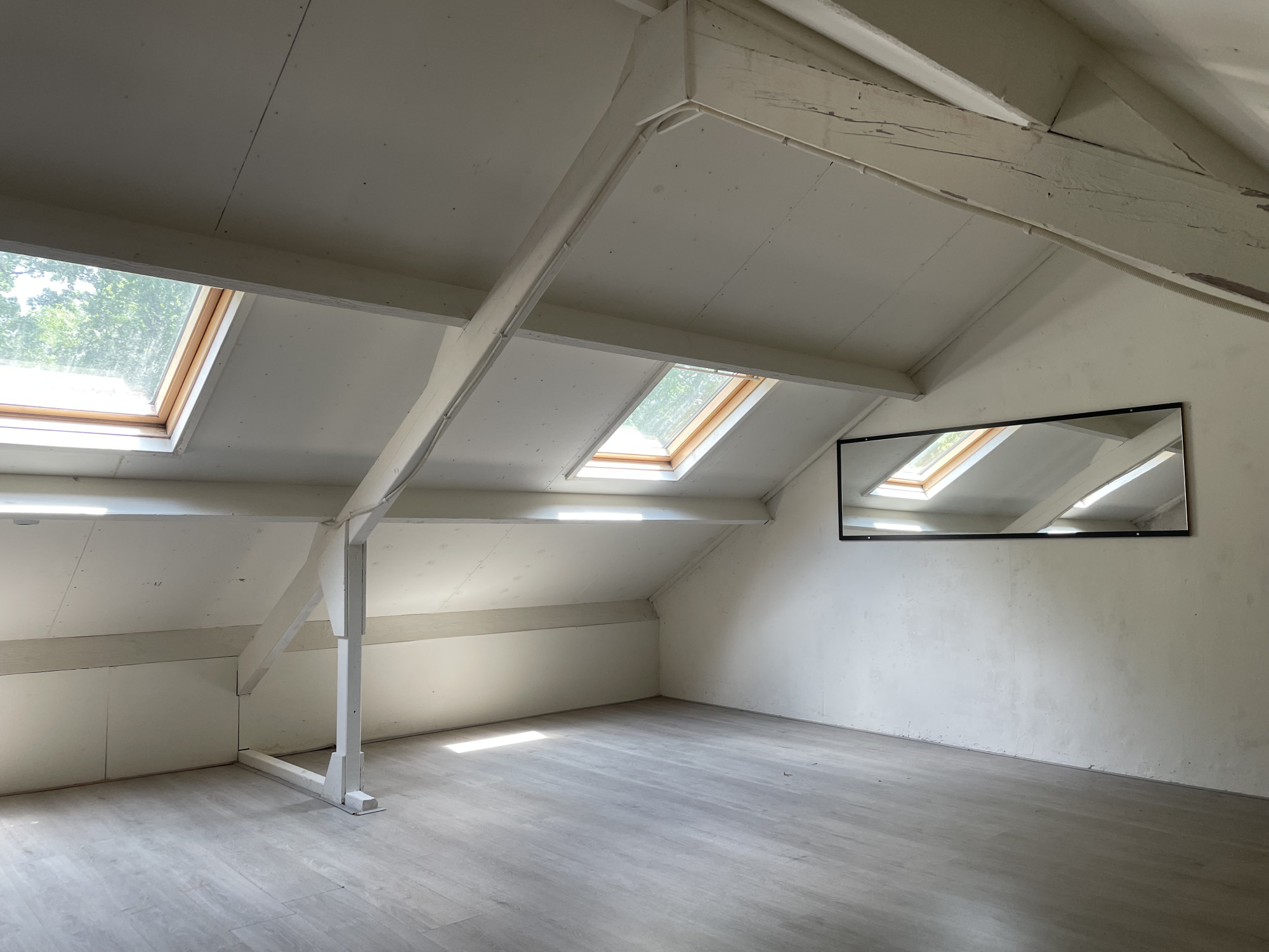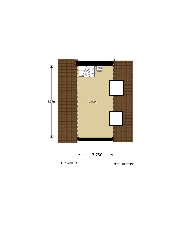 - Middels vaste trap bereikbare ruime zolderkamer met 2 dakramen aan de achterzijde, ideaal als extra slaapkamer, studeer- of speelkamer.
