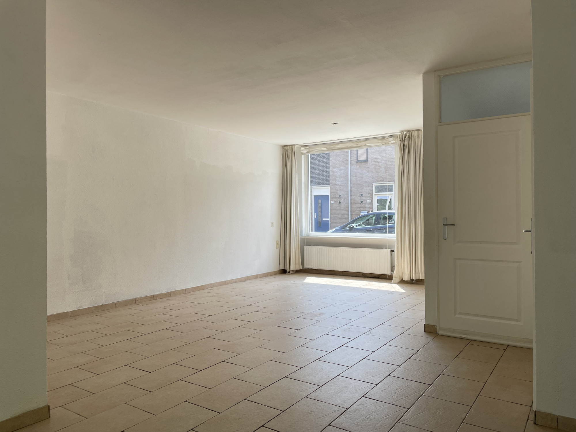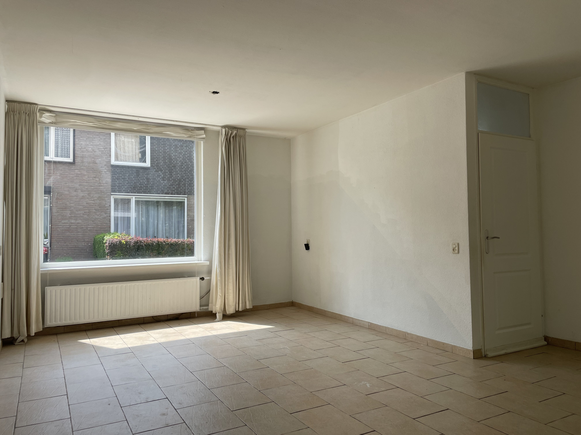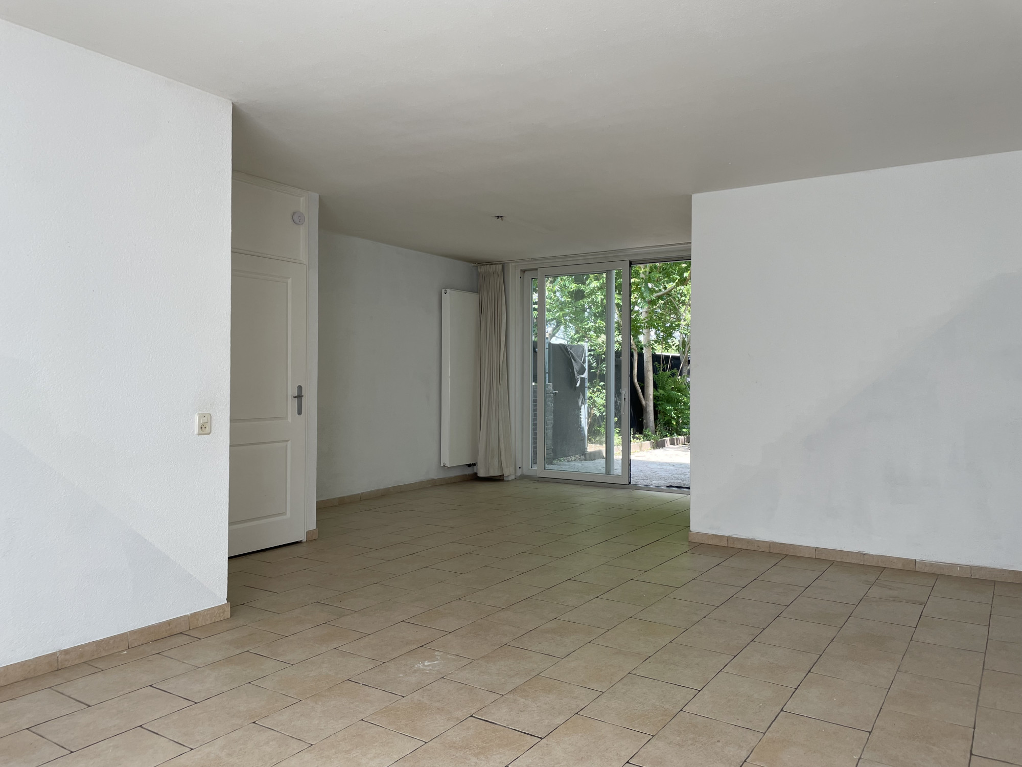 - Ruime (doorzon) woonkamer (circa 35 m²) met veel lichtinval, een nette tegelvloer en schuifpui naar de