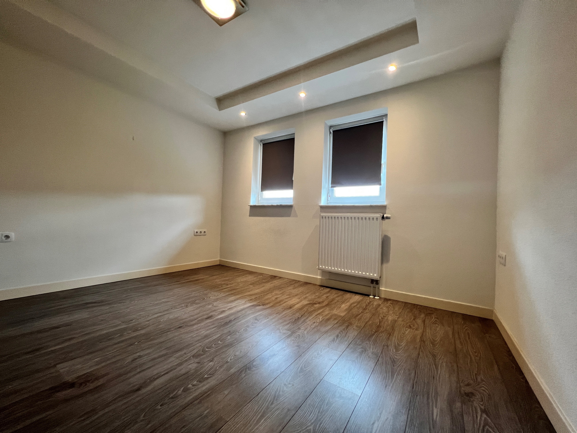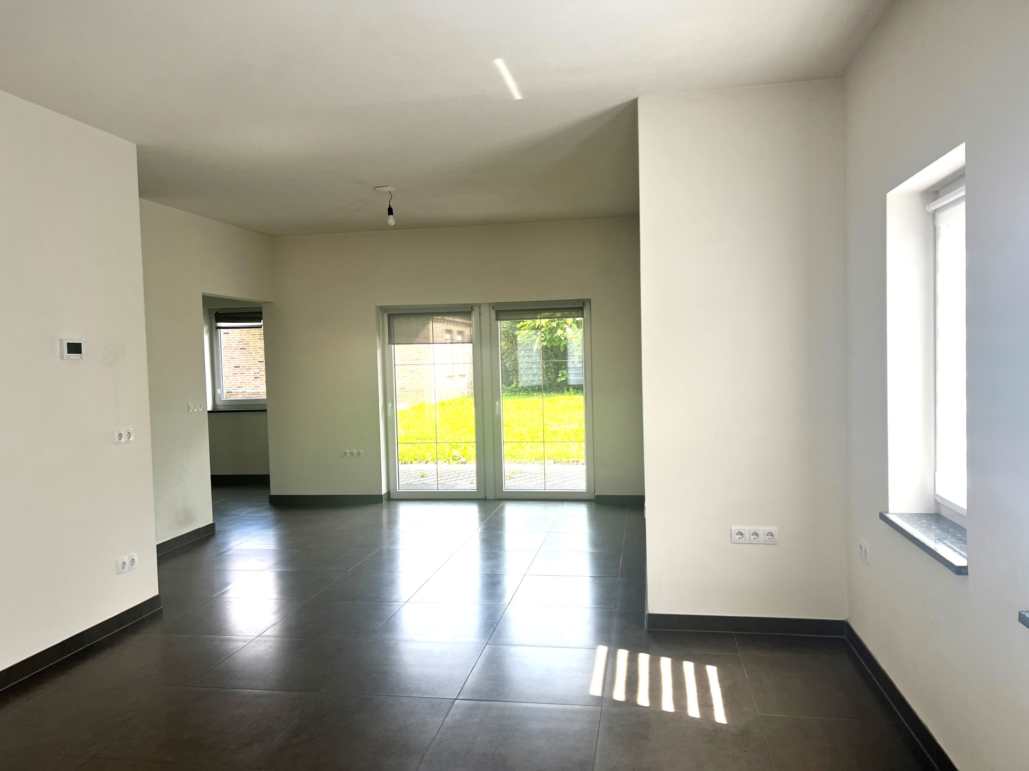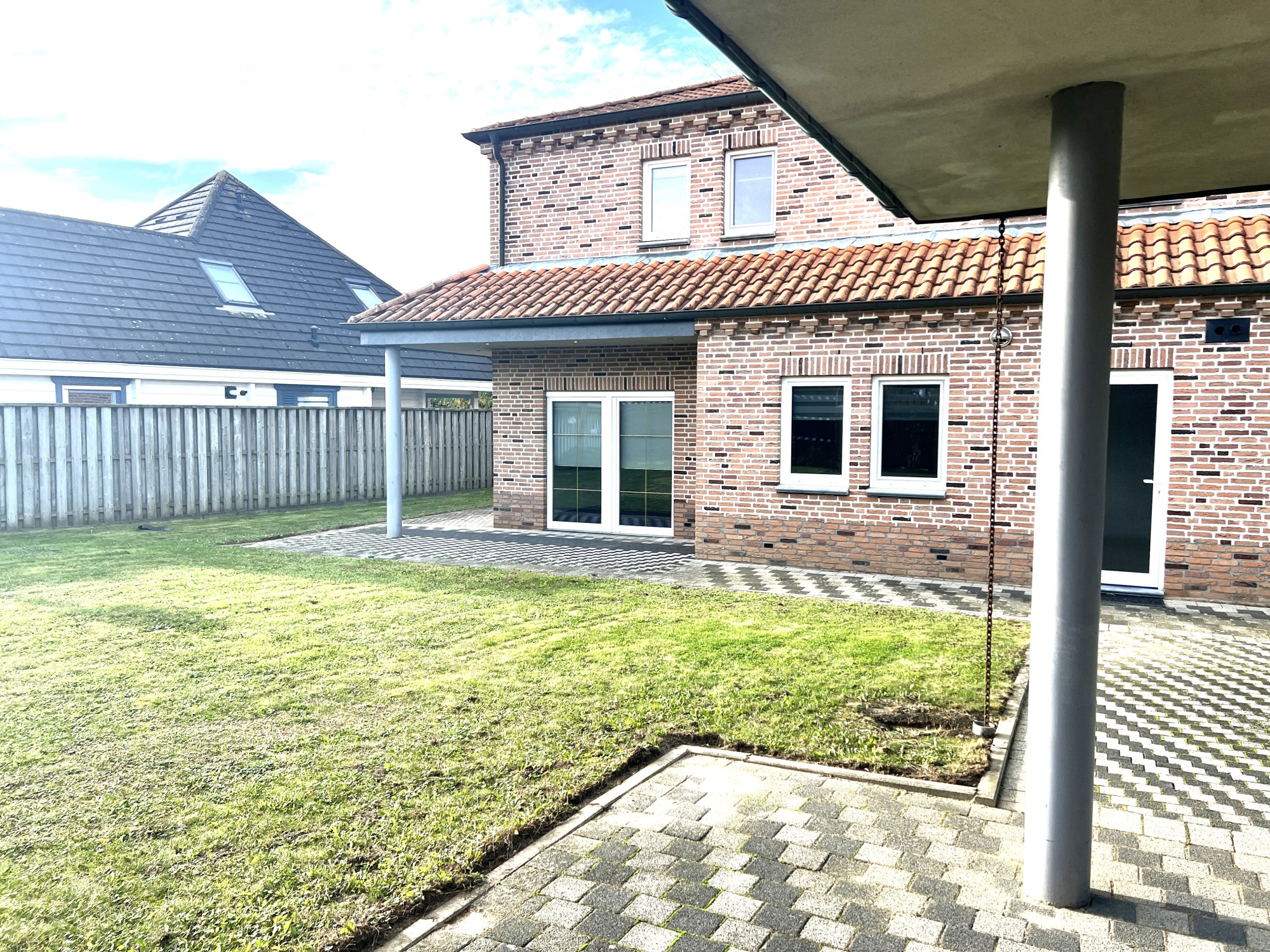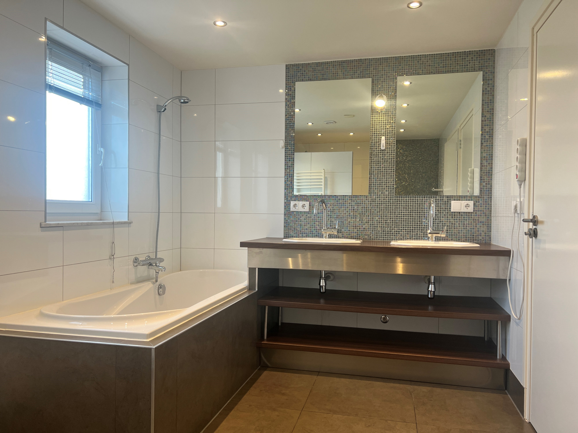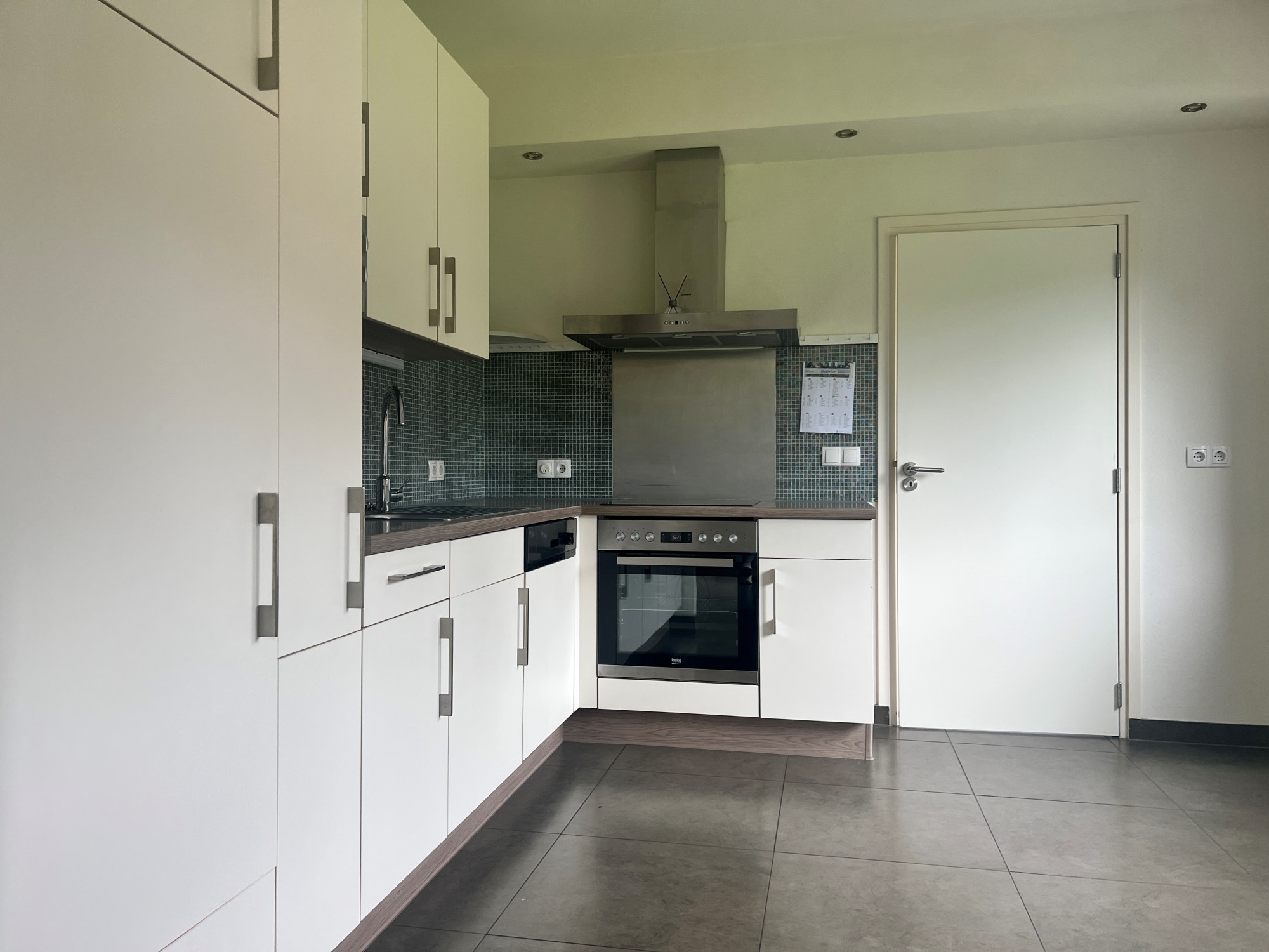 The living room enjoys a lot of light with 2 patio doors towards the garden. The kitchen is equipped with a 4-burner stove, stainless steel extractor hood, oven, microwave, dishwasher and built-in fridge and freezer.