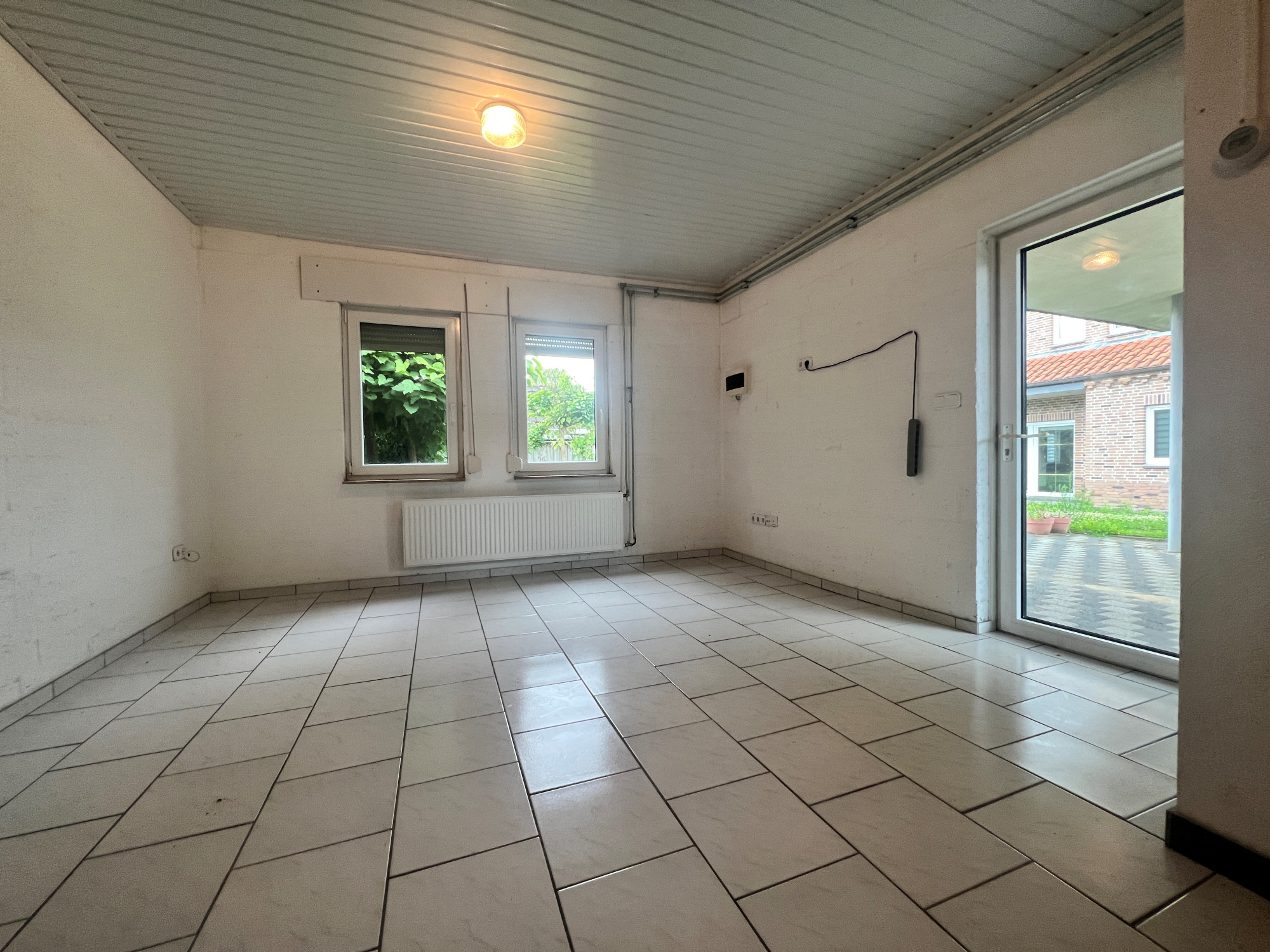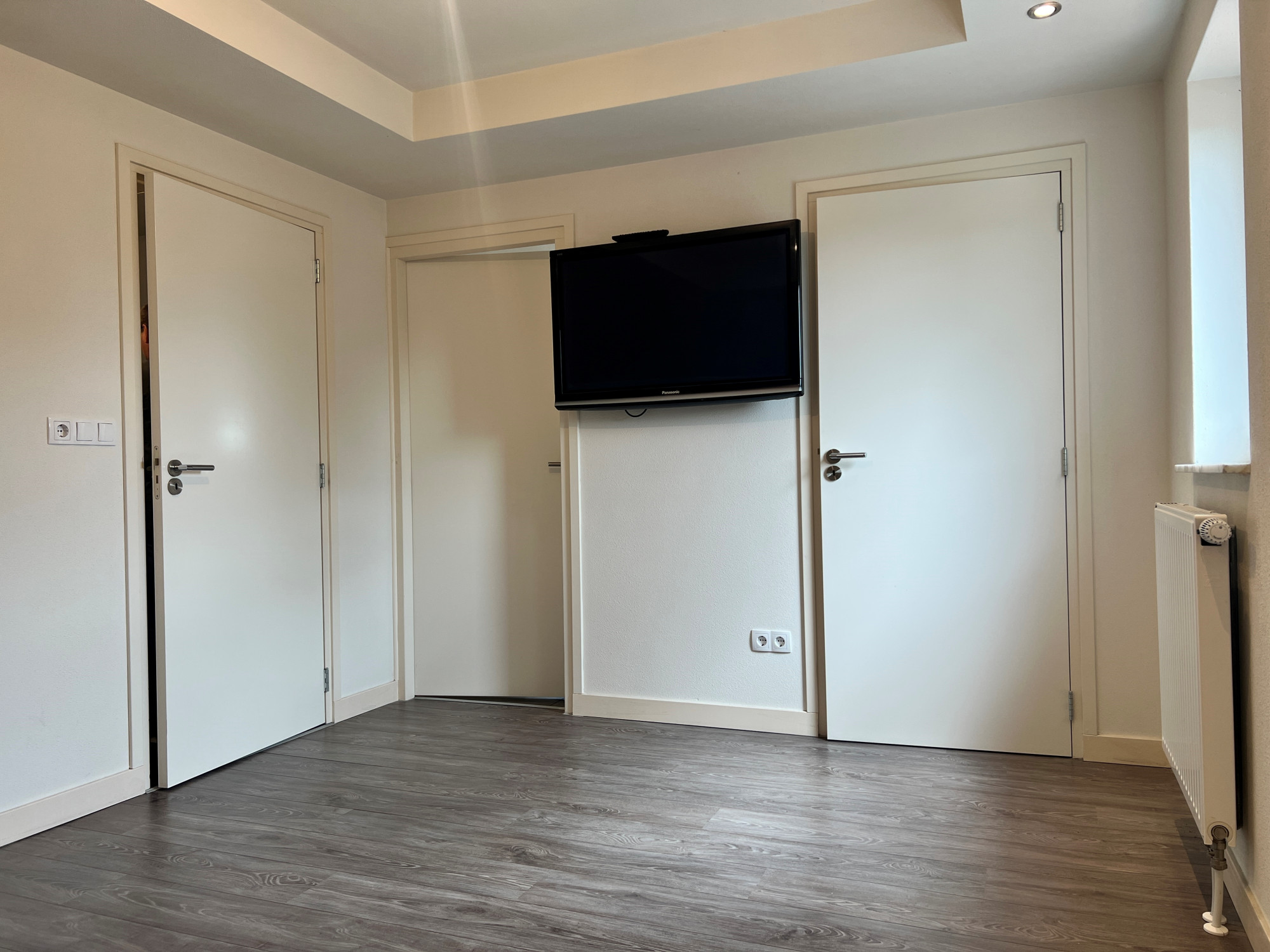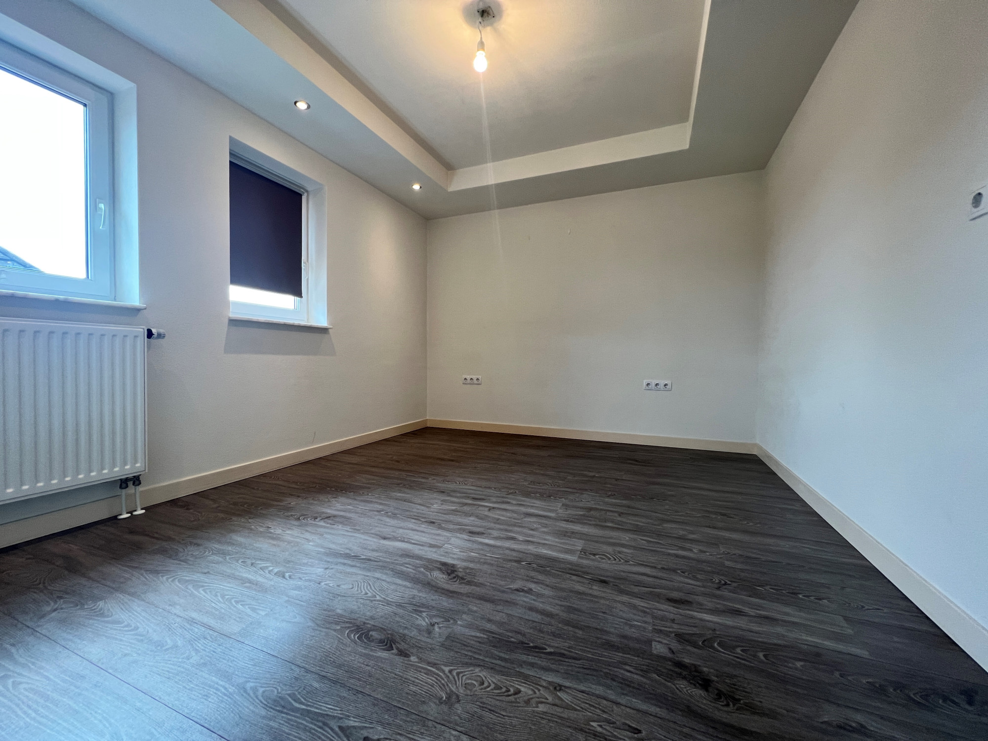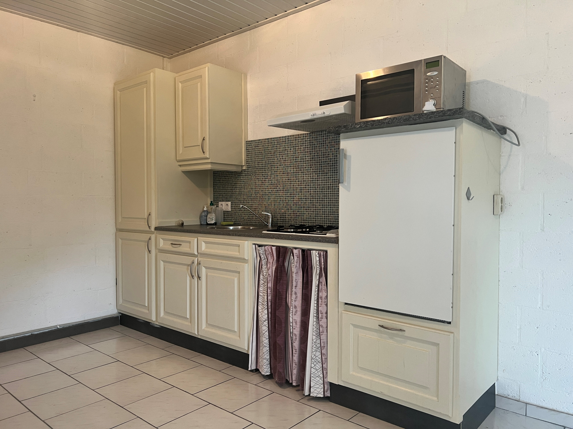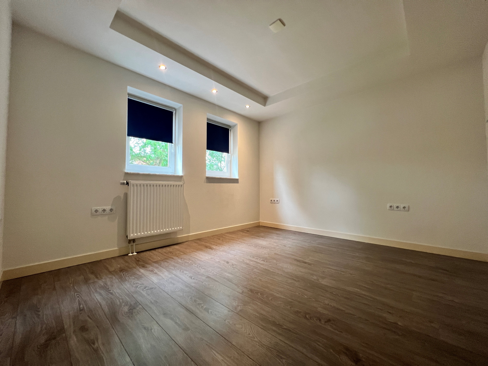 The living room enjoys a lot of light with 2 patio doors towards the garden. The kitchen is equipped with a 4-burner stove, stainless steel extractor hood, oven, microwave, dishwasher and built-in fridge and freezer.