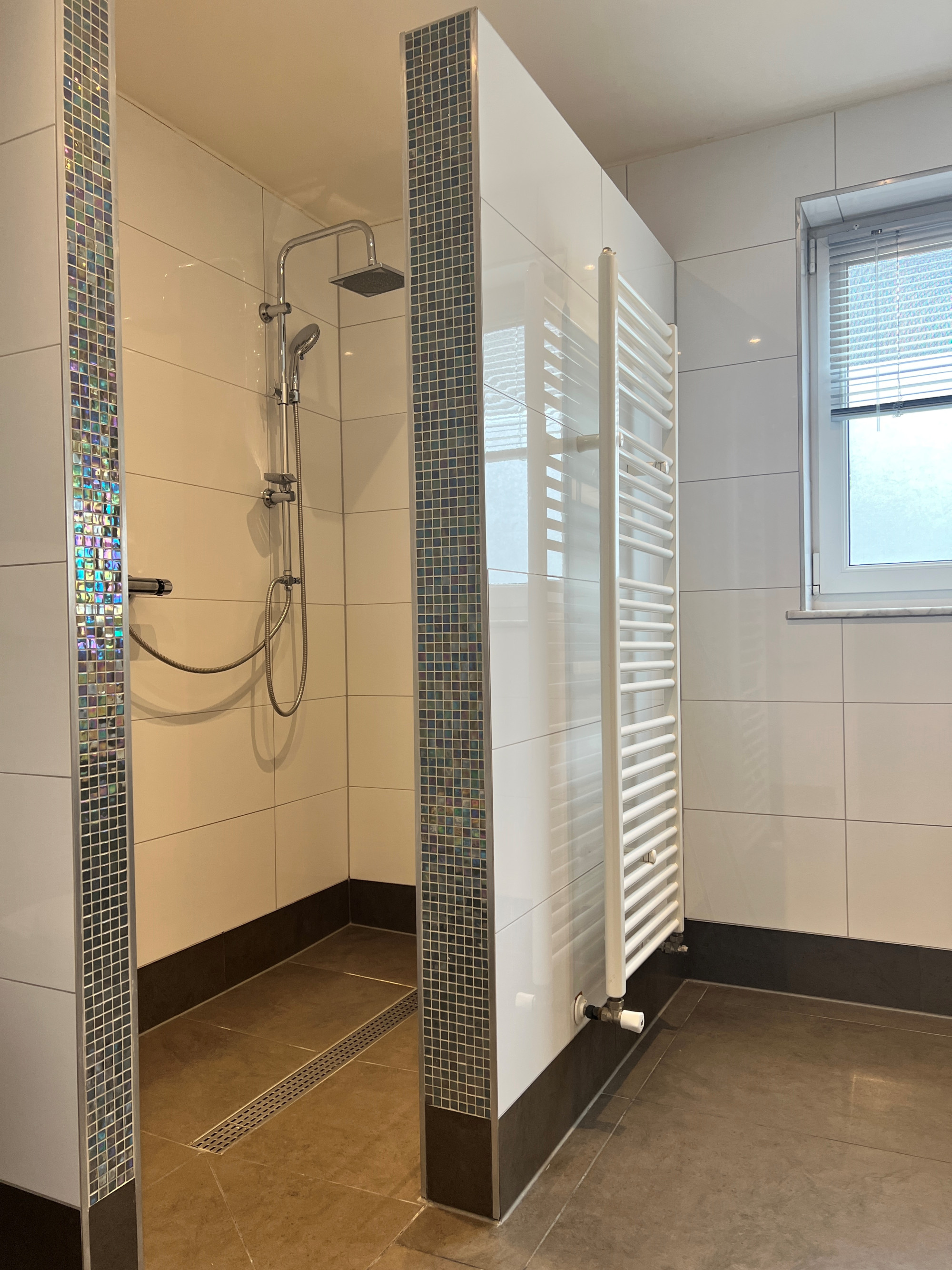 First floor: spacious landing with skylight. 3 bedrooms of 14m2 / 12m2 / 12m2 respectively. From the large bedroom also direct access to the walking closet and bathroom. The modern bathroom has a bath, walk-in shower, toilet, double sink and designer radiator.