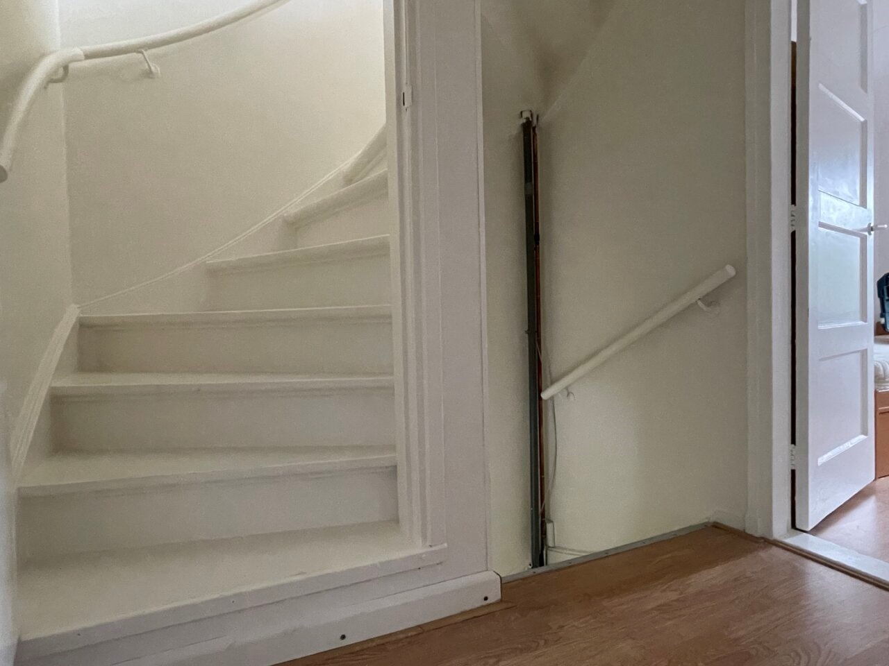 Landing (2.10 x 2.00/0.95 m) with laminate flooring, where stairs to the second floor.