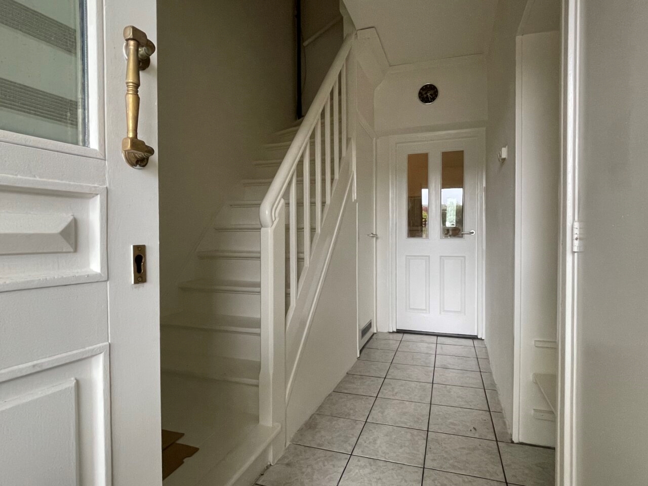 Entrance/hall (4.00 x 2.00/1.00 m) with tiles, where stairs to first floor, electrical installation and access to basement.