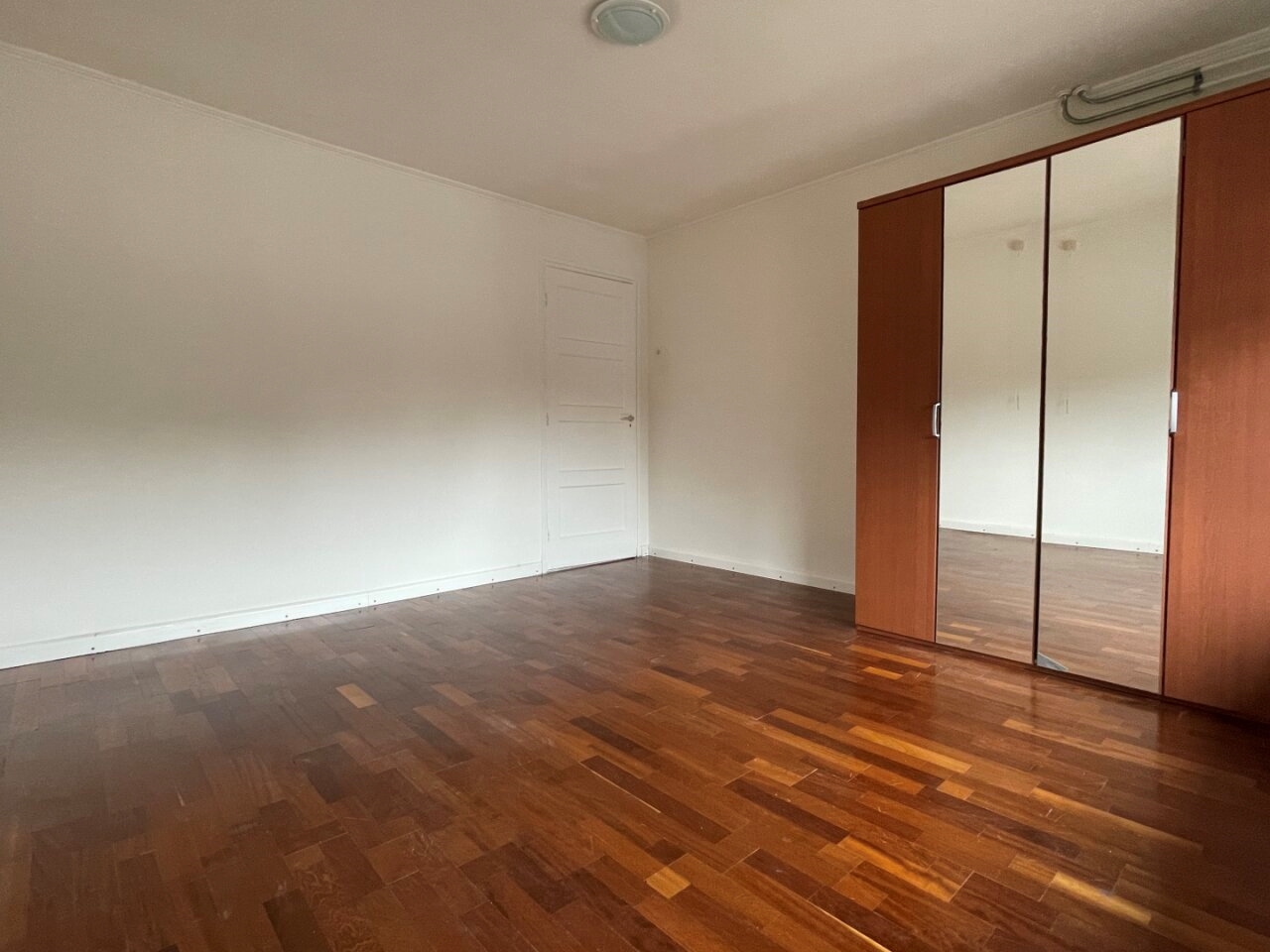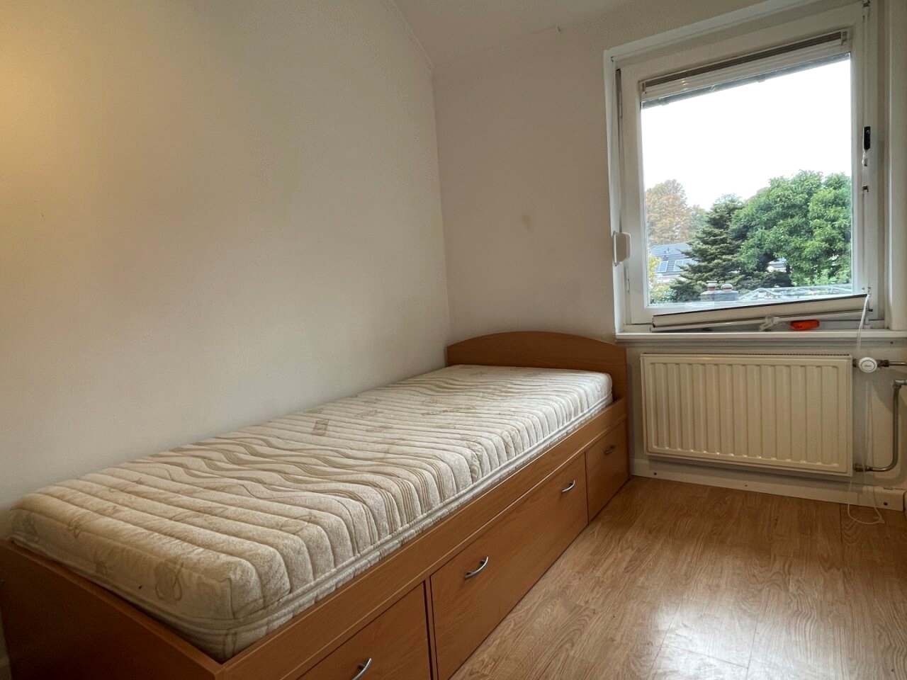 Bedroom 4 (4.85 x 4.70 m) with laminate flooring and equipped with a spacious fitted wardrobe and washbasin, where HR central heating boiler.