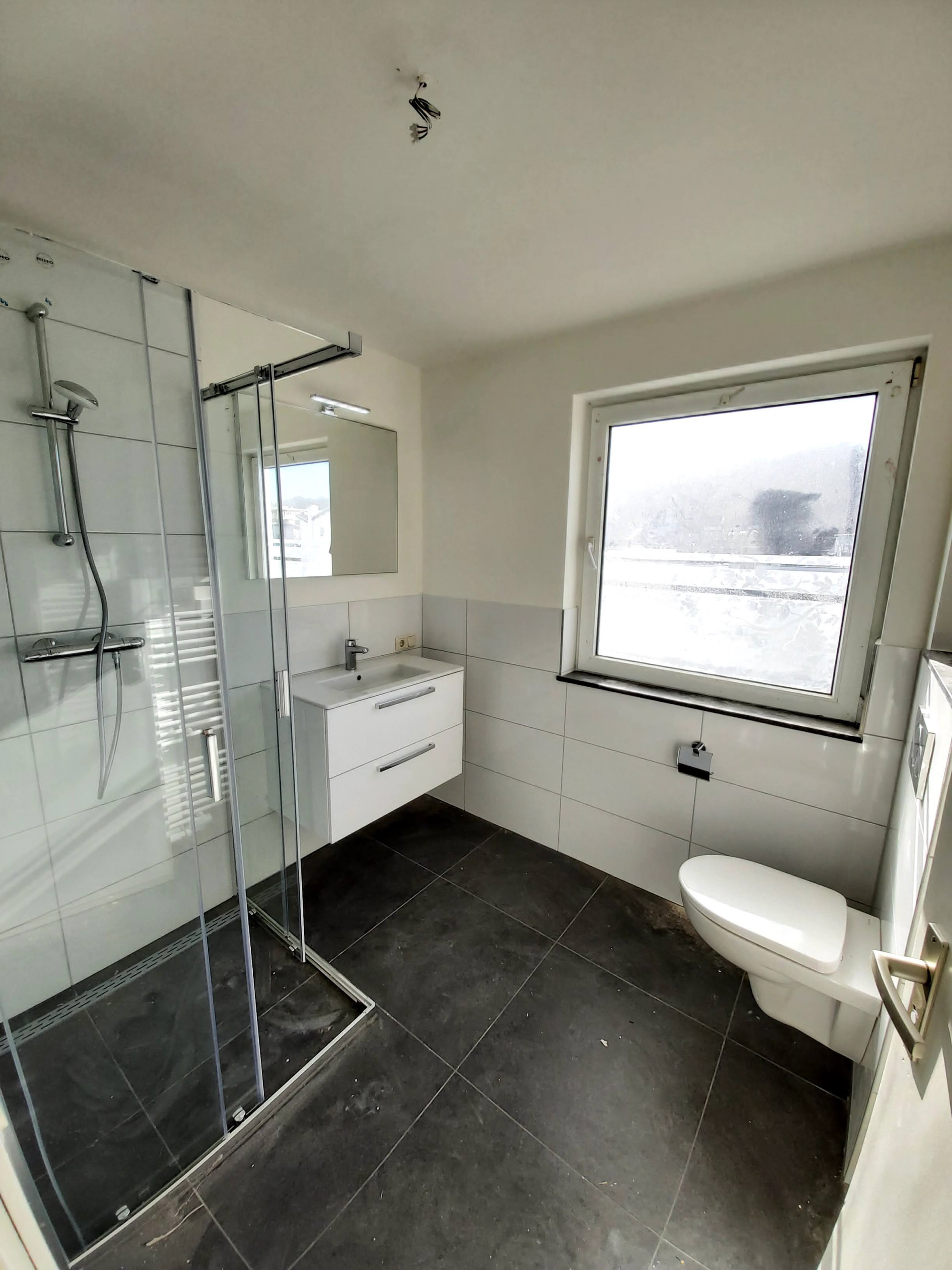 - Entrance hall with new toilet, meter cupboard, stairs to the first floor and access to the living room with open kitchen (approx. 34 m2).