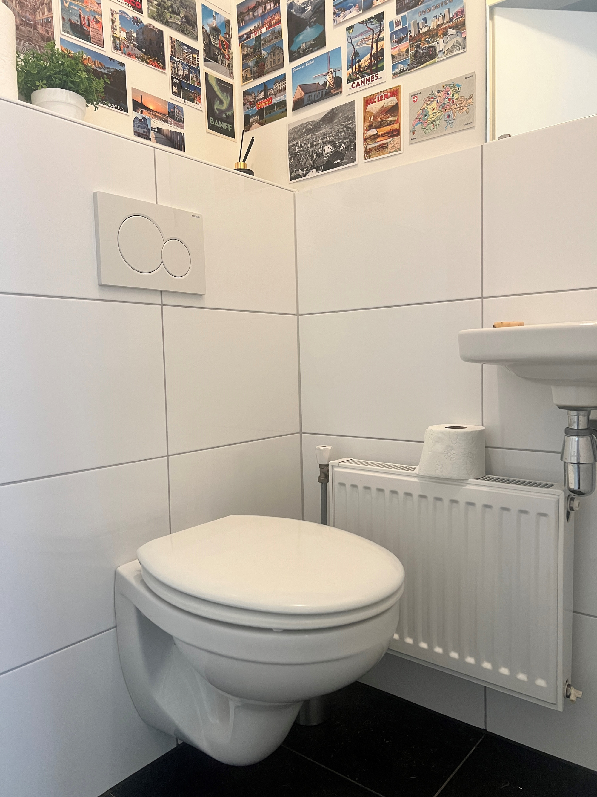 Entrance/hall with toilet and meter cupboard. Toilet room with toilet and sink.