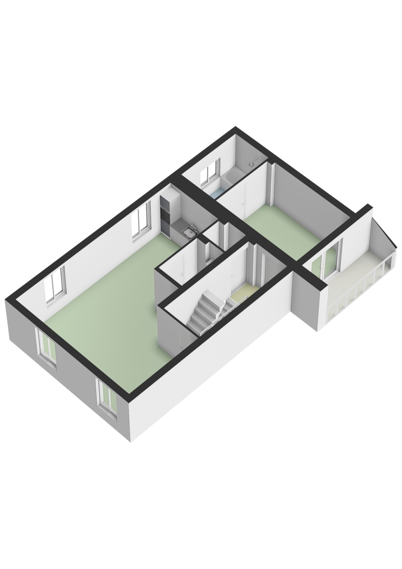- open keuken voorzien van o.a. gaskookplaat, afzuigkap, combi oven/magnetron, koelkast en vaatwasser