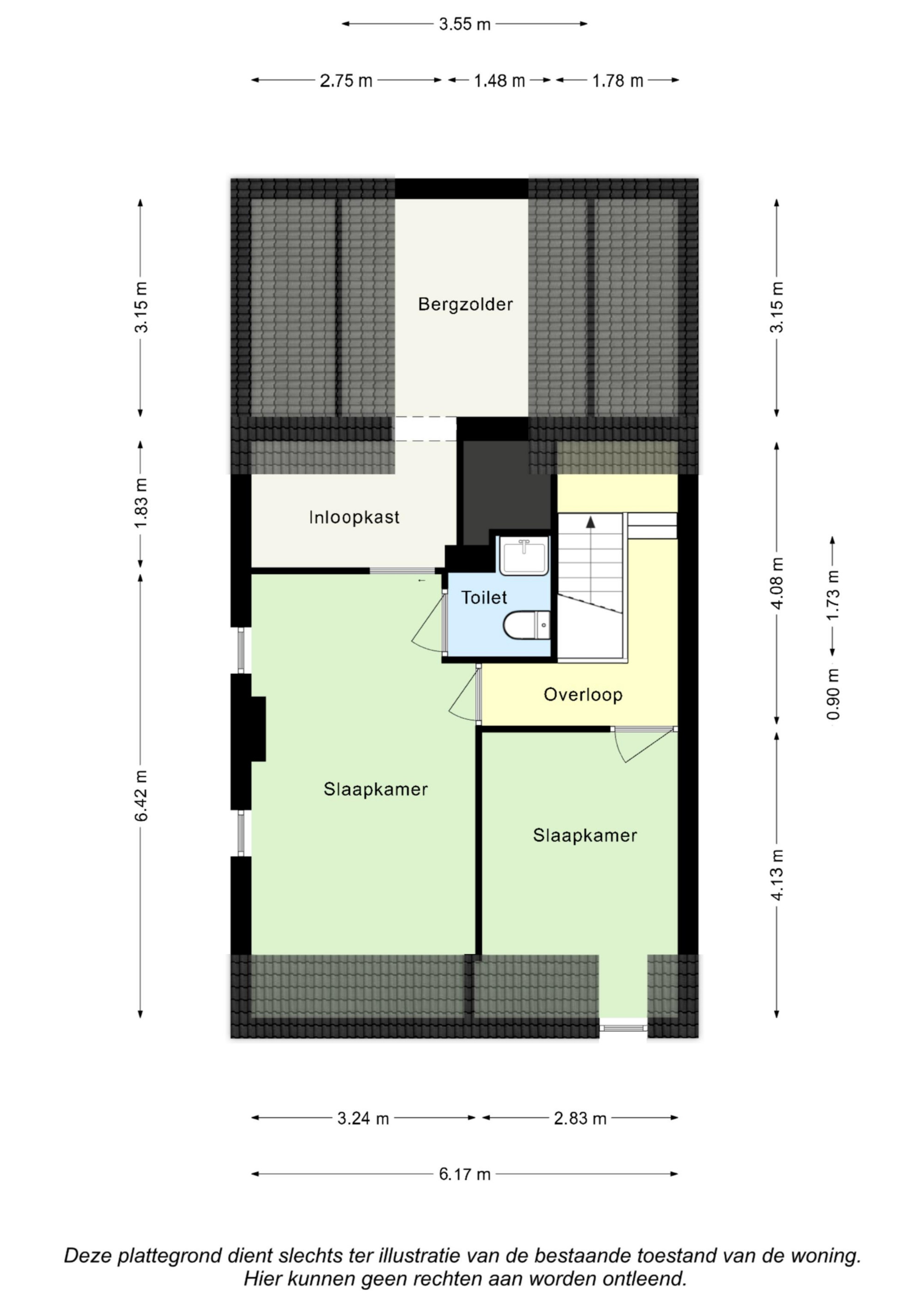 - slaapkamer met toegang tot inloopkast en aansluitend toegang tot zolder