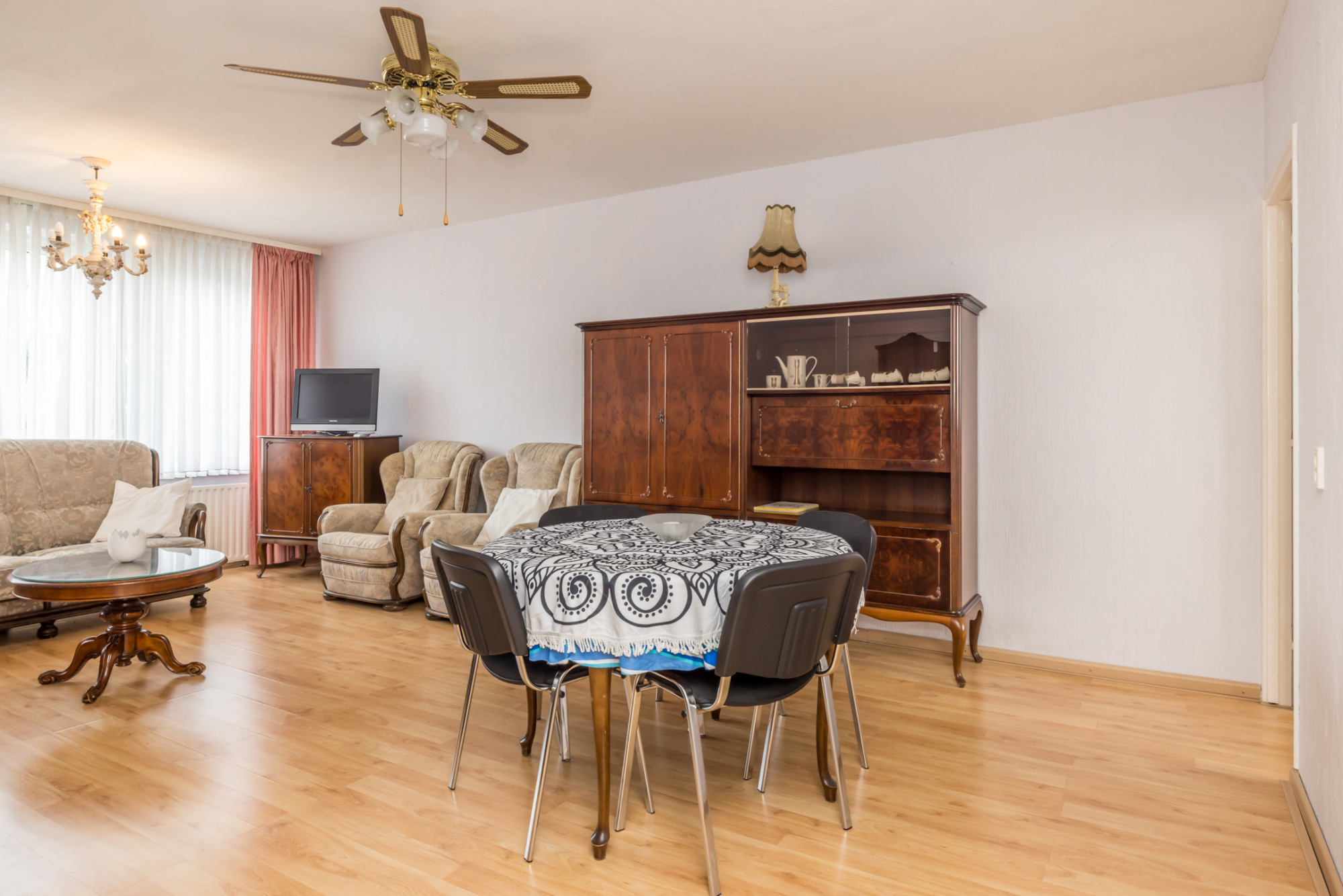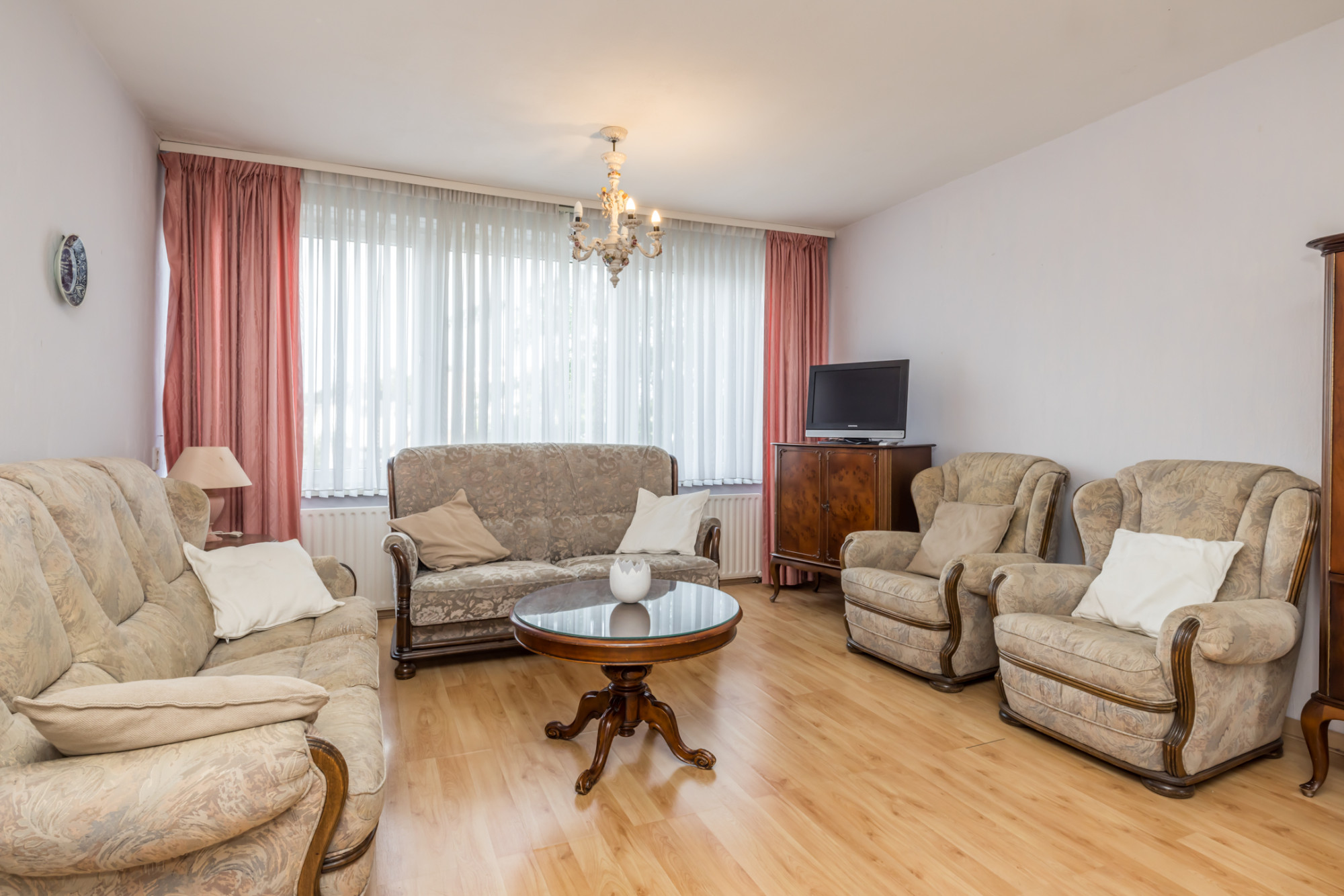 Bij binnenkomst komt u in de ruime en lichte woonkamer voorzien van een laminaatvloer, waar u kunt genieten van daglicht en een heerlijk uitzicht.