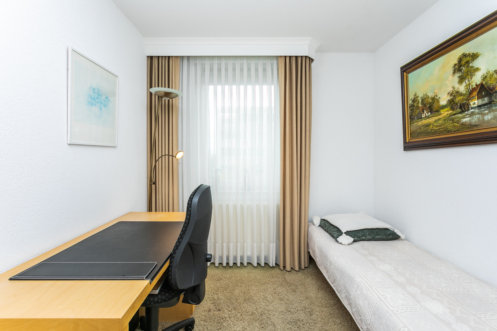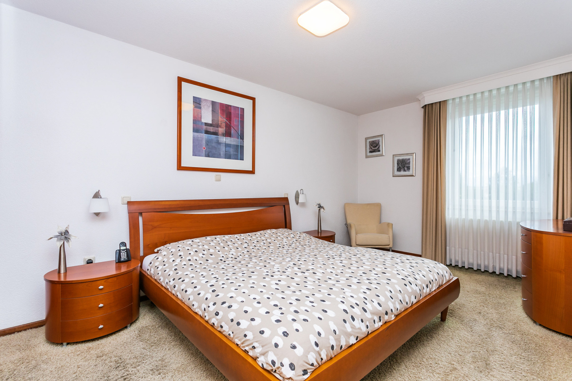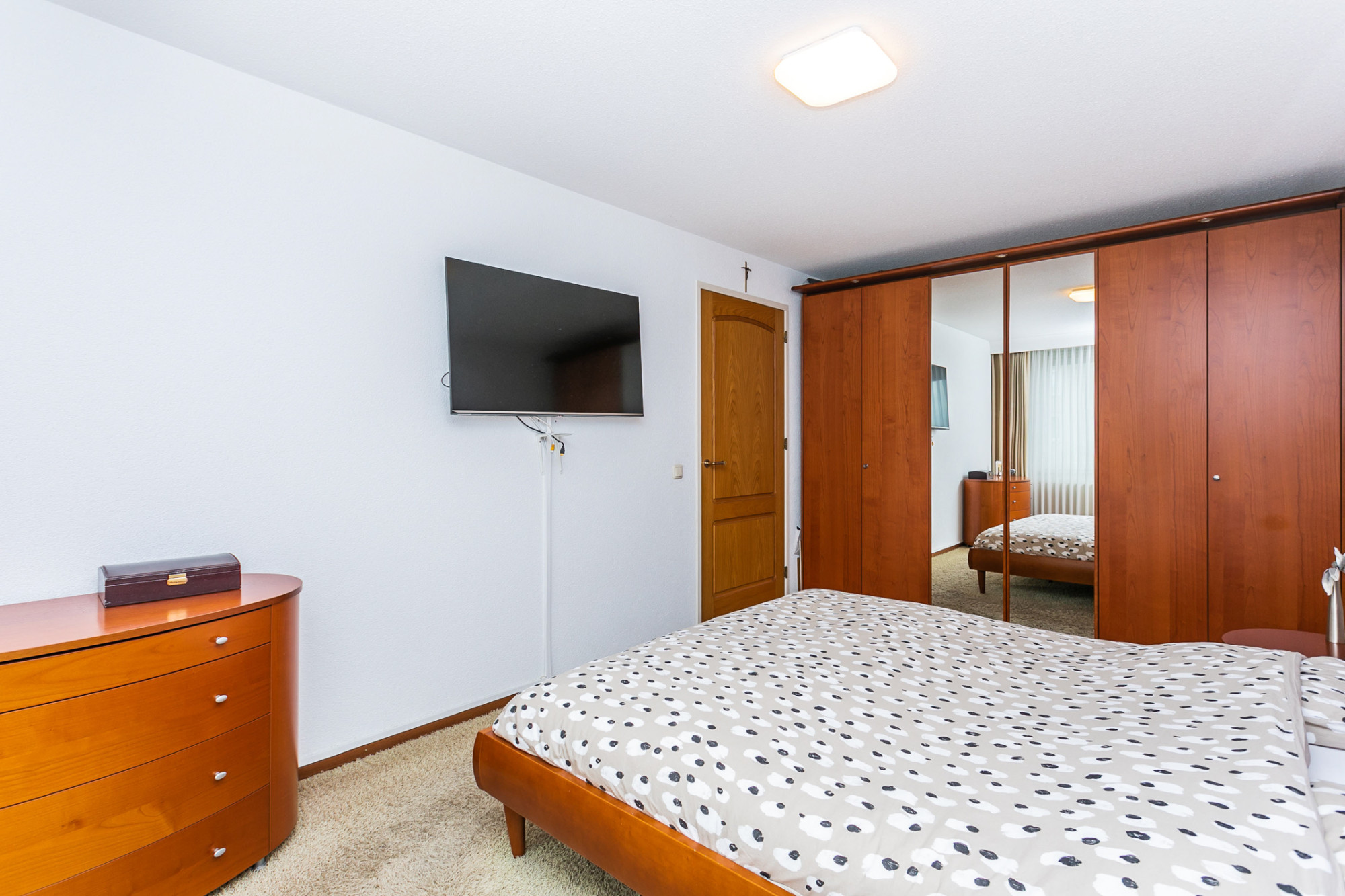 Aan de rechterzijde gelegen een tweetal slaapkamers, waarvan de een in gebruik als logeerkamer met vaste kastenwand en de ander als ruime hoofdslaapkamer.