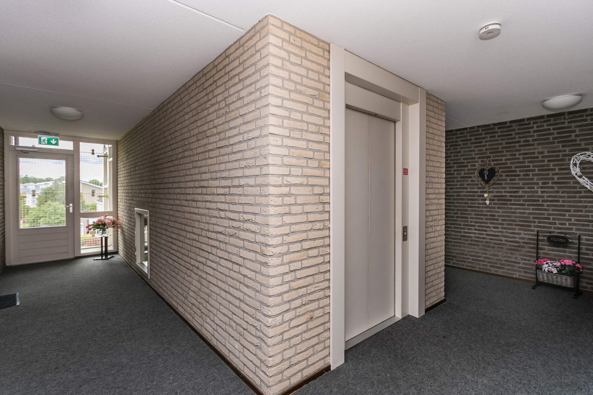 Entree / hal, brievenbussen, deurbeldrukker met video-intercom, trappartijen, personenliftinstallatie, gang en overloop. Inrit naar het afgesloten binnenterrein.