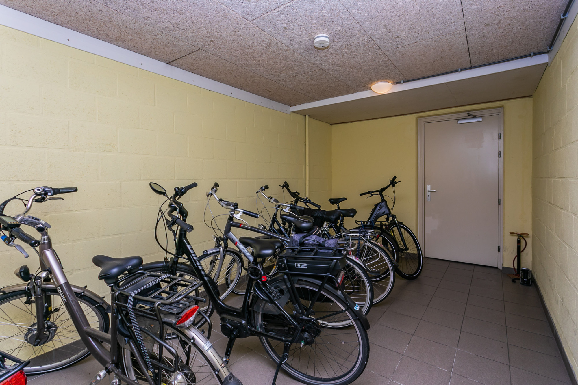 Op de begane grond van het complex heeft u toegang tot een eigen inpandige garage met elektrisch bedienbare rolpoort, een afsluitbare fietsenstalling en een privéparkeerplaats op het afgesloten binnenterrein.