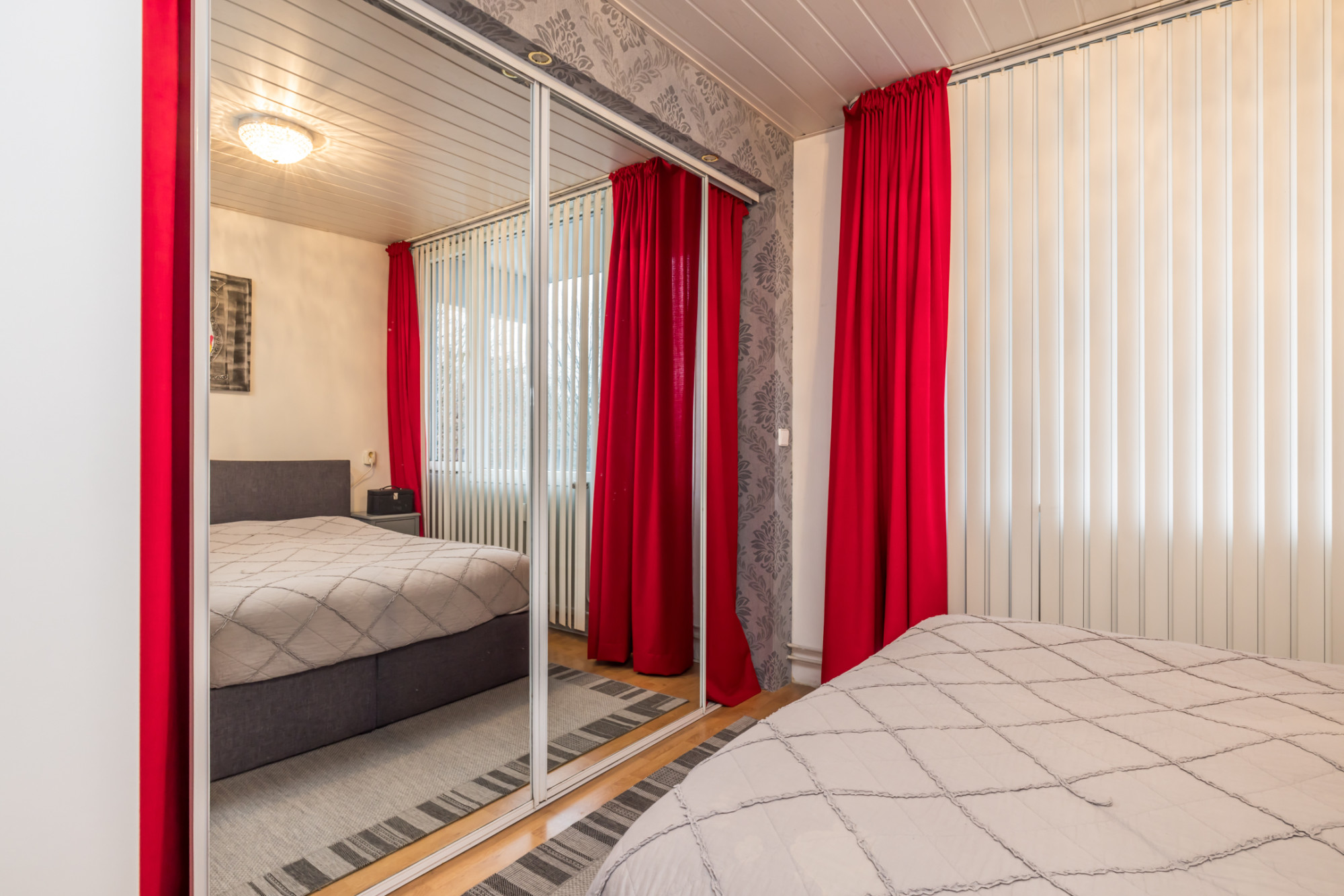 Aan rechter voorzijde gesitueerde ruime hoofdslaapkamer voorzien van een vaste kastenwand.