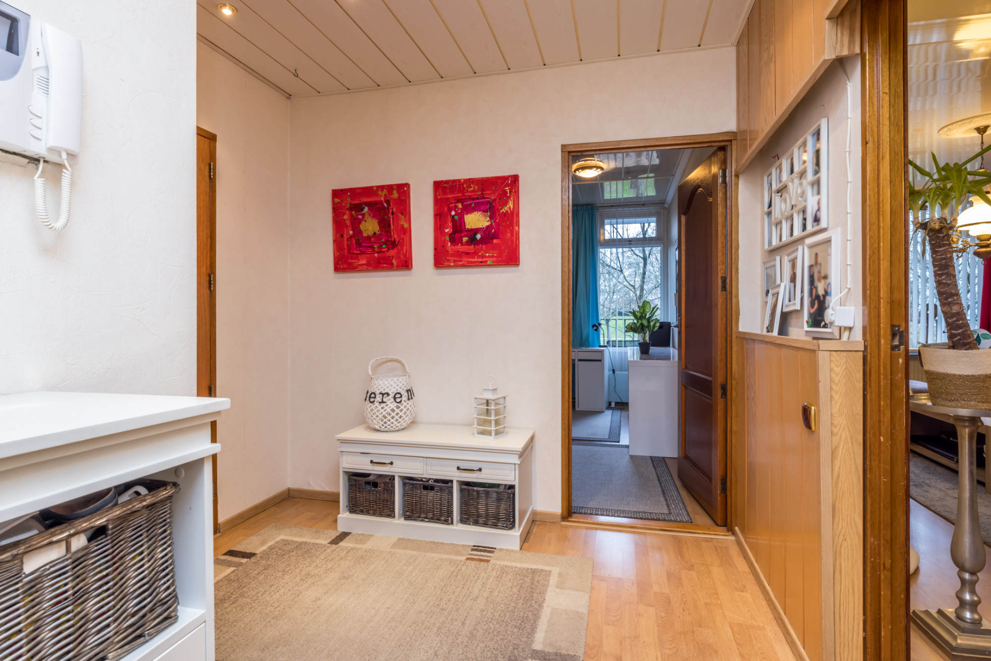 Entree/portaal met garderobe-nis, meterkast voorzien van 7 groepsinstallatie / kookgroep / 2x aardlekschakelaar en digitale meters. Doorgang naar de centrale verdeelhal met video-intercom.