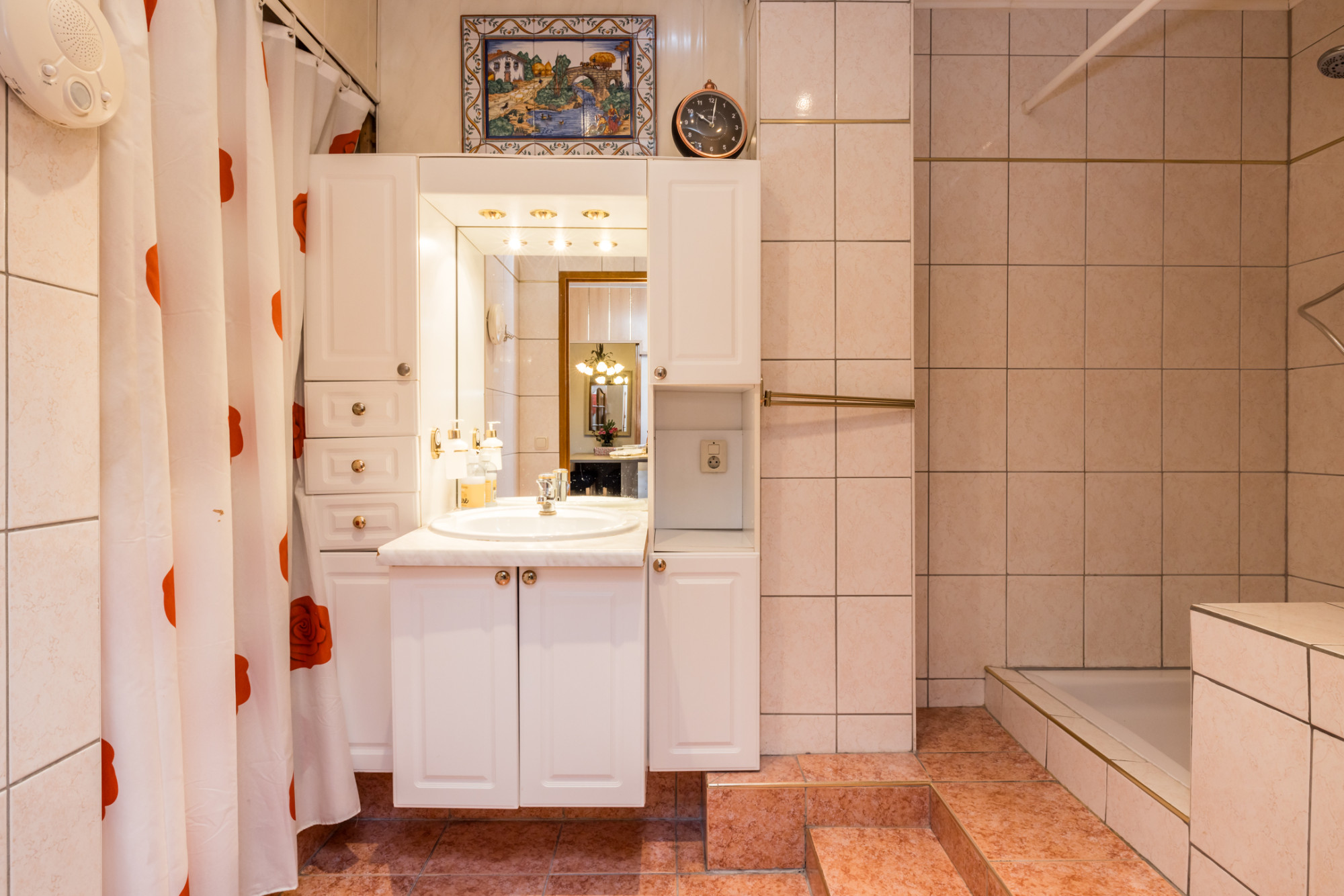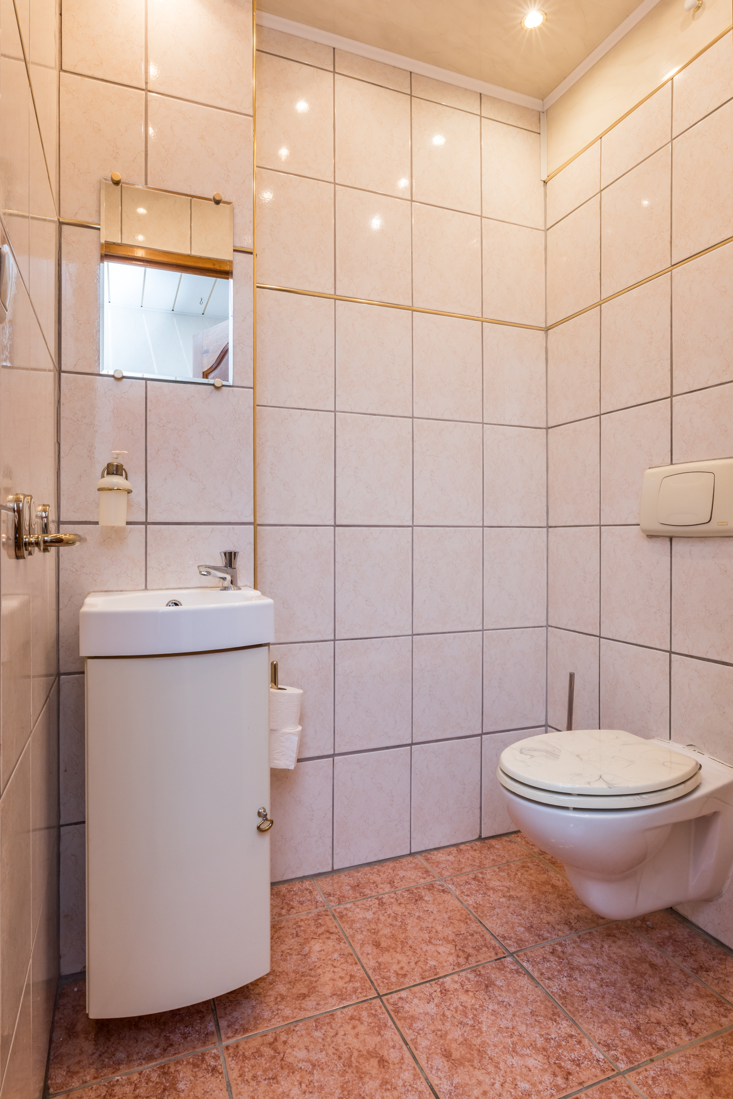 De royale badkamer beschikt over een ligbad, douche, en een vaste wastafel in een praktisch badkamermeubel. Daarnaast zijn hier de aansluitingen voor uw wasmachine en droger. Het appartement heeft ook een apart gastentoilet, wat zorgt voor extra comfort.