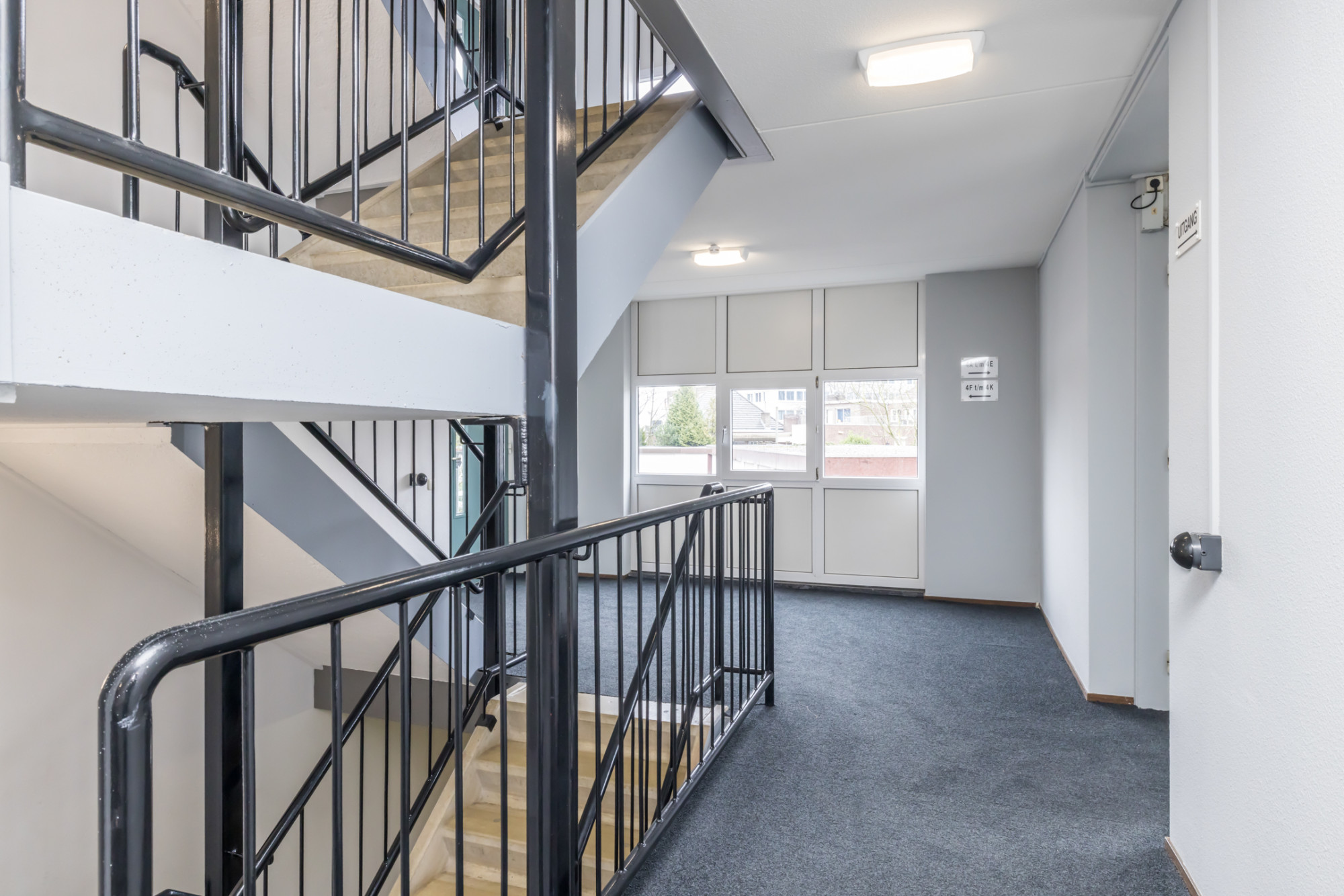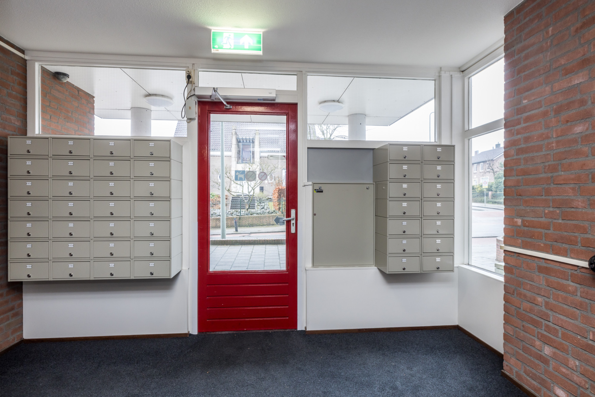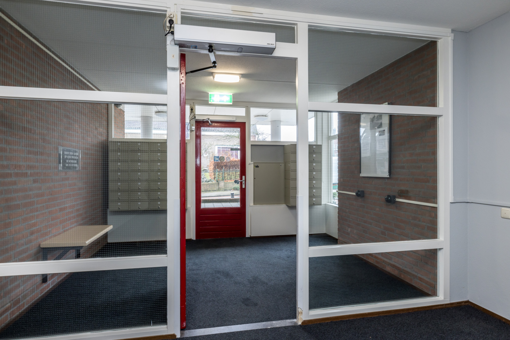Entree / hal, brievenbussen, deurbeldrukker met video-intercom, trappartijen, gang en galerij/overloop naar de appartementen.