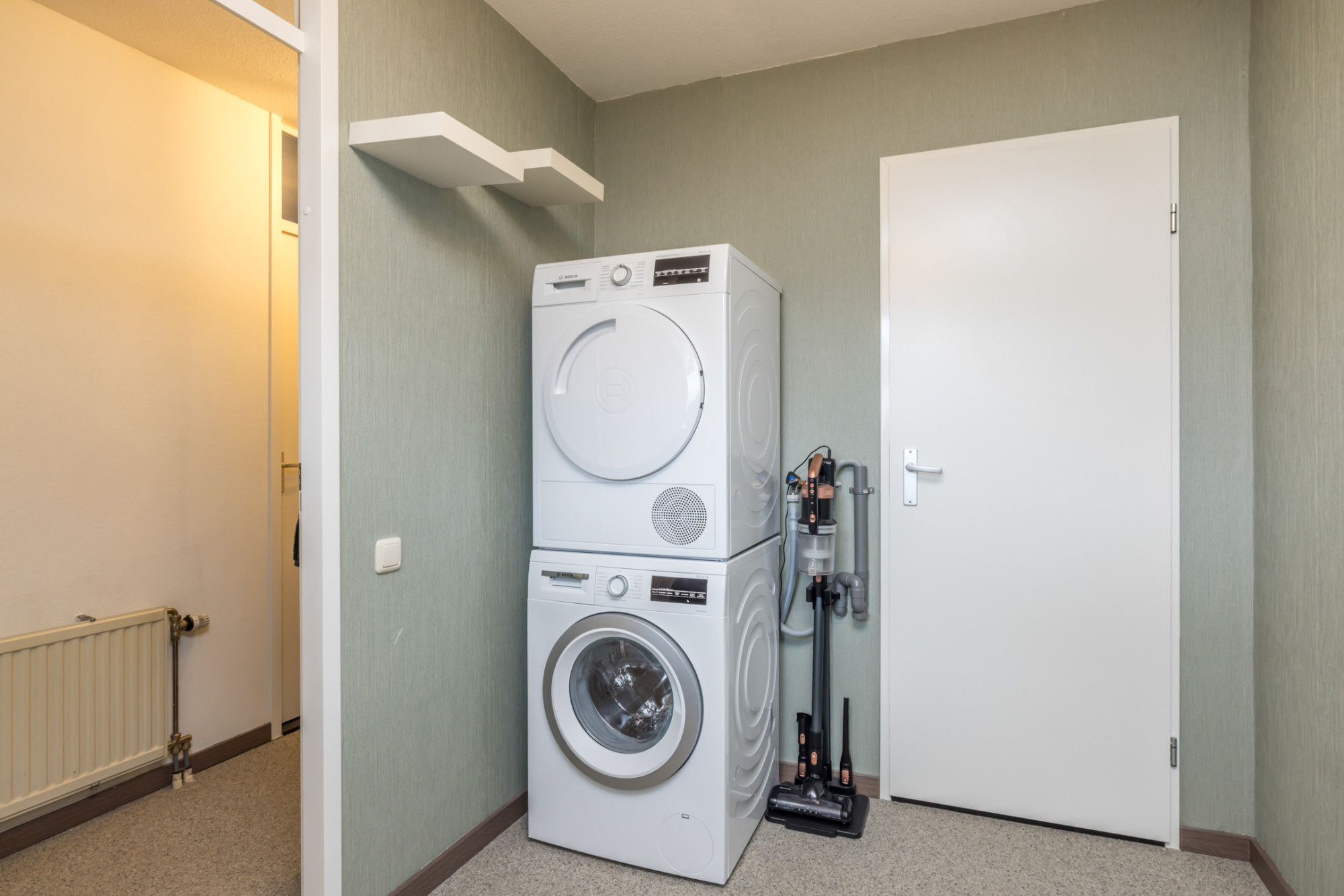 Linksachter gelegen slaapkamer in gebruik als kleedkamer met witgoedaansluitingen voor wasmachine/droger en standplaats voor de AWB CV-Combiketel (Bouwjaar 2011 / Eigendom).