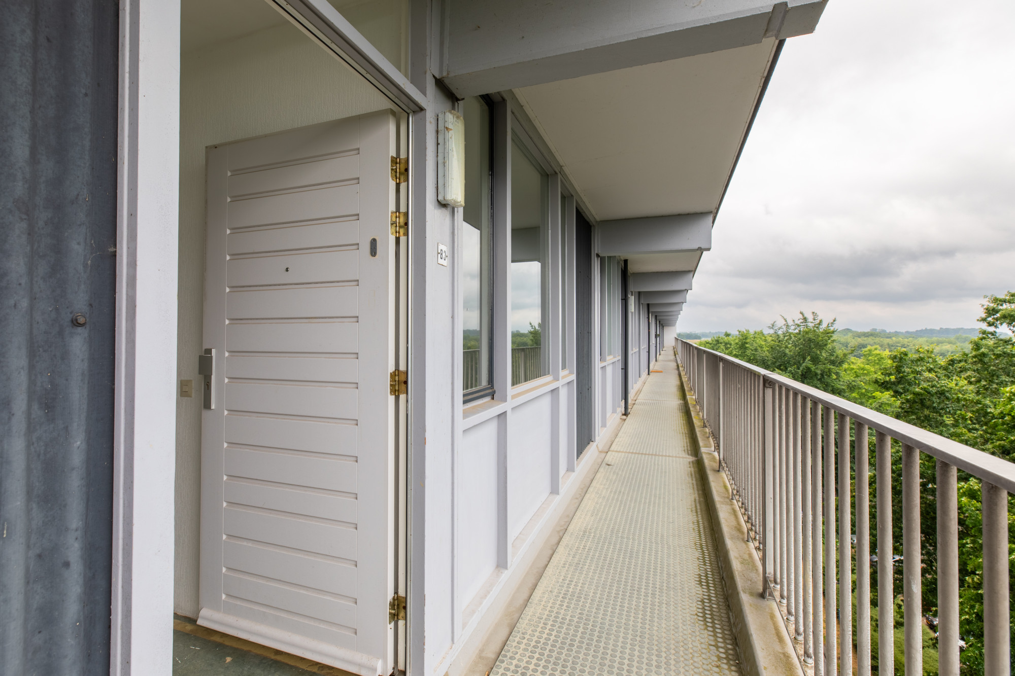 Galerij met toegang naar appartement. Hal met meterkast. Tussenhal met toegang naar de diverse ruimten. Ruime woonkamer. Gesloten keuken voorzien van een eenvoudig keukenblok en aansluitingen wasmachine en boiler (eigendom). Toilet. Badkamer met douche en wastafel. 2 slaapkamers. Vanuit balkon toegang naar berging. Vanuit het appartement is er een schitterend uitzicht over de omgeving.
