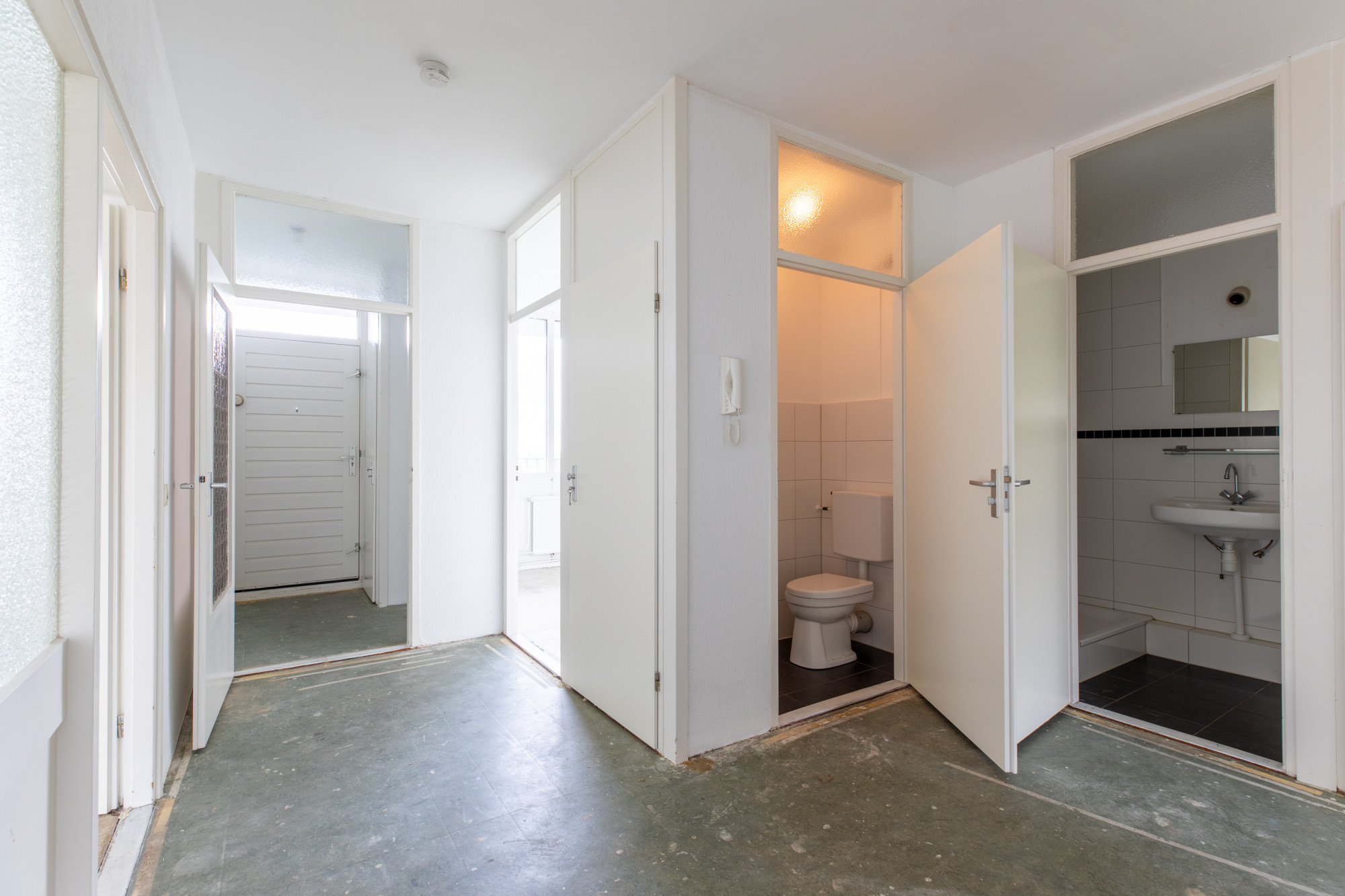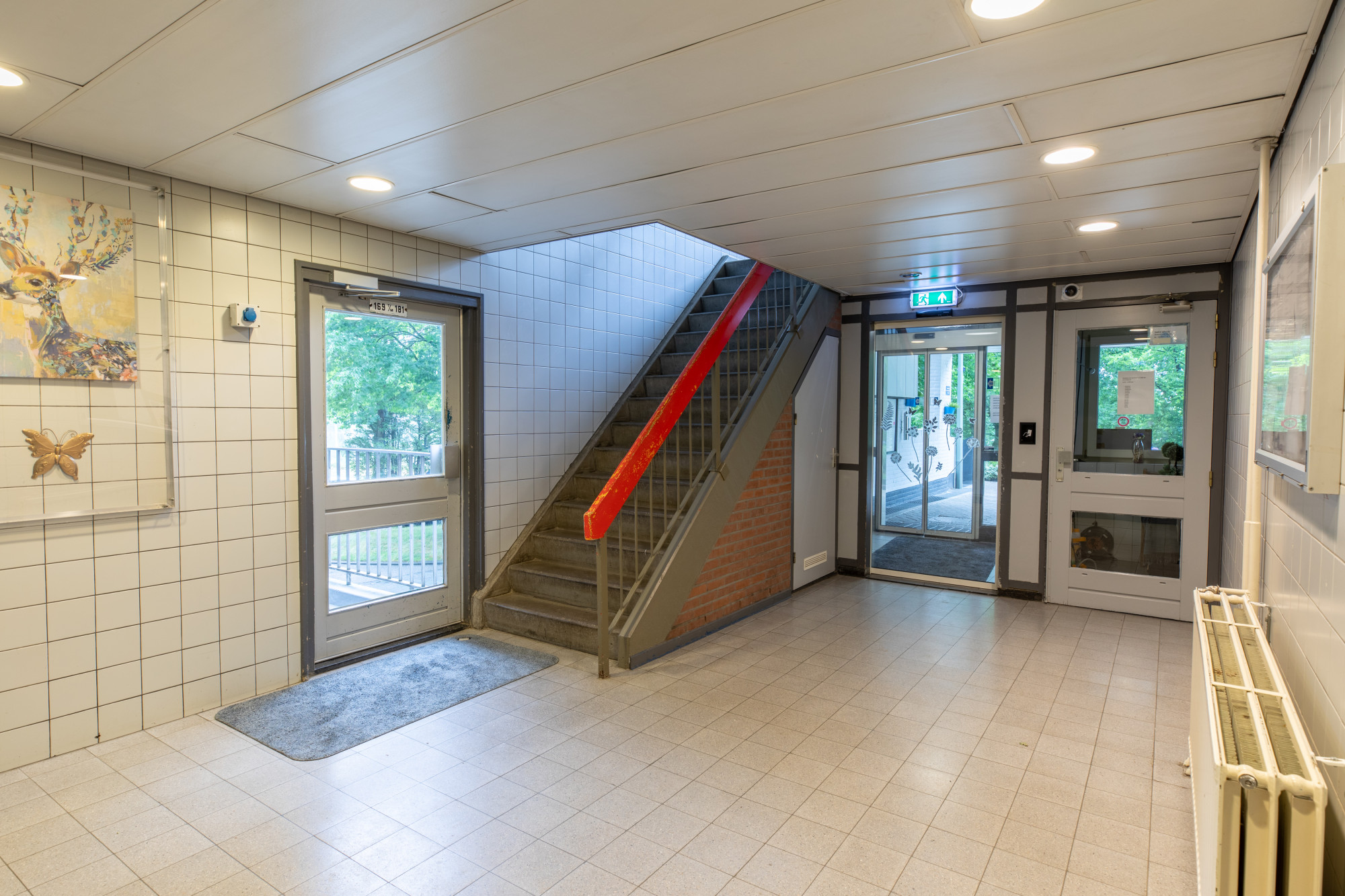 Centrale inkomhal. Bellentableau en brievenbussen. Liftinstallaties.