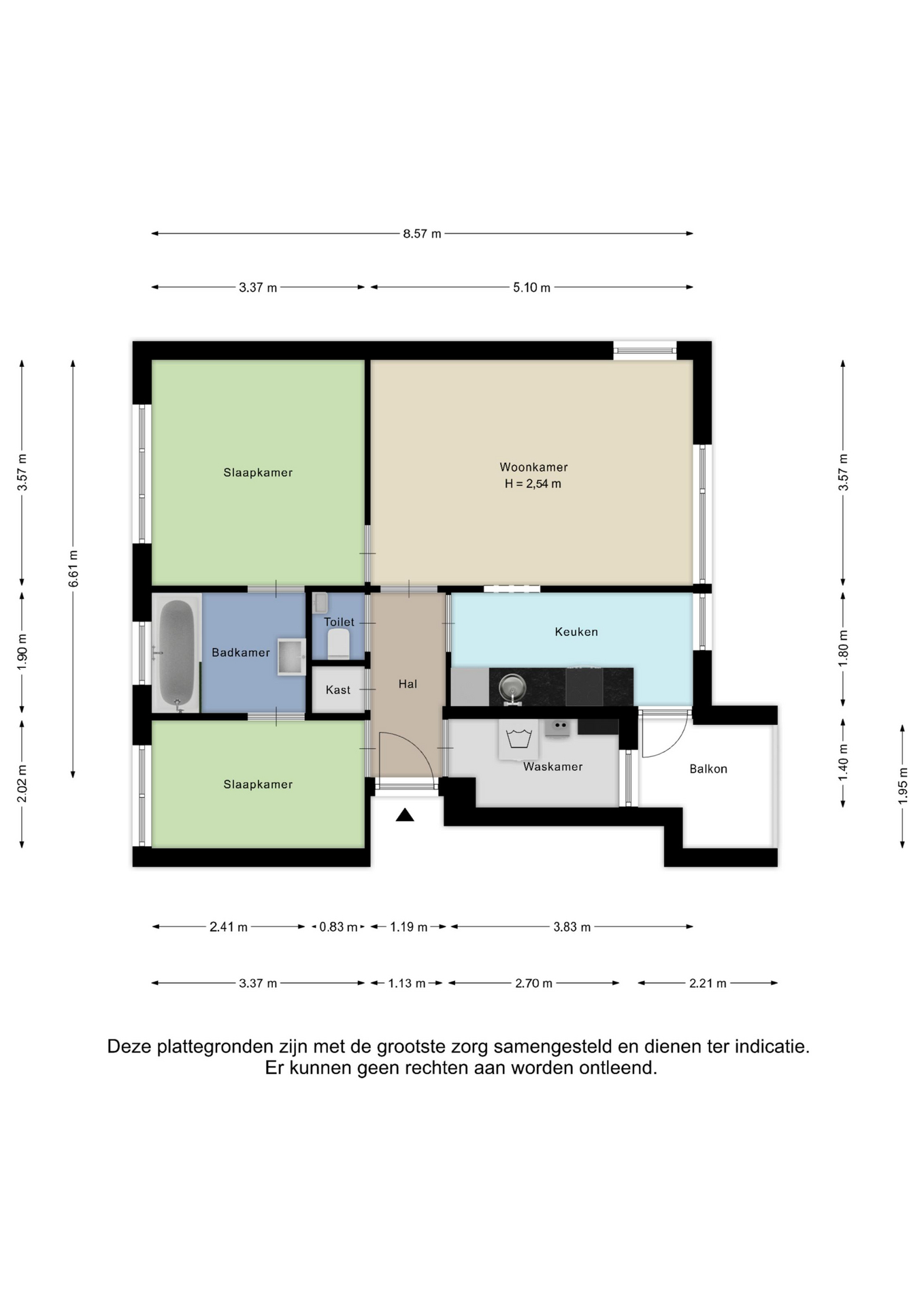 Alle door ons kantoor verstrekte informatie omtrent onroerende zaken, moet beschouwd worden als een uitnodiging om in onderhandeling te treden, en is geheel vrijblijvend! Alle vermelde maten en afmetingen zijn slechts bij benadering. Aan deze beperkte informatie kunnen geen rechten worden ontleend. Indien in enige documentatie of op enige website informatie staat die niet overeen komt met de werkelijkheid, dan geldt de feitelijke situatie waarin de woning zich bevindt, zoals koper deze tijdens de bezichtiging heeft kunnen waarnemen, en wordt de woning in deze feitelijke situatie/staat verkocht. Een (eventueel) bijgevoegde plattegrond dient uitsluitend als globale indicatie/visualisatie. Hieraan kunnen uitdrukkelijk geen rechten worden ontleend.