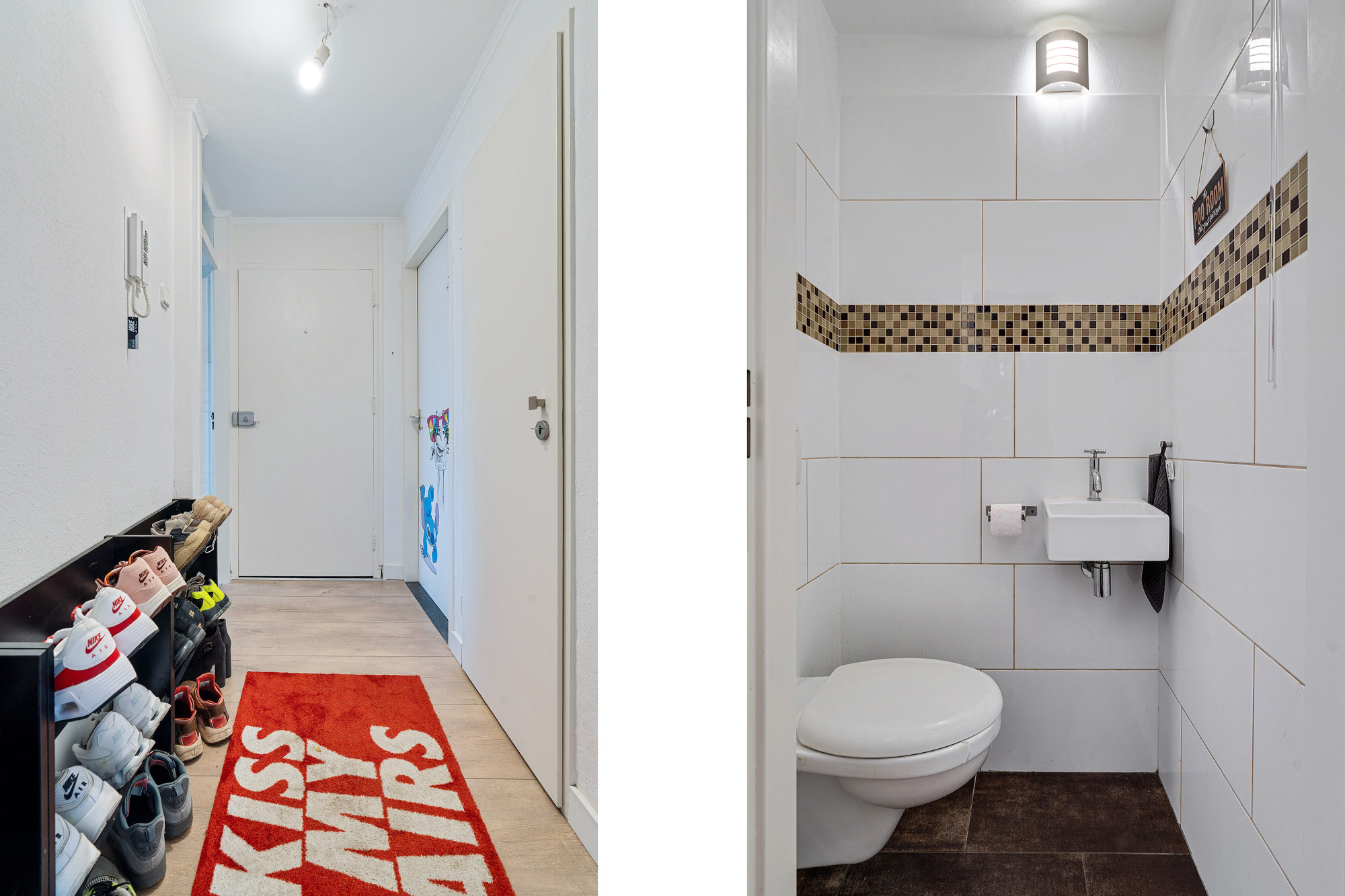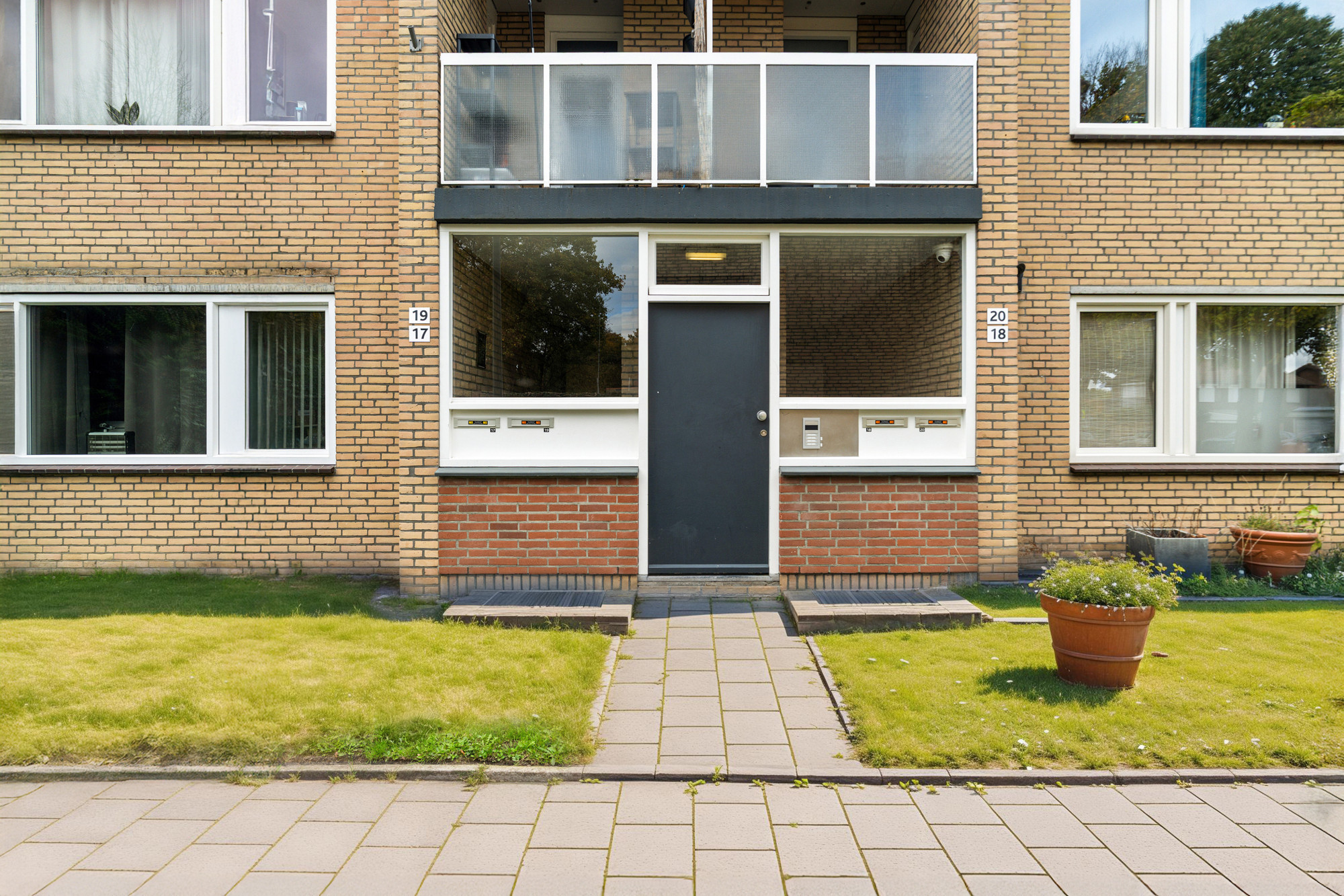 De centrale entree beschikt over een bellentableau, brievenbussen en een trappenhuis.