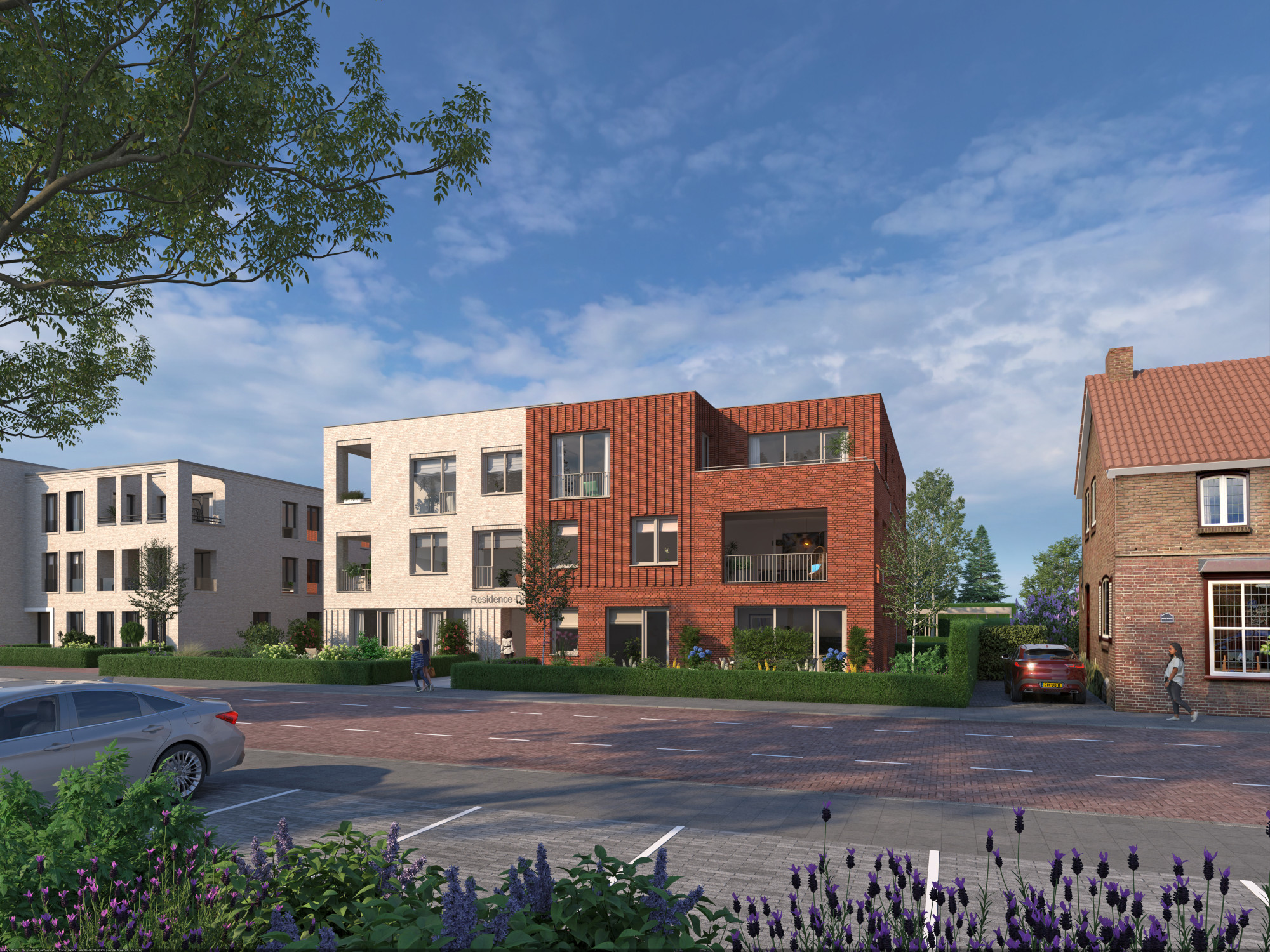 Elk appartement heeft de beschikking over een eigen berging en een vaste overdekte parkeerplaats op het achter terrein. Deze parkeerplaatsen worden uitgevoerd als carport met een zogeheten ‘sedum-dak’, een dak met groene vegetatie die tevens op de bergingen komt