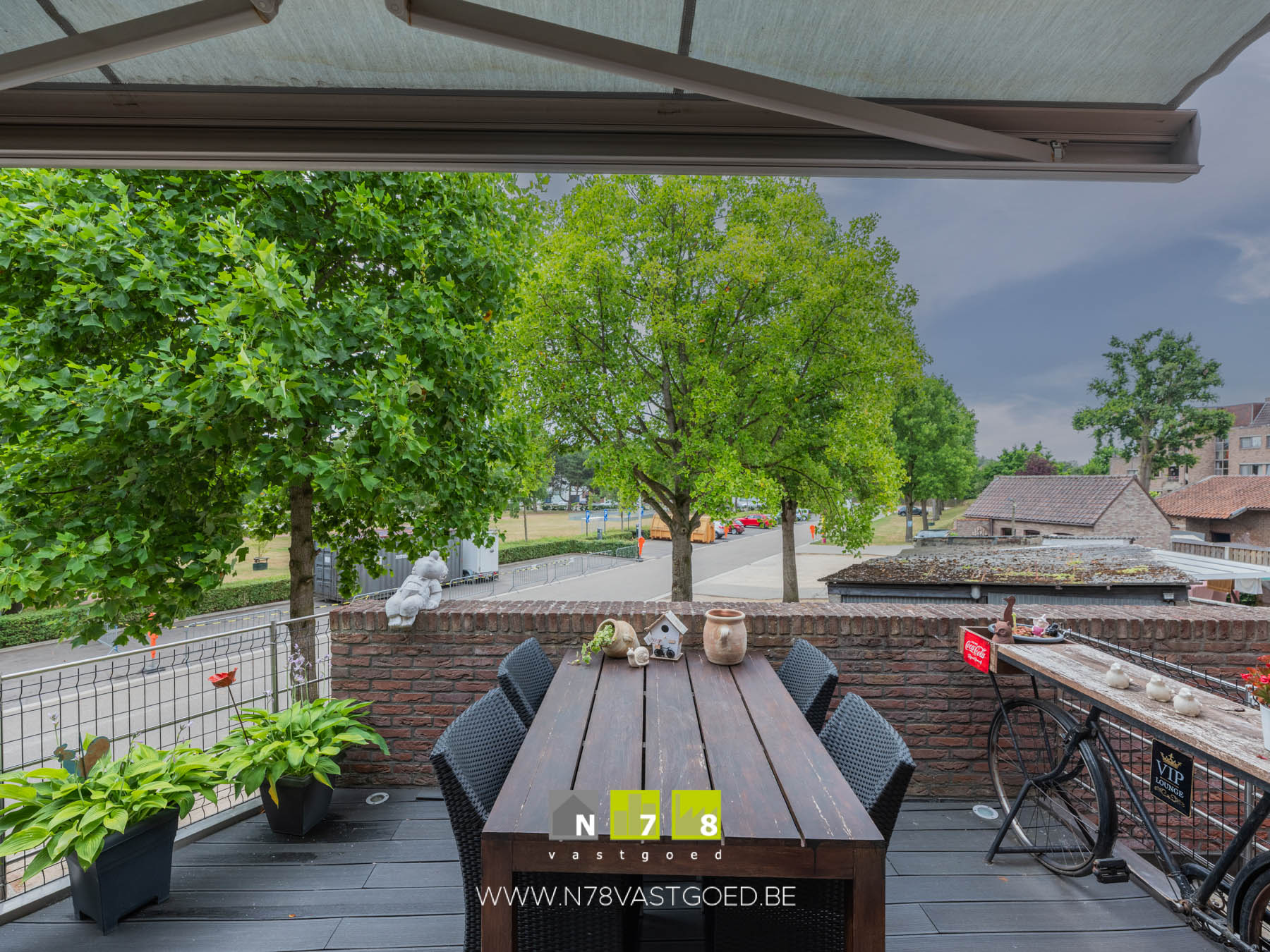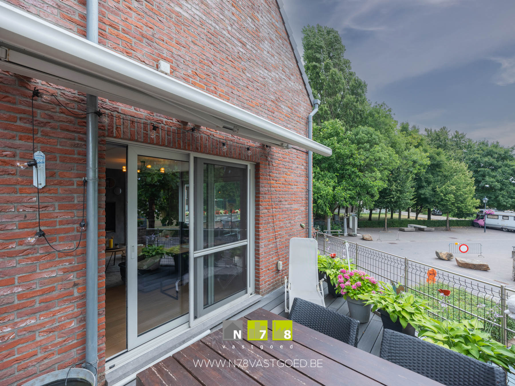 - Terras 2 (2,85m x 4,65m = 13,25 m²) automatische zonneluifel, spots voorzien in de PVC vloer.