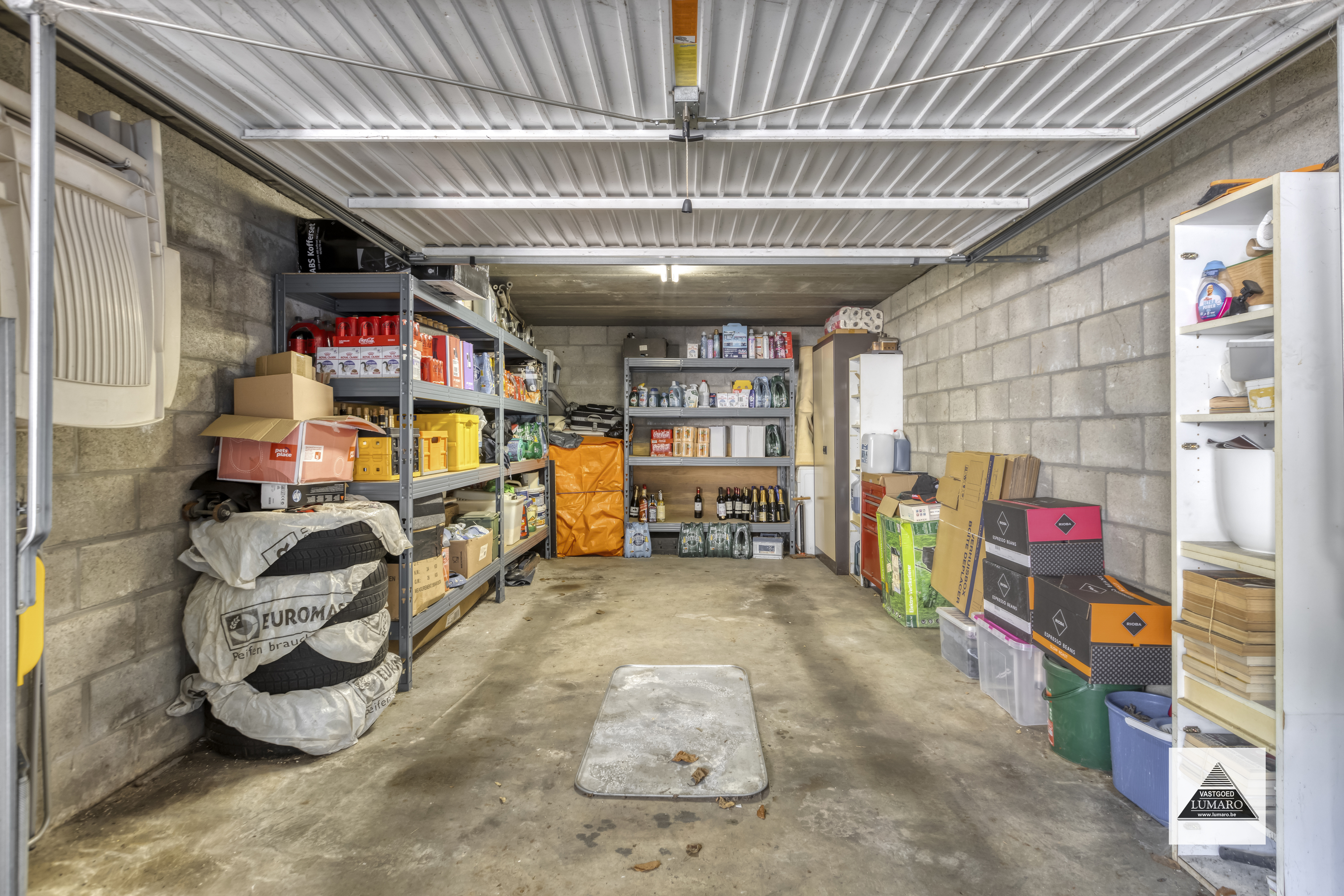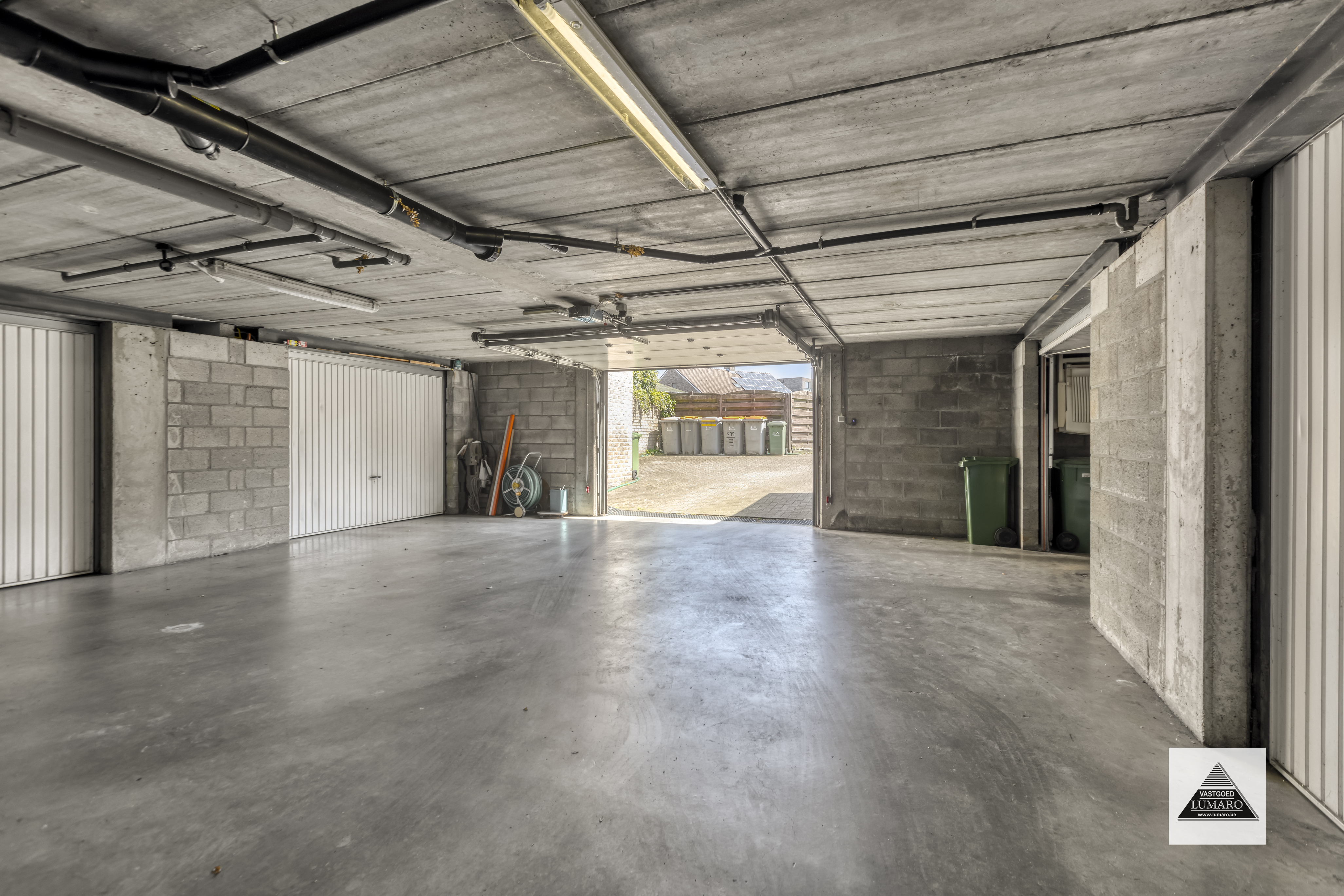 - In de kelderverdieping is een private afgesloten garage met metalen wentelpoort – de gemeenschappelijke toegangspoort wordt elektrisch bediend.