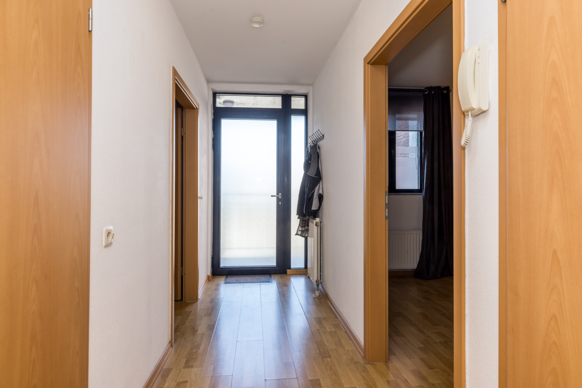 Eenmaal in het appartement komen we in de ruime hal. De hal is groot te noemen met de afmeting van ca. 4,19 x 1,36 mtr.