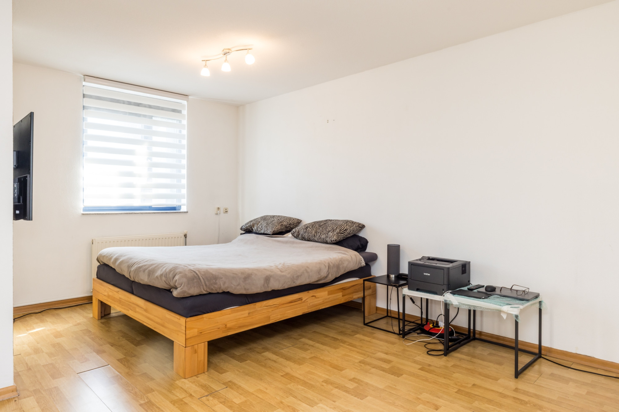 De raampartijen zorgen voor veel lichtinval. Vanuit de woonkamer komen we op het ruime balkon. Deze is ca. 3,63 x 2,01 mtr. Ook is vanuit de woonkamer een praktische berging bereikbaar. Deze is ca. 2,32 x 1,44 mtr. Hierin bevinden zich de aansluitpunten voor de wasmachine, wasdroger en eventueel ander witgoed. Ook is hier de verwarmingsketel gemonteerd. De eerste ruime slaapkamer is ca. 4,19 x 2,88 mtr en voorzien van TV aansluitpunt.