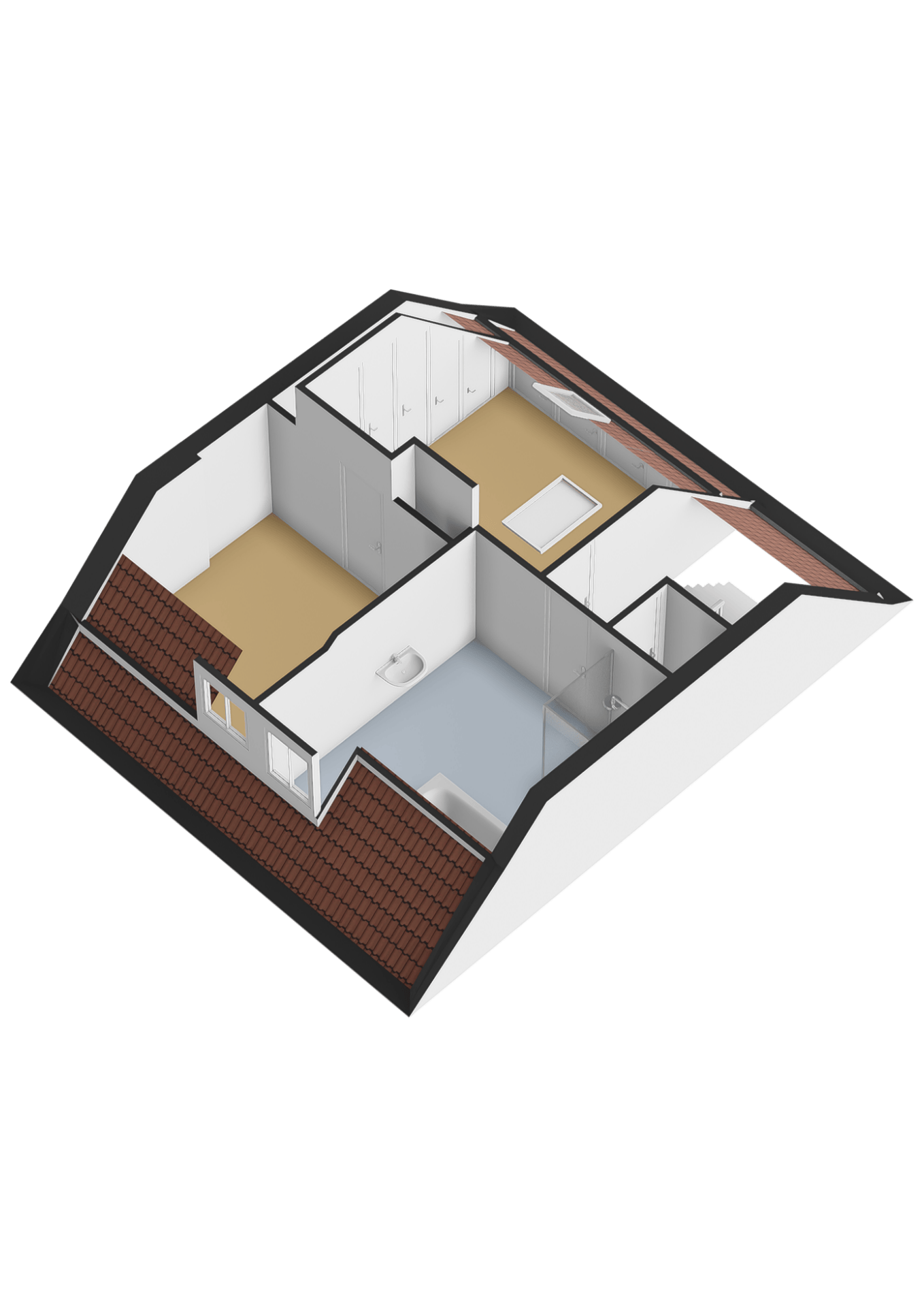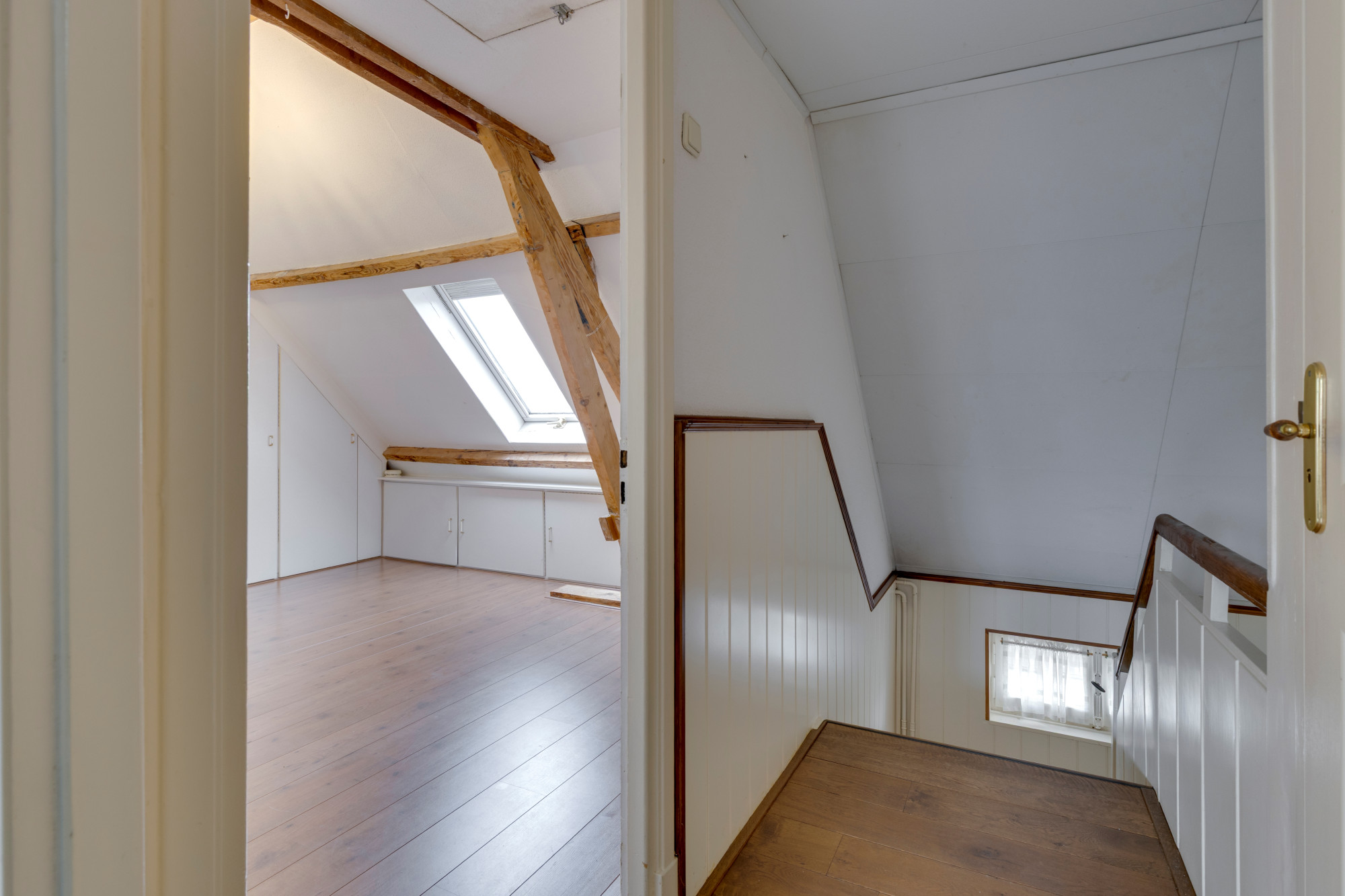 1 slaapkamer v.v. laminaatvloer, dakraam en vaste kastenwand. Via deze slaapkamer heeft men toegang tot de eventueel 4e slaapkamer en/of kleedruimte v.v. laminaatvloer en dakkapel met rolluik.