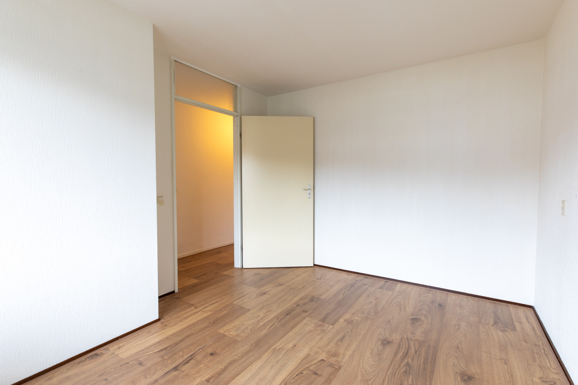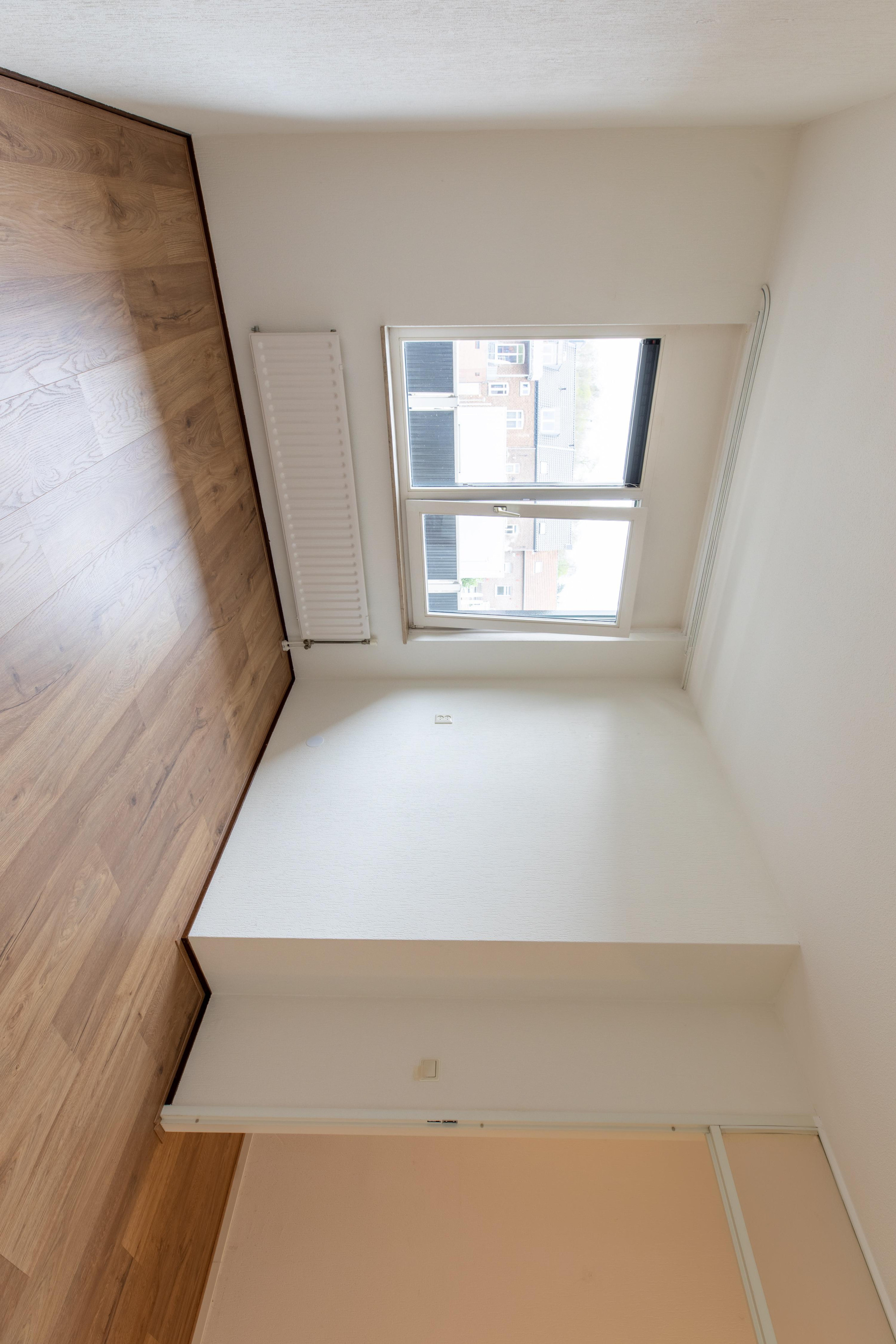Slaapkamer (circa 3,76 x 3,06/2,64 m) aan galerijzijde.